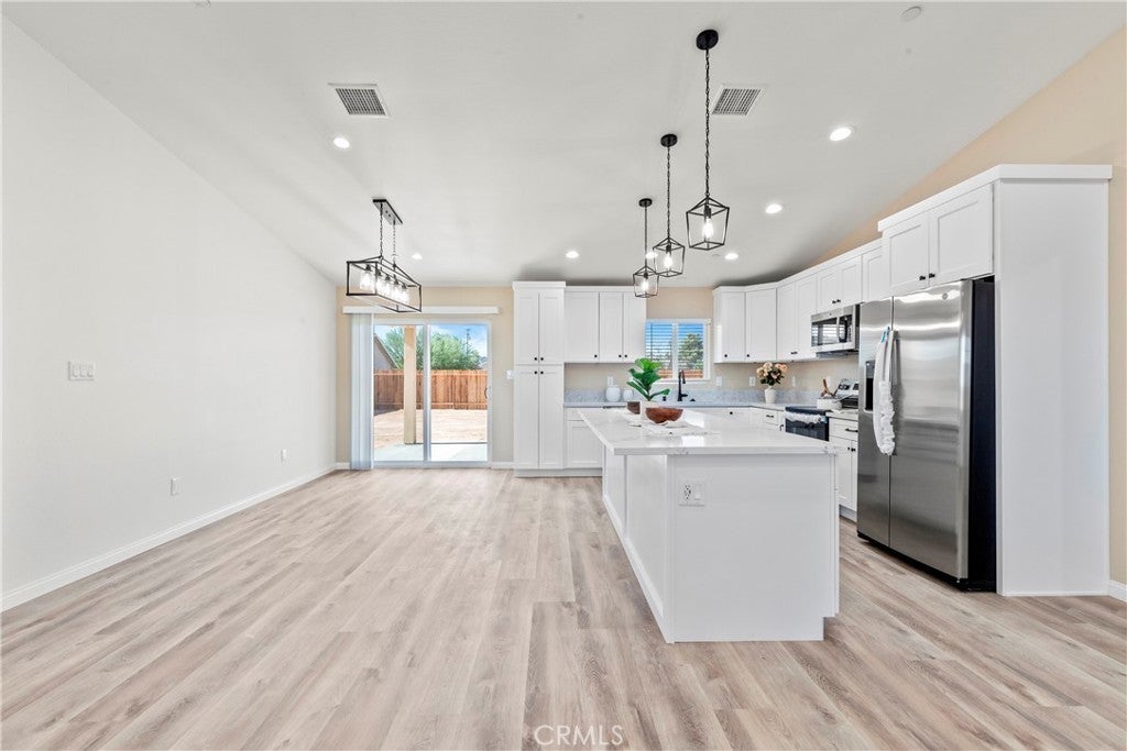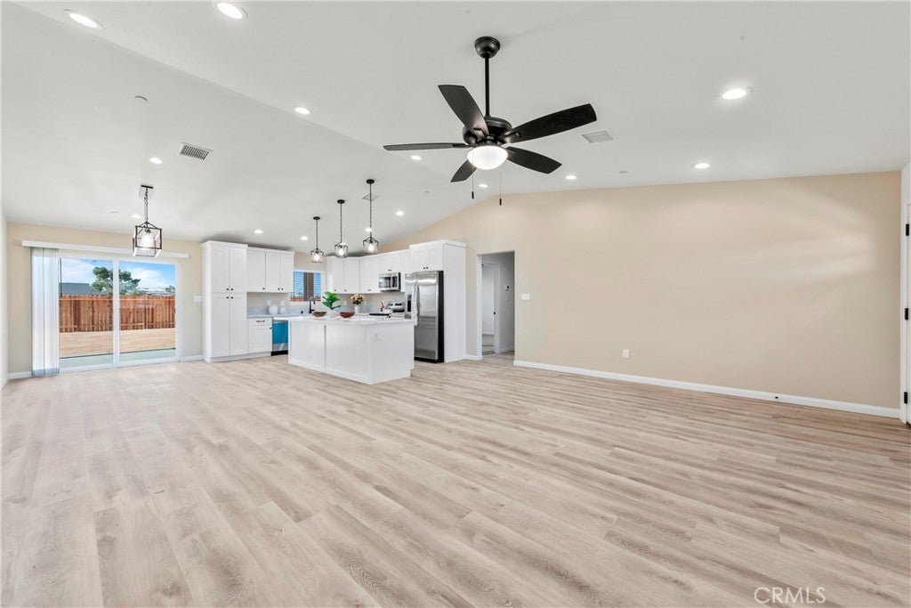 BRAND NEW CONSTRUCTION, BEAUTIFUL HOME!! Very spacious 3+2 with light and bright open floor plan. Upgraded vinyl plank flooring, ceiling fans and upgraded fixtures throughout. Kitchen offers quartz countertops, large island adding additional seating, finger pull cabinets and stainless steel appliances including refrigerator. Indoor laundry room features cabinets for additional storage and utility sink. Large fully fenced backyard features a covered patio. 2 car garage with good size driveway. Spacious lot with RV potential. Paid off solar system and brand new septic system. A MUST SEE!!!!