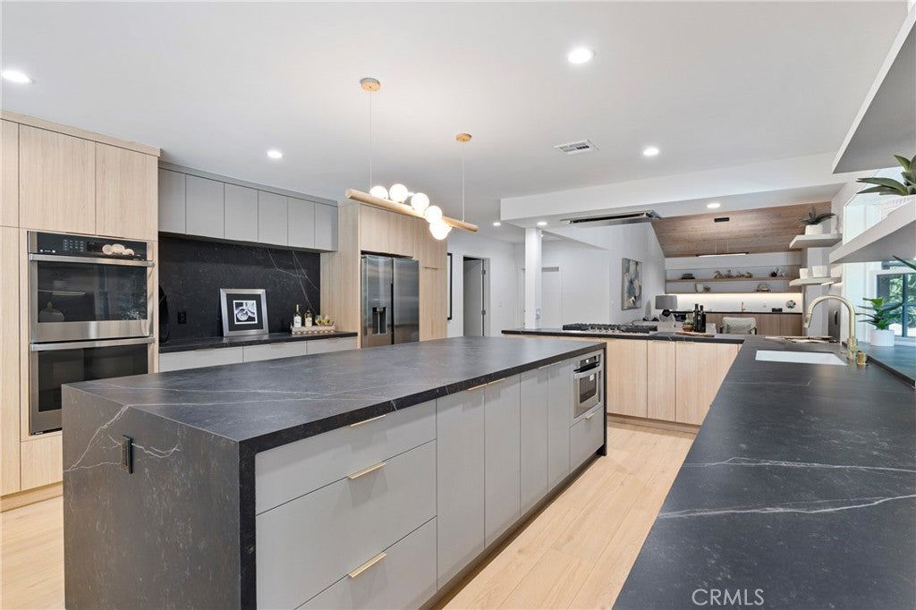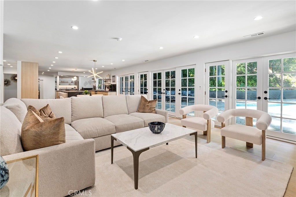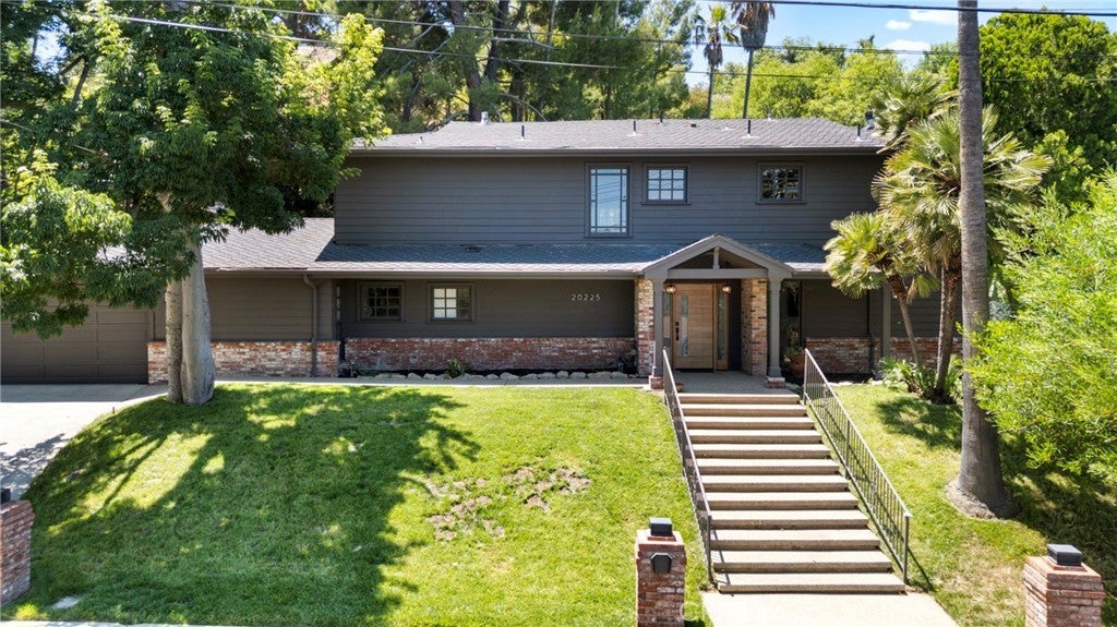 Welcome to 20225 Allentown Drive, a stunningly remodeled two-story residence located on one of the most coveted streets South of Ventura Blvd. Spanning approximately 3,611 sq ft of luxurious living space, this showpiece was crafted for the modern lifestyle - where elegance, comfort, and functionality meet in perfect harmony. From the moment you enter, the home radiates sophistication. The formal living and dining rooms set the tone, while the gourmet chef’s kitchen is a true centerpiece - featuring custom cabinetry, high-end appliances, and a striking porcelain waterfall island. The adjacent family room is equally impressive with a cozy fireplace, built-in wet bar, and elegant French doors that open seamlessly to a lush, private backyard - perfect for indoor-outdoor living and entertaining. Downstairs, you’ll find a private guest suite with its own en suite bath, a stylish home office, two designer powder rooms, and a well-appointed laundry room. Upstairs, the primary suite offers a true sanctuary with its own fireplace, a spacious walk-in closet, private balcony, and a spa-inspired en suite bath. Three additional bedrooms and two beautifully remodeled bathrooms complete the second level, offering flexibility for family, guests, or creative workspaces. With high-end finishes, a smart and versatile layout, and a location that’s hard to beat, this home truly has it all. An extraordinary opportunity in Woodland Hills' most desirable pocket.