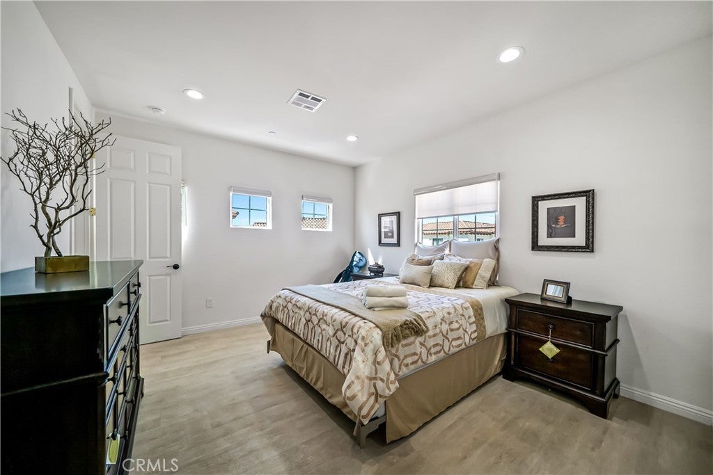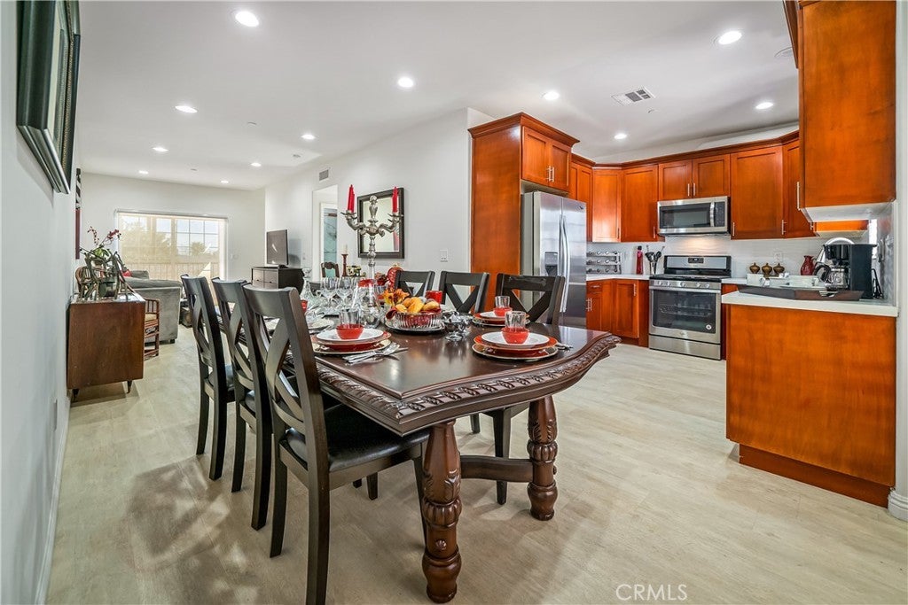 Welcome to Unit #1 at 1101 N Maclay Avenue—a stunning tri-level townhome offering 2,278 square feet of modern living, topped off with a private rooftop deck perfect for enjoying California sunsets and scenic mountain views. Built in 2020, this home features clean architectural lines and stylish finishes throughout. The ground floor includes a full bathroom, a laundry area, and direct access from the private entry. On the second level, a bright and open layout includes a dedicated office space, a full bath, and a spacious living room with a balcony. The adjacent dining area flows into a contemporary kitchen equipped with sleek quartz countertops, white cabinetry, and stainless steel Whirlpool appliances. Upstairs, two generously sized bedrooms each feature their own full bathroom and ample closet space. The primary suite offers added privacy and comfort as the largest bedroom in the home. The highlight of this unit is the expansive rooftop deck—an ideal space for entertaining, lounging, or simply taking in the panoramic views of the San Fernando Valley. Located in a secure, gated community near shops, parks, and dining, this turnkey home blends style, comfort, and functionality in one of San Fernando’s most desirable neighborhoods.
