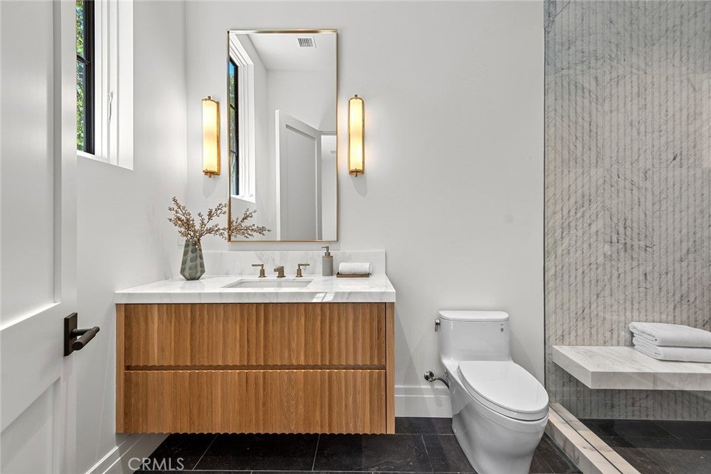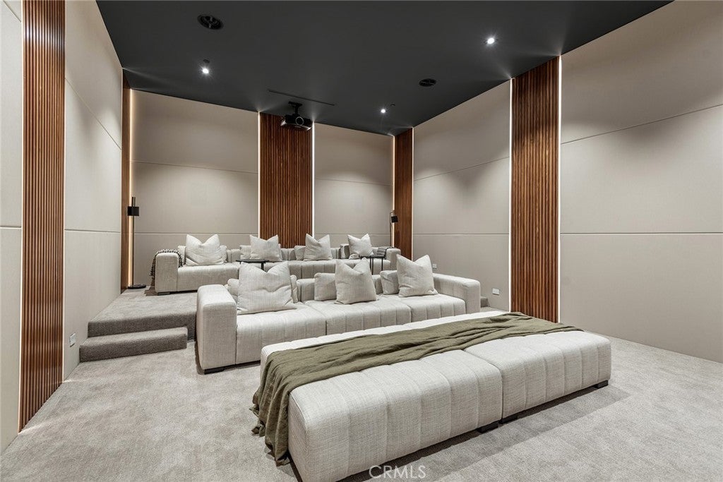 This brand new, just completed, and absolutely gorgeous estate is nestled on a beautiful, lushly landscaped 1.4 acre lot. This home exemplifies the essence of the relaxed, indoor/outdoor California lifestyle and features luxury, elegance and excellent quality throughout. Bathed in natural light, and spanning 16,215' (including the 931' guest house), the spacious, open floor plan is highlighted by a restaurant quality chef’s kitchen with two islands, one with countertop seating, plus a big breakfast room, all opening to the large family room with sliding walls of glass, two-sided fireplace & adjoining lounge/game room with wet bar. Additional amenities include a spacious formal dining room with refrigerated wine wall, adjoining butler's pantry, large private office with built-in custom cabinetry, stunning home theater with fabric covered acoustic sound walls, and a big gym & spa complete with steam shower, sauna, and sliding walls of glass opening to the rear grounds. There are six generous en suite bedrooms, four upstairs and two on the main floor. The superb primary suite includes a retreat, fireplace, deluxe bath with dual showers, big soaking tub, enormous, room sized custom closets, and a large private balcony overlooking the large backyard. The spacious grounds include a picturesque guest house, sparkling pool with large Baja shelf, family size spa, large covered patio, full barbecue center, a firepit with seating area, expansive grass lawns, mature trees, a circular driveway, and garages for four cars with gleaming epoxy floors. The home is also located on one of Hidden Hills' most popular streets, with just a short walk to the community center with tennis courts, pool, and recreation room. It is also close to the highly regarded public & private schools, and the nearby, Commons shopping center.