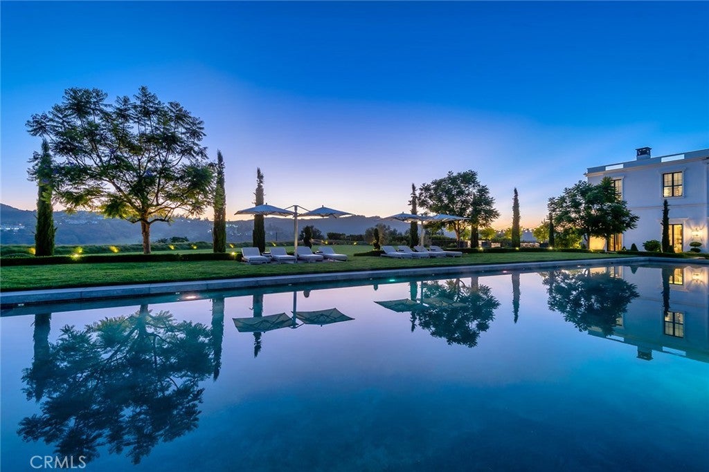 The ultimate trophy estate! A world class European masterpiece that has been recently reimagined and professionally designed to absolute perfection! Ideally located behind massive private gates within the prestigious guard gated community, Bel Air Crest. This landmark estate is set on over 3.5 usable acres and boasts panoramic views with exceptional total privacy! Spanning 17,254 square feet with every amenity desired and expected for a home of this caliber. Features include a dramatic grand entry enhanced by a 35 foot custom glass domed ceiling. The all new center island kitchen opens seamlessly to the family room and is graced with new glass pocket doors, fireplace and views. Upstairs there is an epic primary suite with commanding jet liner views, fireplace, two walk in closets and an all new Four Seasons quality bathroom. There are 5 more en-suite bedrooms on this level. The lower level is an entertainers dream! There is a state of the art theater, huge game room and lounge, wet bar, wine cellar, gym with separate massage room, and a hair salon/barber shop! The resort quality grounds are second to none! There is an amazing Olympic sized pool, tennis court with lights, chef's outdoor kitchen, two bathrooms, custom built children's playhouse with its own HVAC, batting cage, pool cabanas, vegetable garden, multiple fire features, outdoor wellness center with cold plunge and sauna and massive manicured lawns all with unobstructed views and complete privacy. Other amenities include an elevator, tremendous solar array, smart home system, all new doors and windows, huge motor court big enough for 30+ cars and so much more! One of Los Angeles' finest properties! A very special offering!