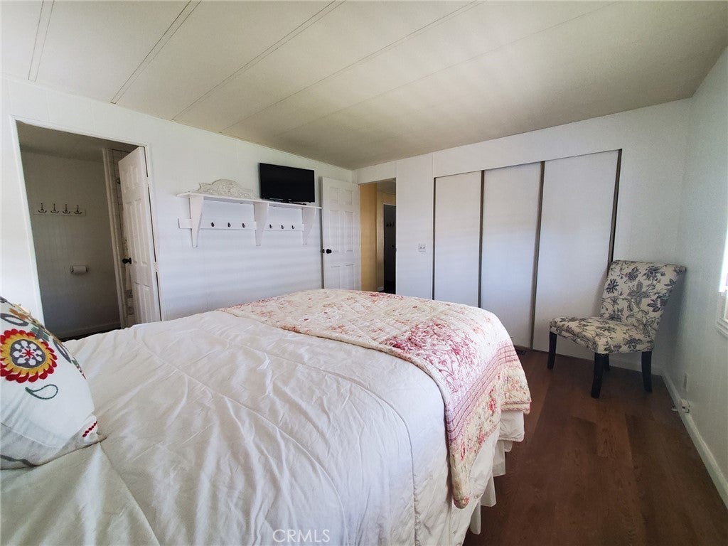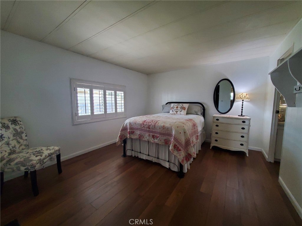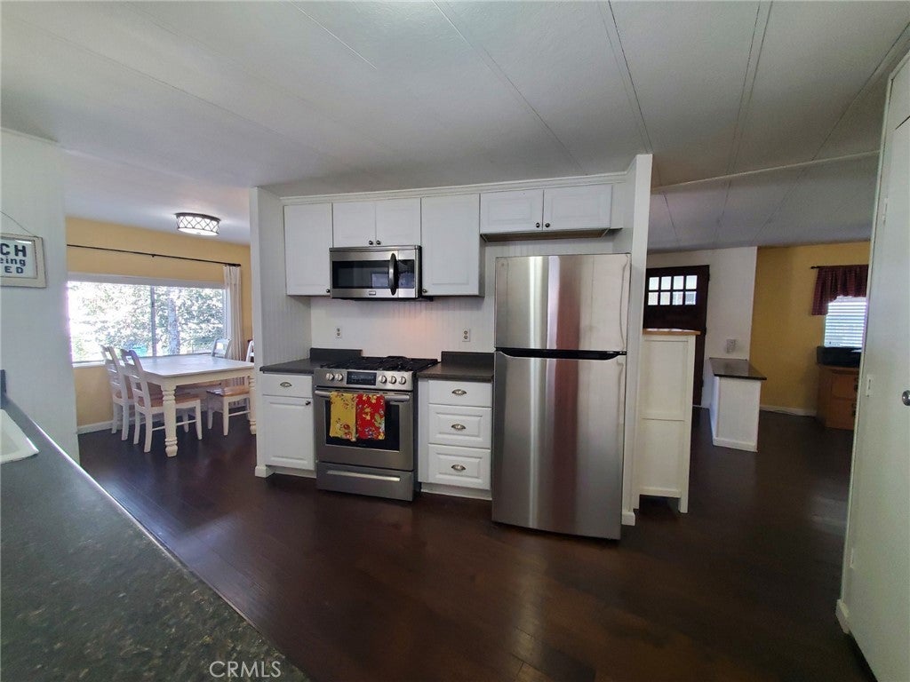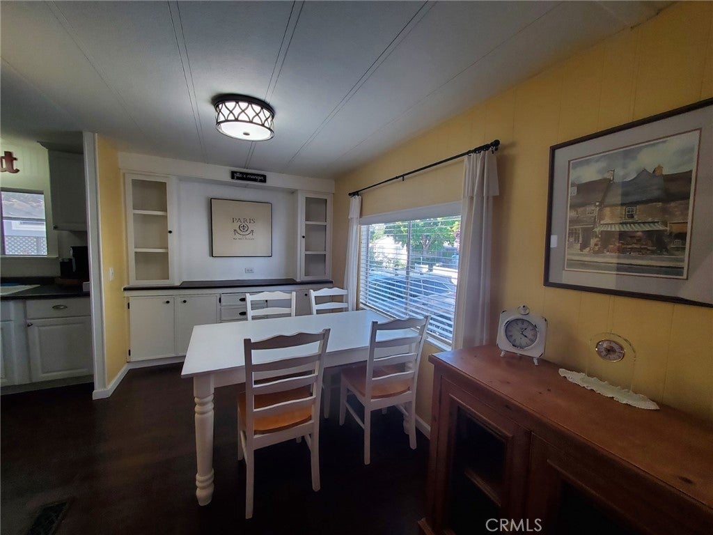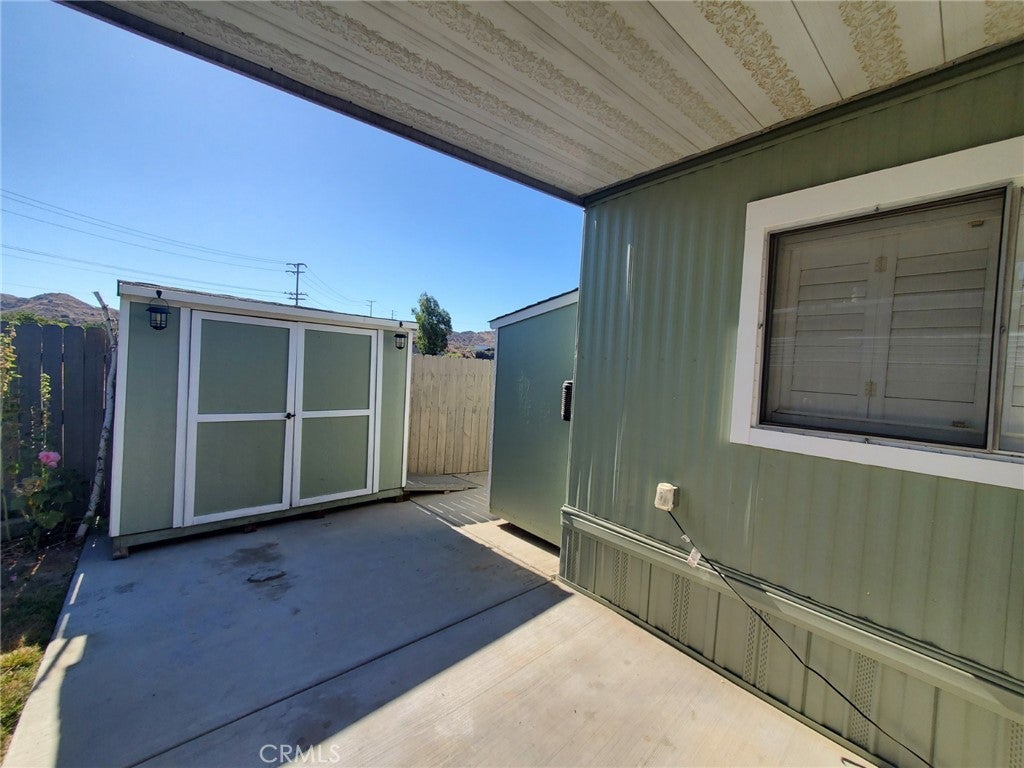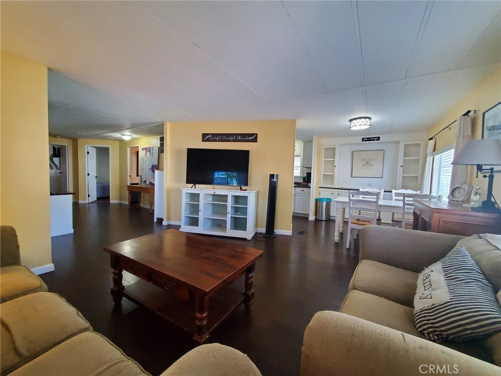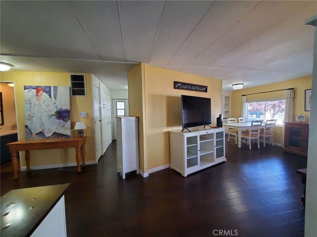 Welcome to your new home, this 2 bedroom 2 bath home has a country farmhouse feel, in a quiet family park with low space rent of only $977 per month. This home features a large open living room with laminate flooring and window blinds which allow lots of natural light. The dining room has a built in white hutch and chandelier. The kitchen has lots of storage and a pantry, stainless steel appliances, which include a dishwasher, refrigerator, oven/stovetop and built in microwave, wainscoting backsplash and a garbage disposal. The full size washer and dryer are located in a closet in the kitchen. The den is off the kitchen and living room and has the same laminate flooring as the living room, dining room and kitchen as well as a built in storage area by the front door. The main bathroom has a new blue vanity with stone countertop and a shower/tub combination. The bedroom can accommodate a queen size bed and has a large walk in closet. The primary bedroom has a large closet, plantation shutters on the window and a private bathroom. The private bathroom has planation shutters, a large vanity with stone countertop, a walk in shower with white subway tile surround. This home has an enclosed yard with a picket fence, 2 sheds, a large inviting front porch, laminate flooring throughout, a craftsman style front door and a wooden screen door. The seller has photos of all renovations done to the property, so you can see the transformation! Schedule an appointment today to see this amazing home!
