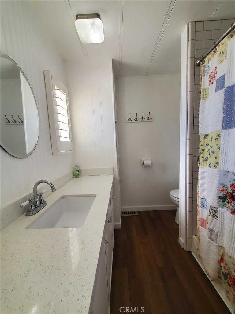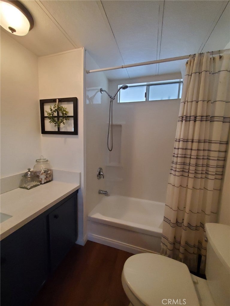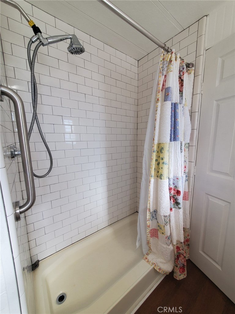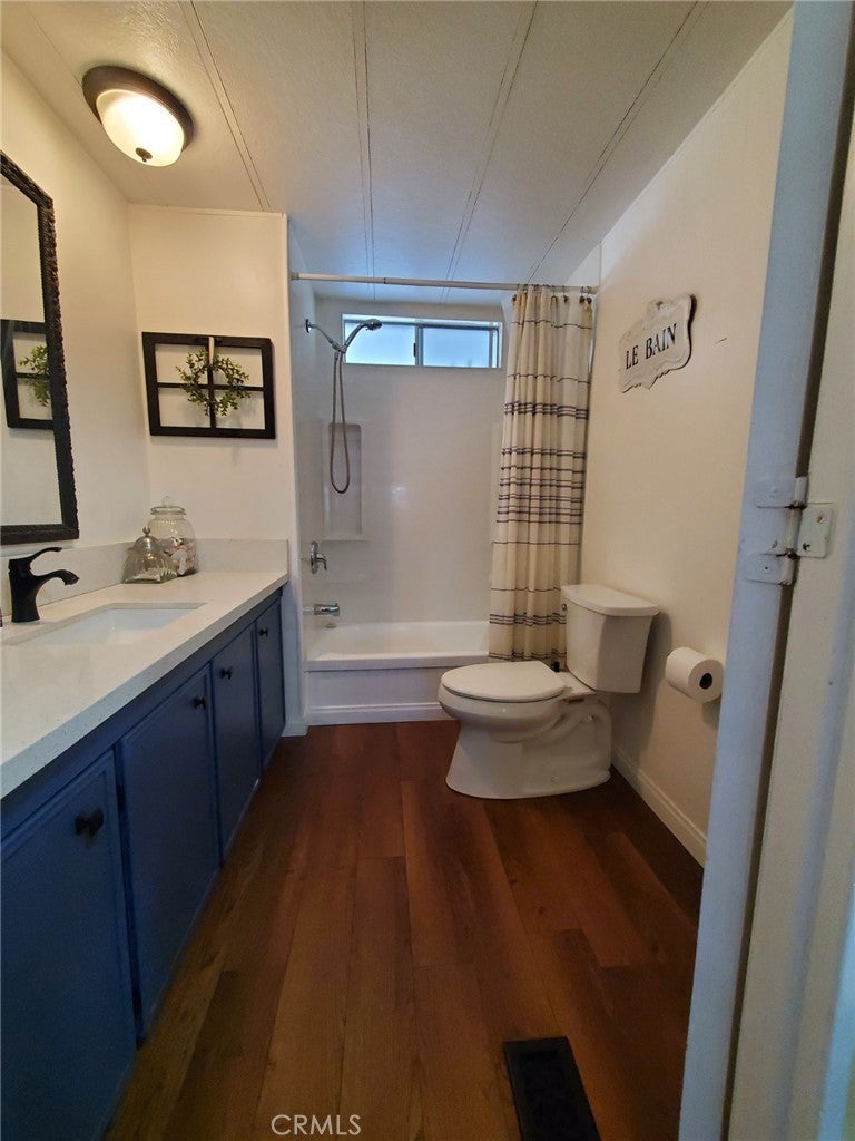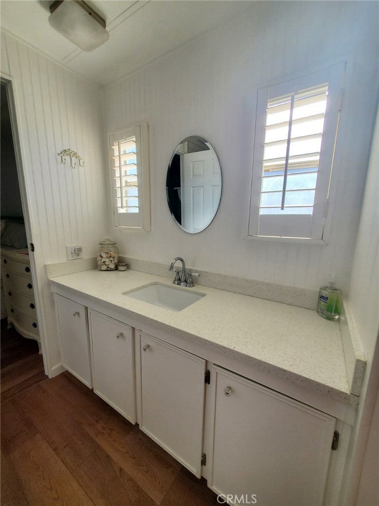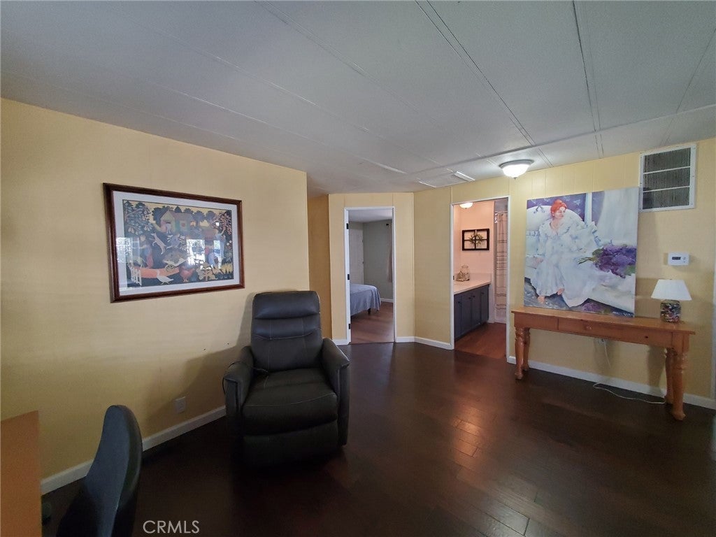 Welcome to your new home, this 2 bedroom 2 bath home has a country farmhouse feel, in a quiet family park with low space rent of only $977 per month. This home features a large open living room with laminate flooring and window blinds which allow lots of natural light. The dining room has a built in white hutch and chandelier. The kitchen has lots of storage and a pantry, stainless steel appliances, which include a dishwasher, refrigerator, oven/stovetop and built in microwave, wainscoting backsplash and a garbage disposal. The full size washer and dryer are located in a closet in the kitchen. The den is off the kitchen and living room and has the same laminate flooring as the living room, dining room and kitchen as well as a built in storage area by the front door. The main bathroom has a new blue vanity with stone countertop and a shower/tub combination. The bedroom can accommodate a queen size bed and has a large walk in closet. The primary bedroom has a large closet, plantation shutters on the window and a private bathroom. The private bathroom has planation shutters, a large vanity with stone countertop, a walk in shower with white subway tile surround. This home has an enclosed yard with a picket fence, 2 sheds, a large inviting front porch, laminate flooring throughout, a craftsman style front door and a wooden screen door. The seller has photos of all renovations done to the property, so you can see the transformation! Schedule an appointment today to see this amazing home!