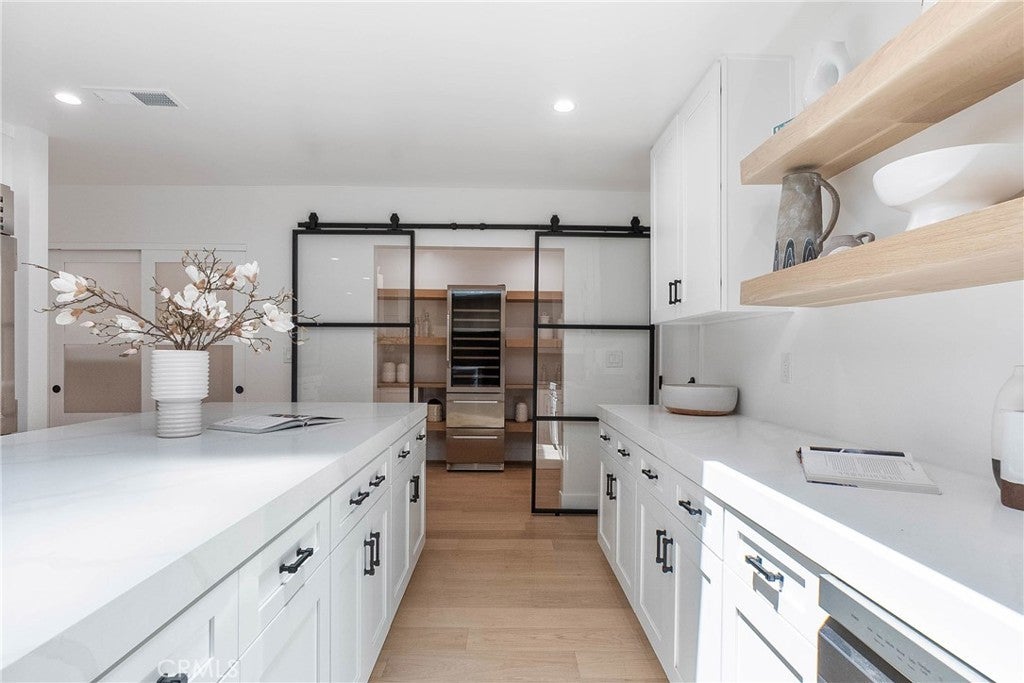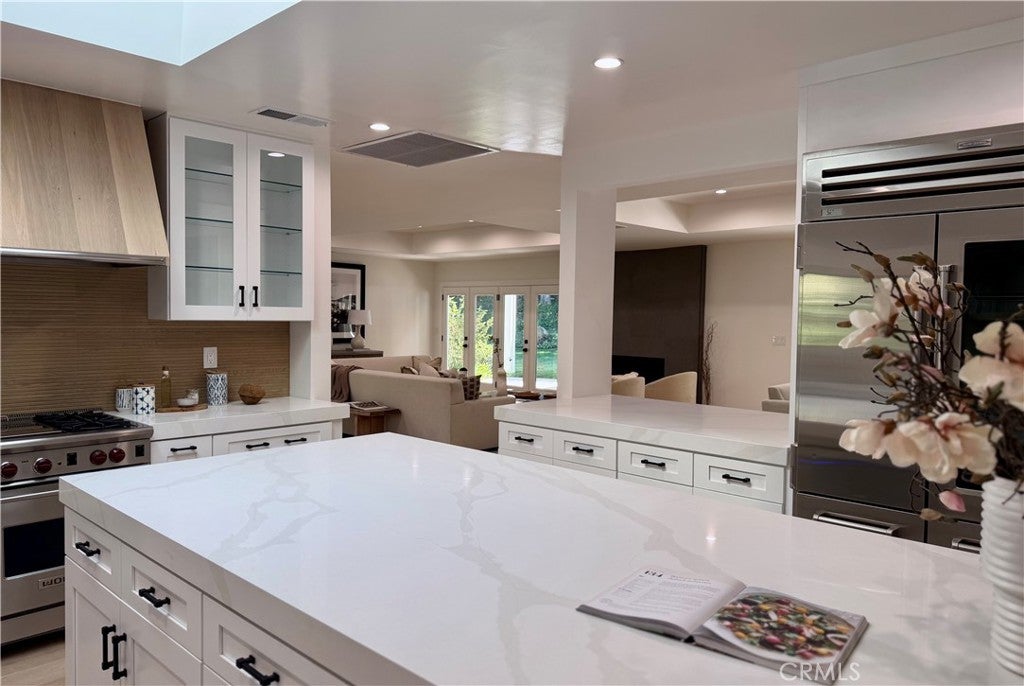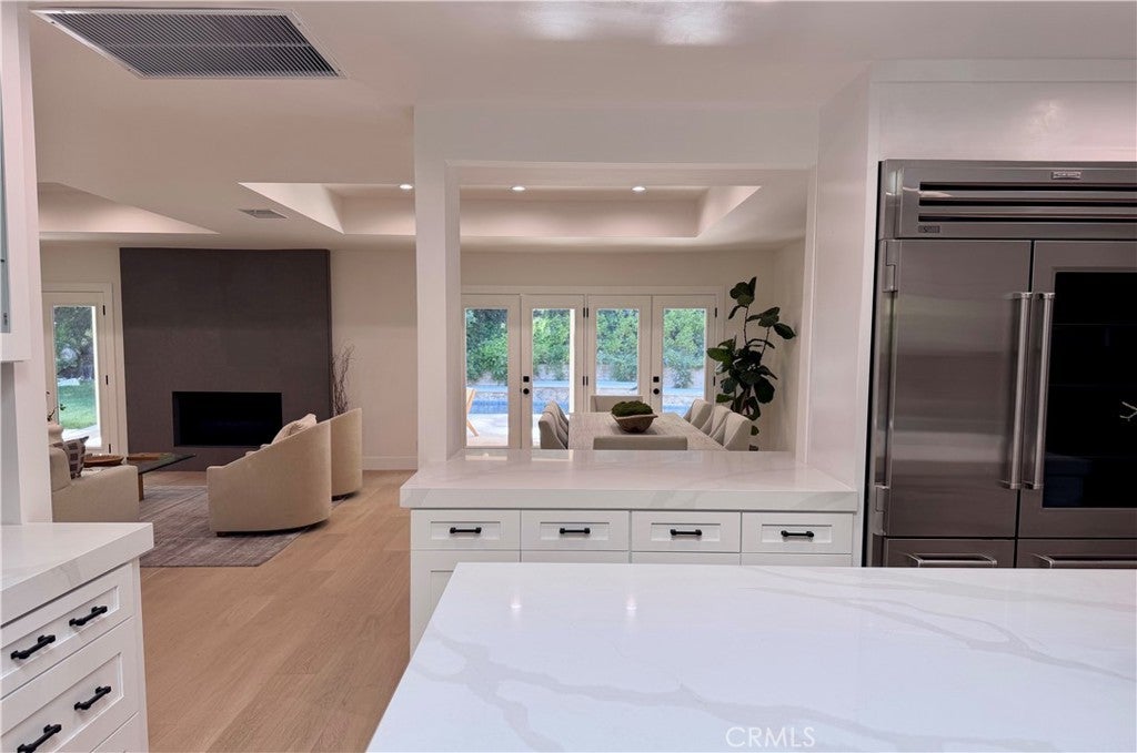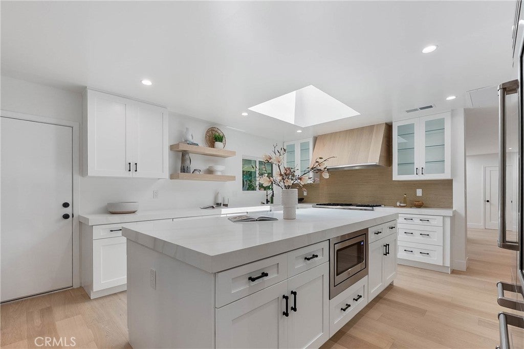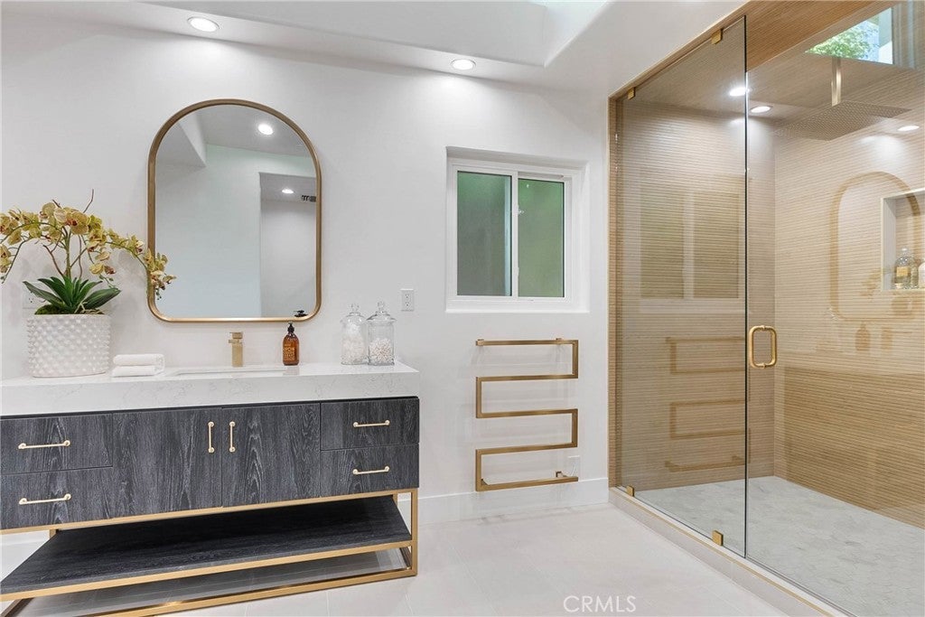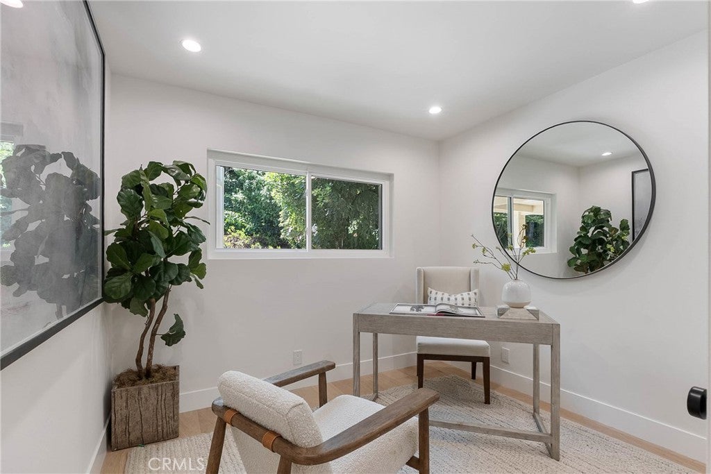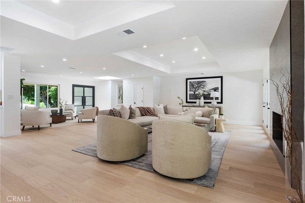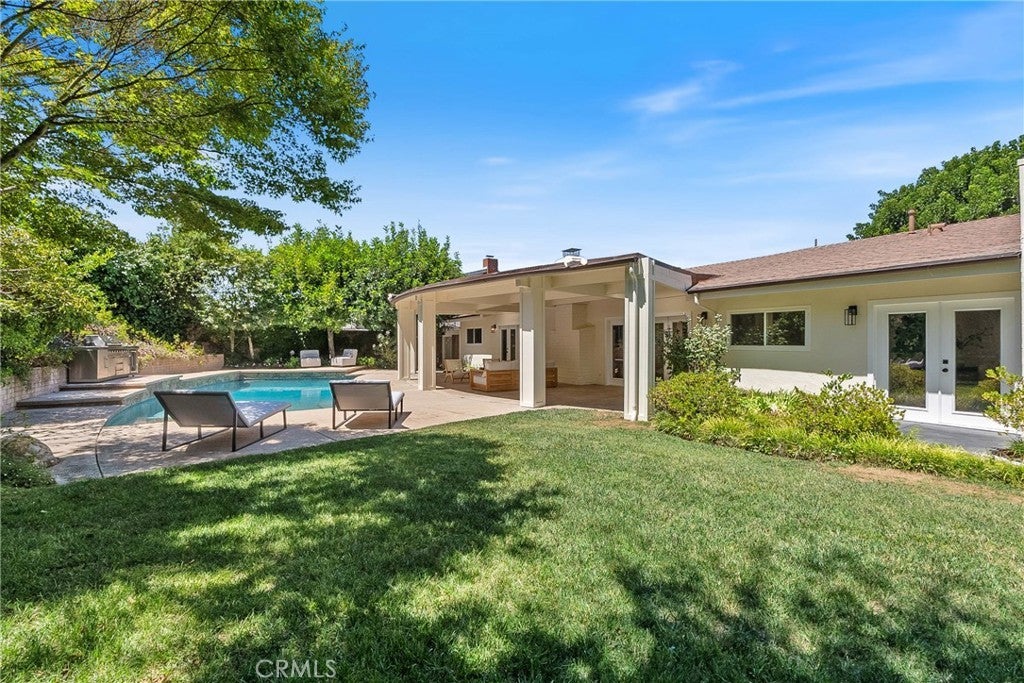 REDUCED 100K! Welcome to one of Encino’s most prestigious and sought-after enclaves. Perfectly situated in the coveted Lanai Road School District, this stunning single-level modern mid-century estate offers the ultimate blend of privacy, location, and style—ideally nestled between the Westside and the Valley. As you approach the home, you’re greeted by a serene covered porch and a Zen-like fountain, setting the tone for what lies inside. Spanning over 3,550 square feet, this thoughtfully designed residence features 5 bedrooms and 6 bathrooms, all situated on an ultra-private, beautifully landscaped lot. Inside, natural light floods the open floor plan through skylights, and the stylish mid-century character that defines the home. The chef’s kitchen is a true showstopper—featuring a massive quartz center island, top-of-the-line Wolf range, Sub-Zero refrigerator, full sized wine refrigerator, custom walk-in pantry with floating shelves, and sleek steel-and-glass sliding doors. The living room boasts a dramatic floor-to-ceiling fireplace with doors that open directly to the tranquil yard. The primary suite is a true luxury retreat, offering its own fireplace, heated towel racks, remote-control toilets, dual walk-in closets, and two en-suite bathrooms—yes, two! A private guest room with its own adjacent bath completes the home’s thoughtful layout. Step into your own personal resort in the backyard, complete with a sparkling pool, cascading waterfall, lush green lawn, and an oversized covered patio—designed for serious lounging and effortless entertaining. Fire up the grill in the outdoor kitchen, set the vibe, and enjoy the carefree lifestyle. Completely renovated with no expense spared, this home flawlessly pairs modern organic design with luxurious functionality.