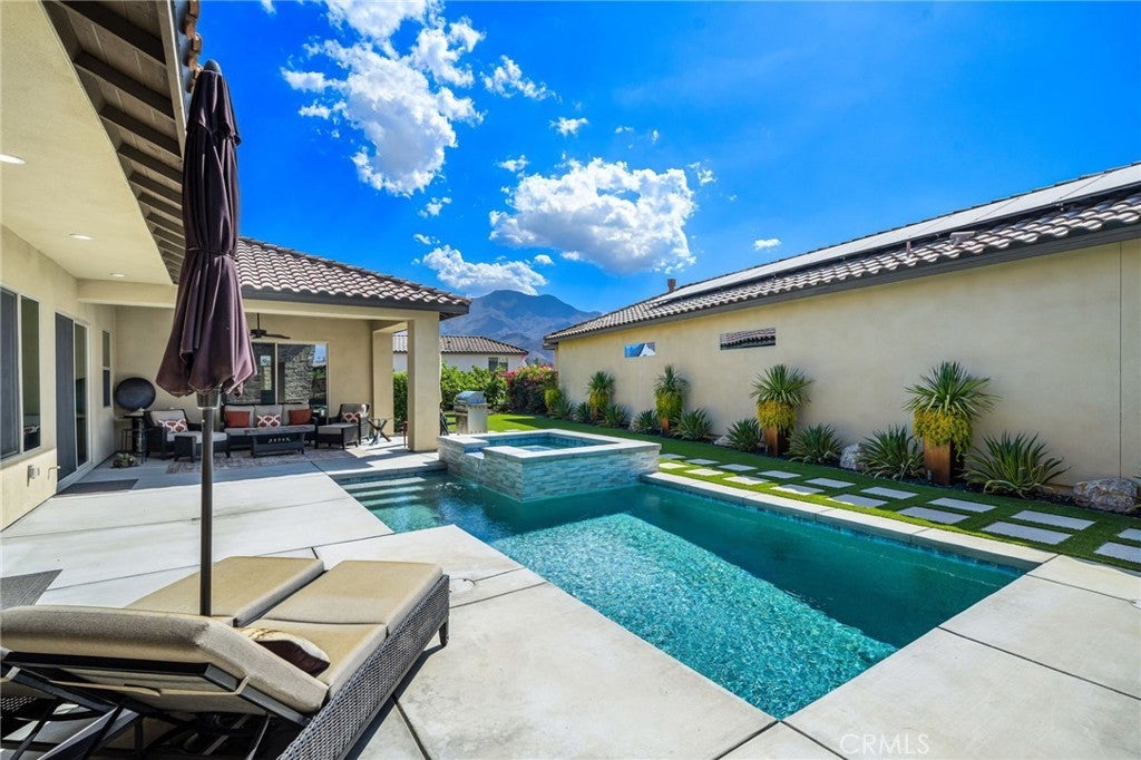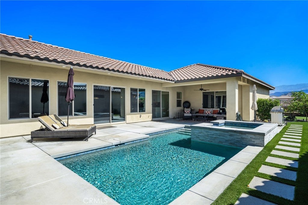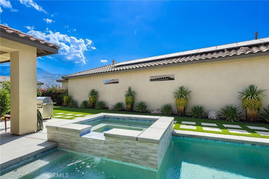 STR APPROVED!!! Welcome to this beautifully appointed single-story home in the highly sought-after Signature community at PGA West. This 3-bedroom, 2.5-bath residence offers breathtaking south-facing mountain views and is ideally located on one of the premier lots in the neighborhood. Designed for comfort and elegance, the home showcases a resort-style backyard perfect for entertaining or relaxing. Enjoy a covered patio, custom Saltwater Pebble Tec pool and raised spa with water features, BBQ, and a generous grassy lawn—all set against a stunning mountain backdrop. Inside, the chef’s kitchen is a true showpiece, Quartz countertops with an oversize waterfall island, high-end stainless-steel appliances, double ovens with built-in air fryer. The spacious living room is enhanced by custom cabinetry and provides sweeping views of the brand-new pool and spa. Additional highlights include 19 PAID solar panels, builder upgrades including custom lighting throughout, a full two-car garage, and a separate golf cart garage. Residents of the Signature community enjoy exclusive access to a private clubhouse, state-of-the-art fitness center, resort-style pool and spa, BBQ areas, and world-class golf and tennis facilities. All this, just a short walk from the acclaimed Ernie’s Restaurant. Investment Opportunity: Signature at PGA West is one of the few communities in La Quinta with detached homes that are zoned for short-term rental (STR) permits—a rare opportunity to generate income during festivals and throughout the year. THIS IS THE LAST NEWER COMMUNITY AVAILABLE IN PGA WEST THAT ALLOWS SHORT TERM RENTALS.