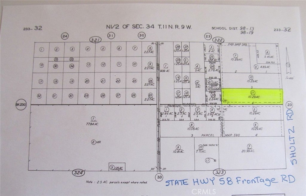 WOW! 10+ flat all usable acres in North Edwards! Near Highway 58 off of Claymine Road with paved frontage on Shultz Road. This cozy community has a market, gas station and school. Near the North gate to Edwards AFB and only 15 minutes to Boron. Electricity near the west side of the property where there are neighbors. Seller will consider carrying with 50% down or discount for all cash. Buyer to make their own investigations as to zoning, use and availability of utilities.