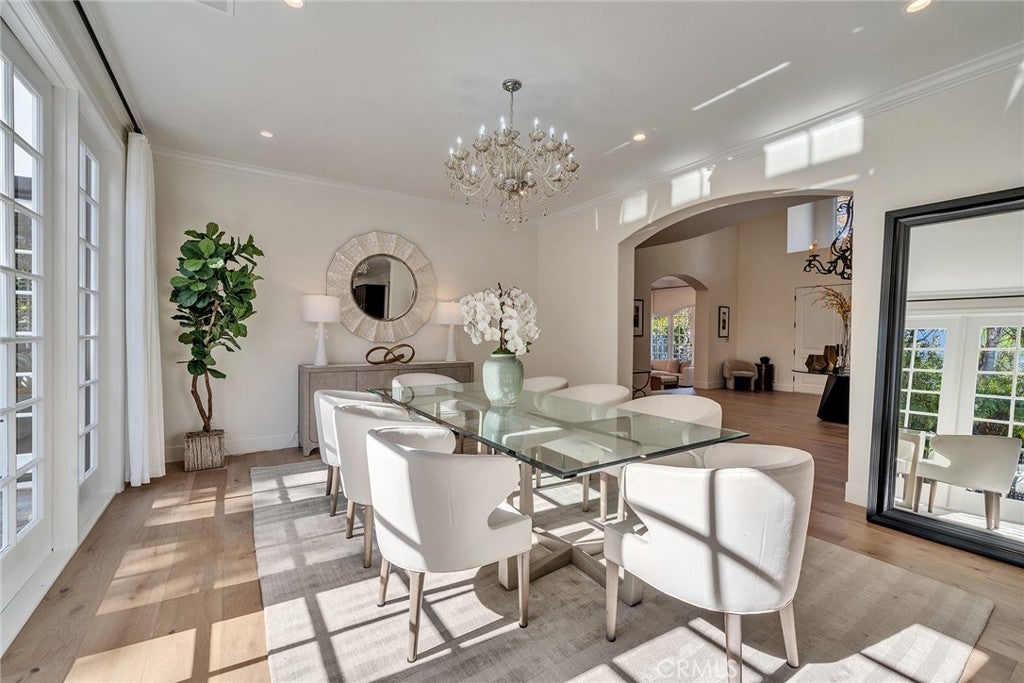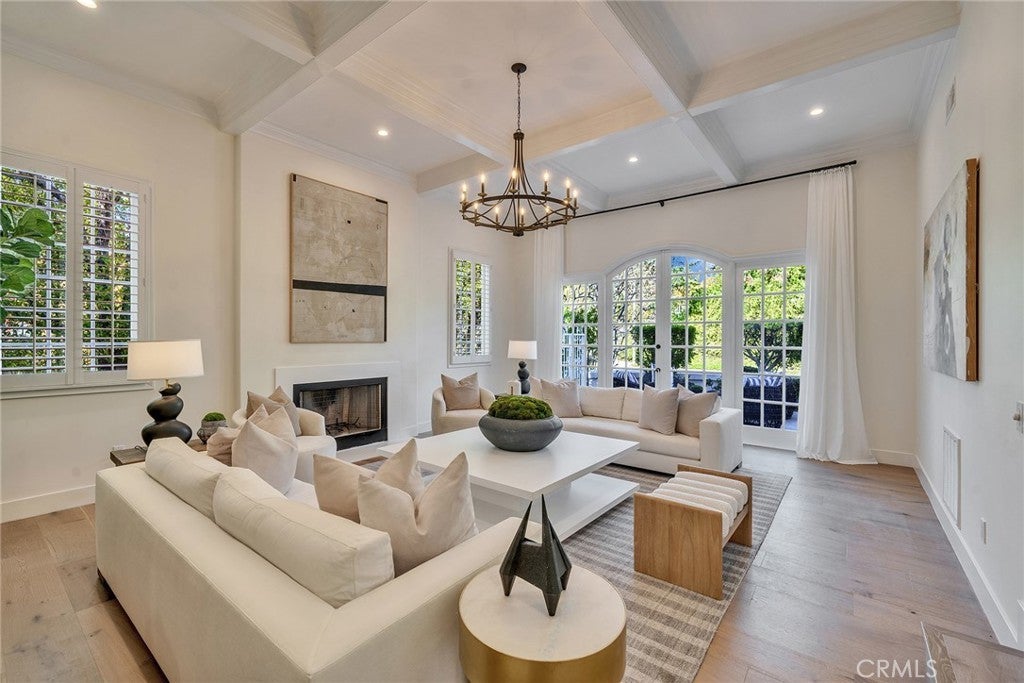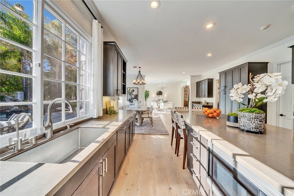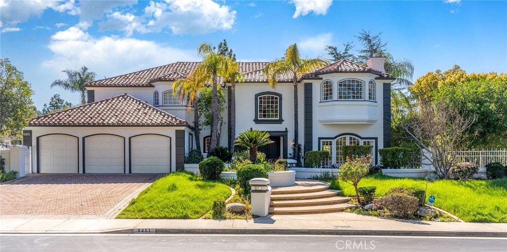 Recently remodeled Guard gated with beautiful water fall in entrance “Mountain View Estates”-- Featuring one bedroom suite and powder room down, five bedrooms four bathrooms on the upper level. All new engineer hard wood floors downstairs, new carpet upstairs and new bathrooms with marble floors upstairs. Formal living room facing front courtyard with coffered ceiling. Giant family room, formal dining room and kitchen/breakfast dining area look out at the gorgeous pool and spa. Spacious and open kitchen includes wood cabinetry, quartz countertops, eat in island, built in/custom panel Sub-Zero refrigerator, two double oven sets, dual range stovetop w/built in indoor grill. Tennis court, hiking trails in the community. Award winning LVUSD schools and plenty of curb appeal. A MUST SEE!