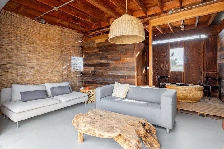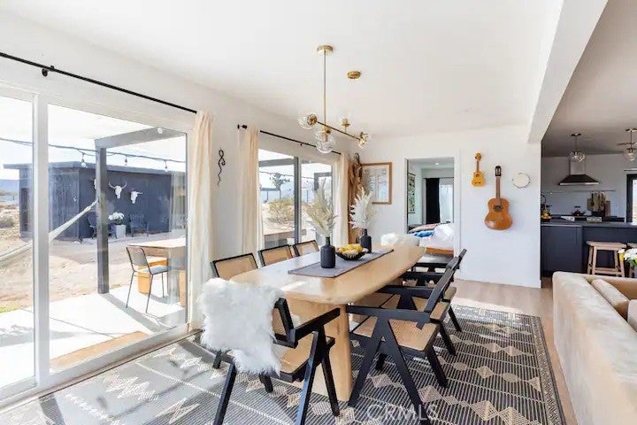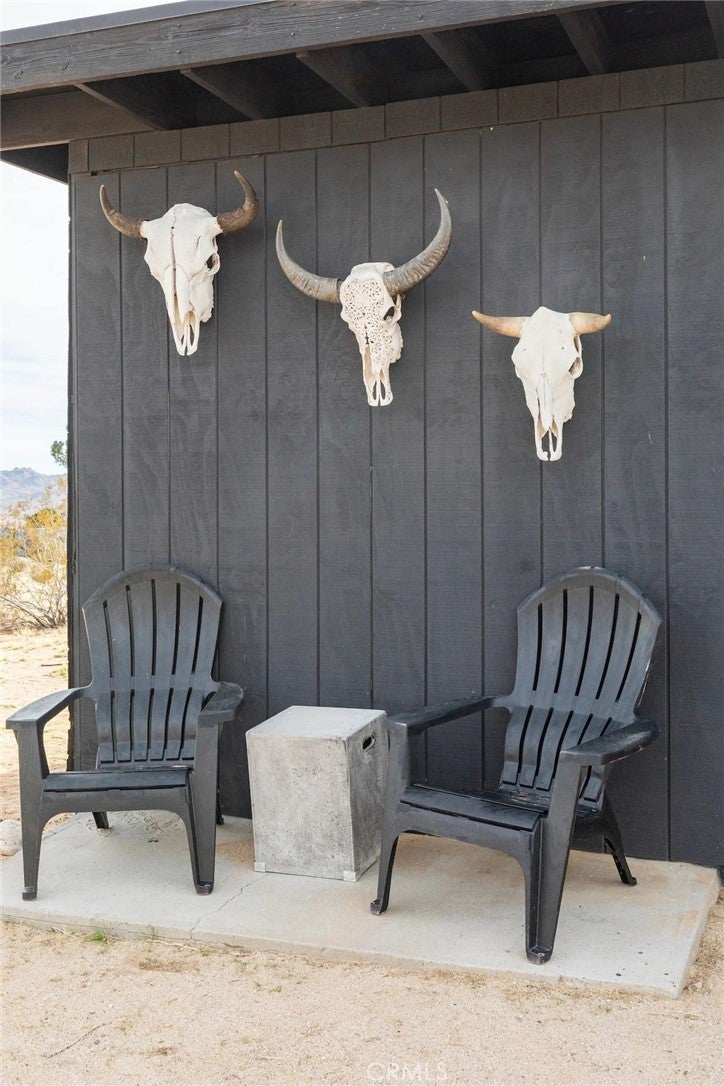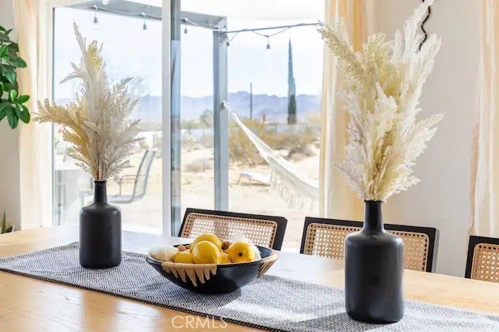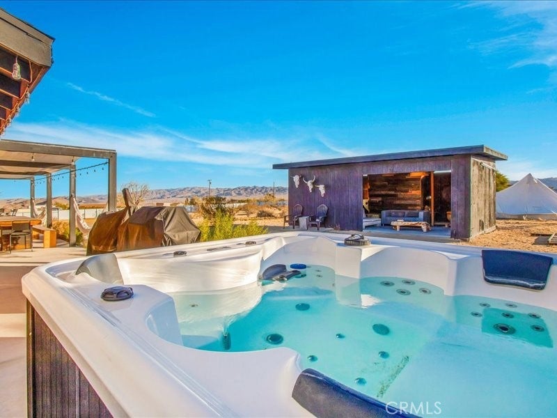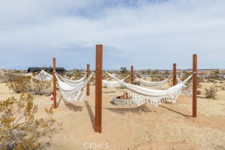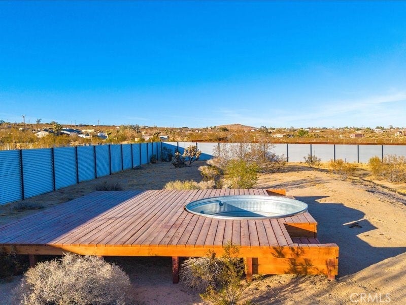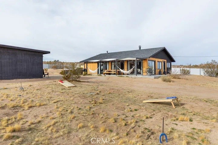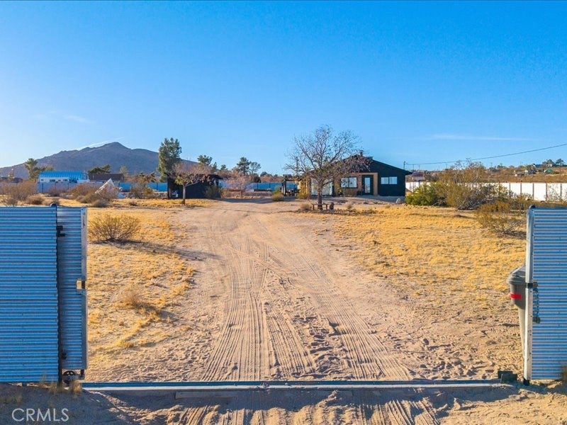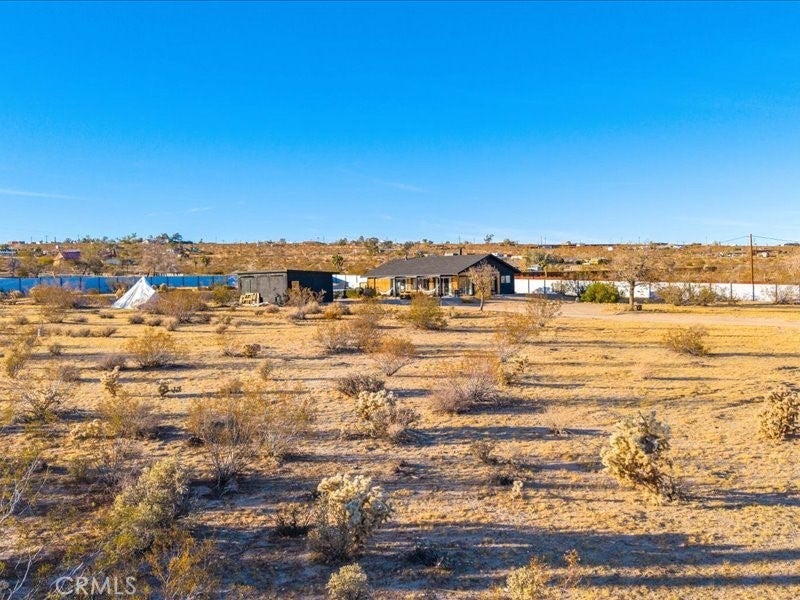 Welcome to Polaris Ranch! A fully gated, beautiful 2.5 acre horse property only 5 minutes from Downtown Joshua Tree, the property is close enough to all that Joshua Tree has to offer and far enough to provide you with the tranquility you seek in the desert. This designer gem offers a wide open floor plan with plenty of natural light, and with a living space that is perfect for entertaining. The living room features a hand troweled TV/entertainment wall upon which sits a wood burning fireplace to cuddle up by during the cool desert nights. The new modern kitchen will make any chef feel right at home and comes with all top rated appliances included. 3 spacious bedrooms, one of which connects to the en-suite bathroom that features double vanity sinks and a luxurious floor-to-ceiling tiled walk in shower. The other opens up to an al fresco secluded shower and soaking tub.a The fully re-designed exterior features a yurt, hammocks, cowboy pool and jetted jacuzzi. Also boasting Brazilian wood clad walls, a reed covered sun shade under which you can relax, and a courtyard that connects the main house to the workshop/shed that can be used for entertaining, an outdoor living space or your very own horse barn. (Note: Property consists of 2 lots that may have the ability to be split.)