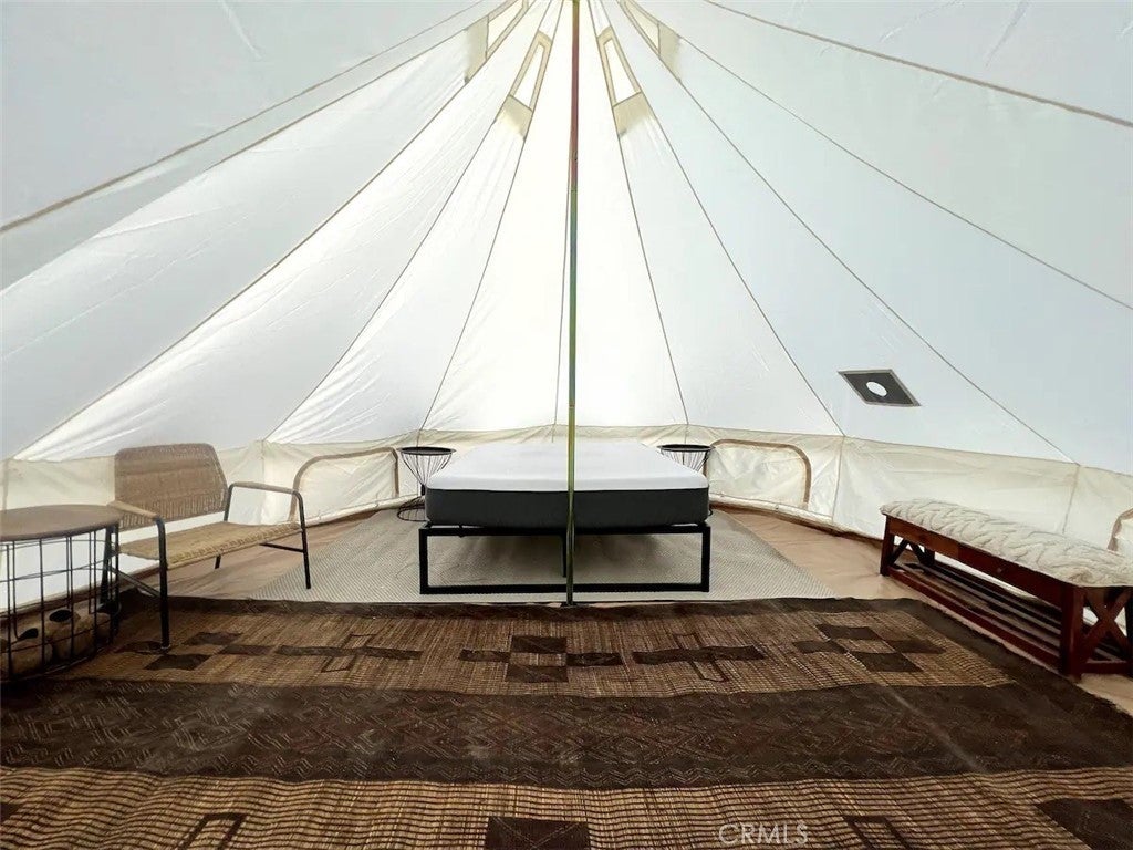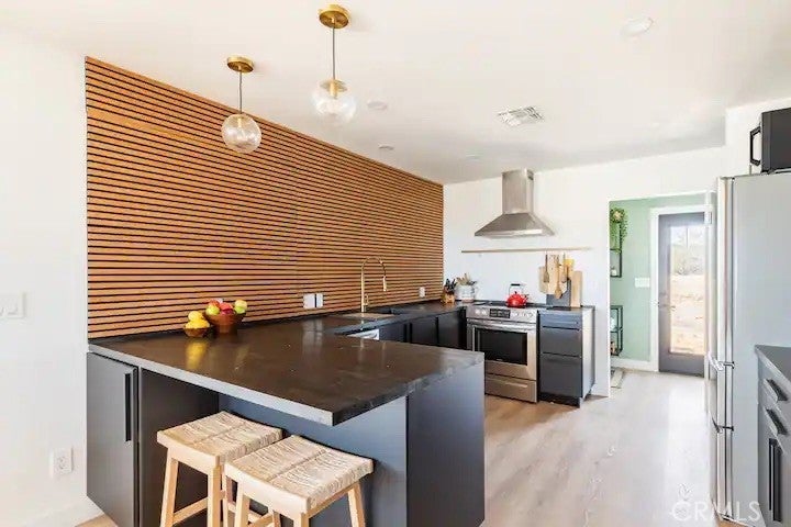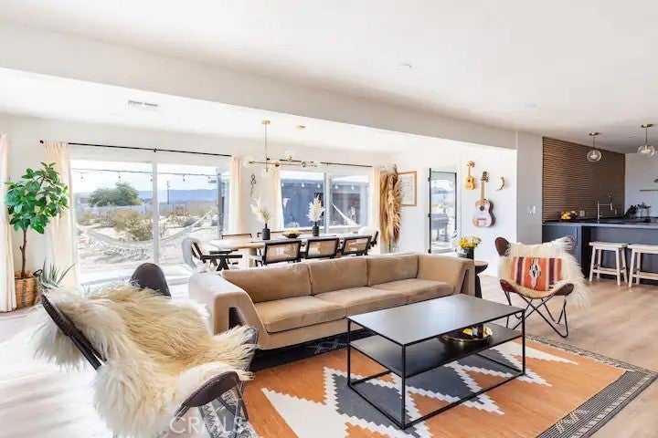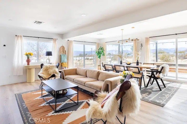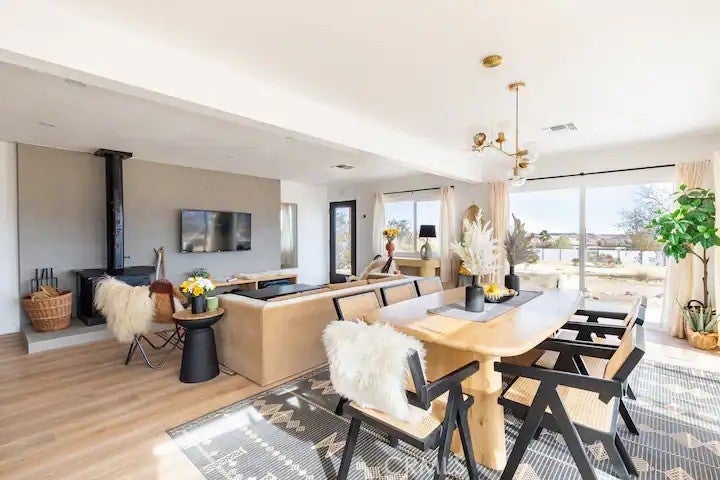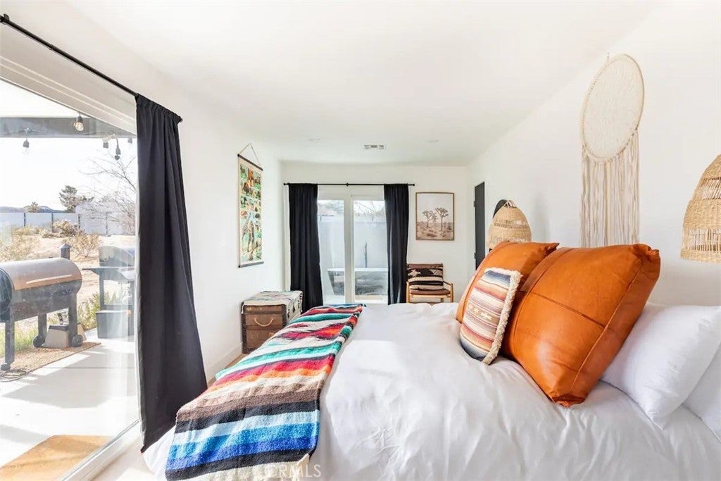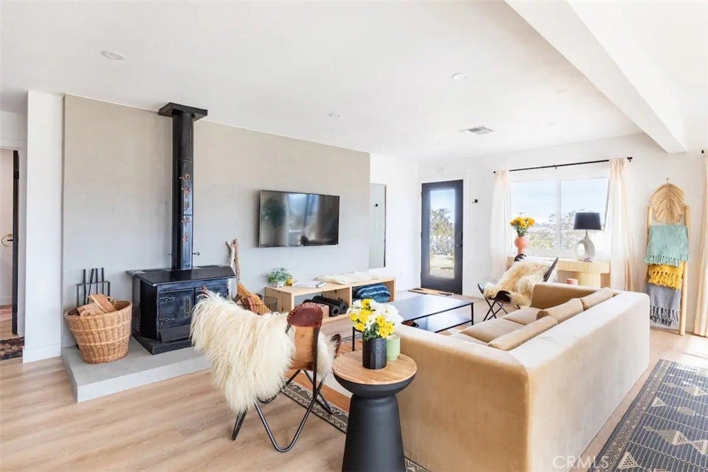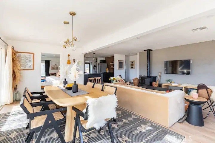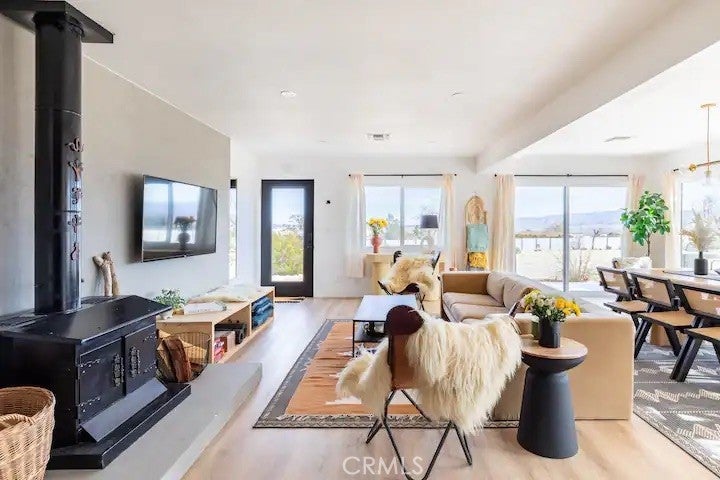 Welcome to Polaris Ranch! A fully gated, beautiful 2.5 acre horse property only 5 minutes from Downtown Joshua Tree, the property is close enough to all that Joshua Tree has to offer and far enough to provide you with the tranquility you seek in the desert. This designer gem offers a wide open floor plan with plenty of natural light, and with a living space that is perfect for entertaining. The living room features a hand troweled TV/entertainment wall upon which sits a wood burning fireplace to cuddle up by during the cool desert nights. The new modern kitchen will make any chef feel right at home and comes with all top rated appliances included. 3 spacious bedrooms, one of which connects to the en-suite bathroom that features double vanity sinks and a luxurious floor-to-ceiling tiled walk in shower. The other opens up to an al fresco secluded shower and soaking tub.a The fully re-designed exterior features a yurt, hammocks, cowboy pool and jetted jacuzzi. Also boasting Brazilian wood clad walls, a reed covered sun shade under which you can relax, and a courtyard that connects the main house to the workshop/shed that can be used for entertaining, an outdoor living space or your very own horse barn. (Note: Property consists of 2 lots that may have the ability to be split.)