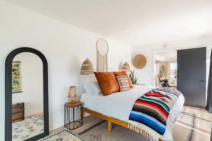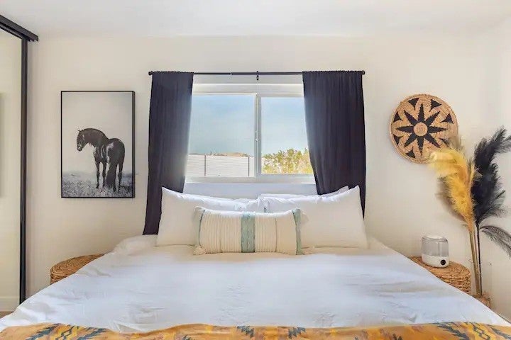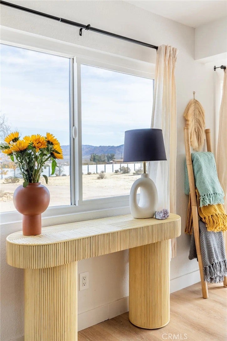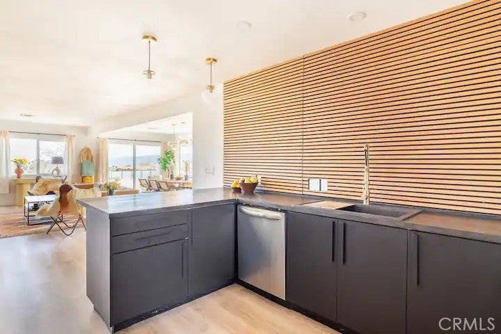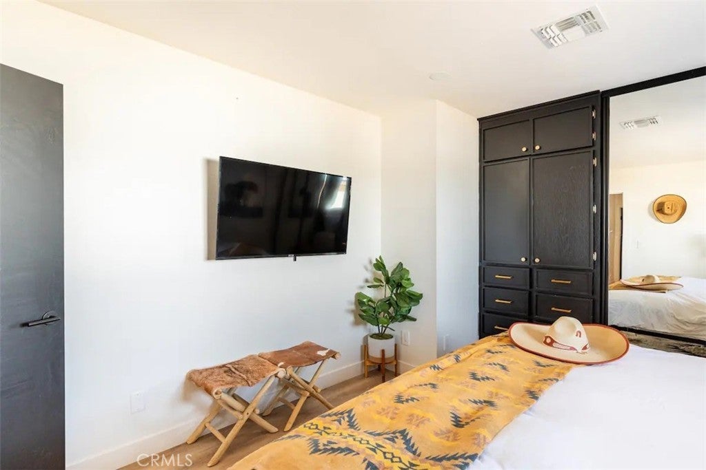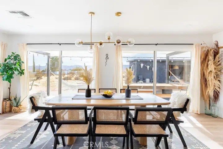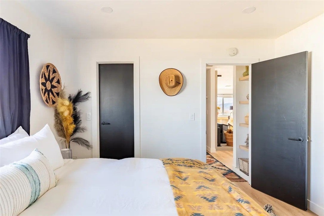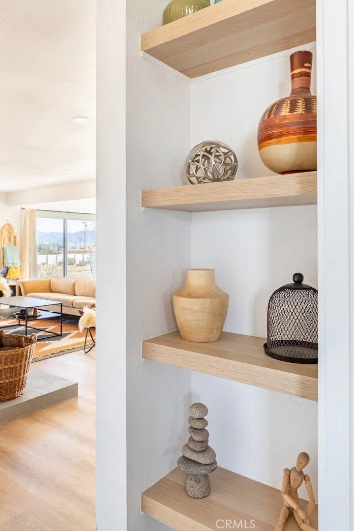 Welcome to Polaris Ranch! A fully gated, beautiful 2.5 acre horse property only 5 minutes from Downtown Joshua Tree, the property is close enough to all that Joshua Tree has to offer and far enough to provide you with the tranquility you seek in the desert. This designer gem offers a wide open floor plan with plenty of natural light, and with a living space that is perfect for entertaining. The living room features a hand troweled TV/entertainment wall upon which sits a wood burning fireplace to cuddle up by during the cool desert nights. The new modern kitchen will make any chef feel right at home and comes with all top rated appliances included. 3 spacious bedrooms, one of which connects to the en-suite bathroom that features double vanity sinks and a luxurious floor-to-ceiling tiled walk in shower. The other opens up to an al fresco secluded shower and soaking tub.a The fully re-designed exterior features a yurt, hammocks, cowboy pool and jetted jacuzzi. Also boasting Brazilian wood clad walls, a reed covered sun shade under which you can relax, and a courtyard that connects the main house to the workshop/shed that can be used for entertaining, an outdoor living space or your very own horse barn. (Note: Property consists of 2 lots that may have the ability to be split.)