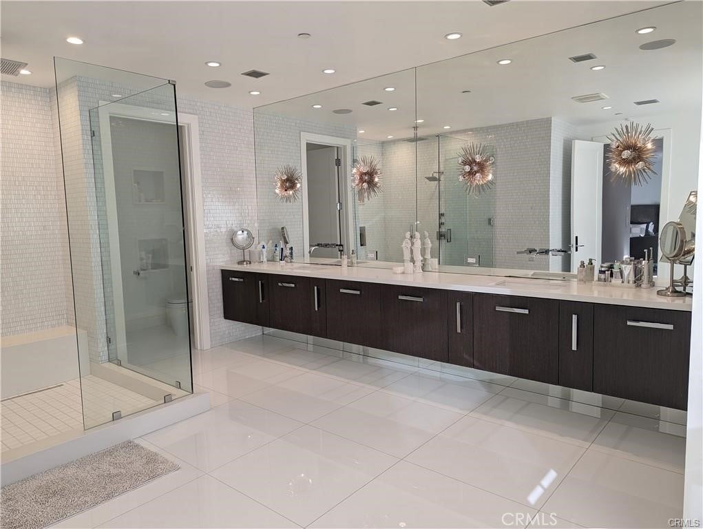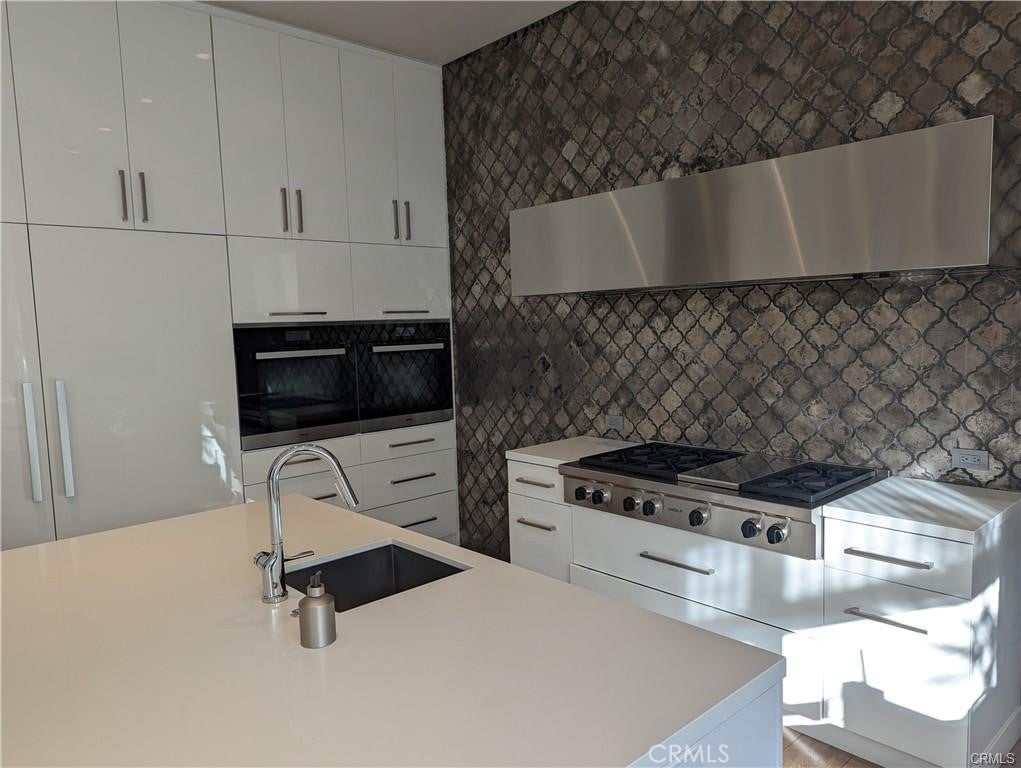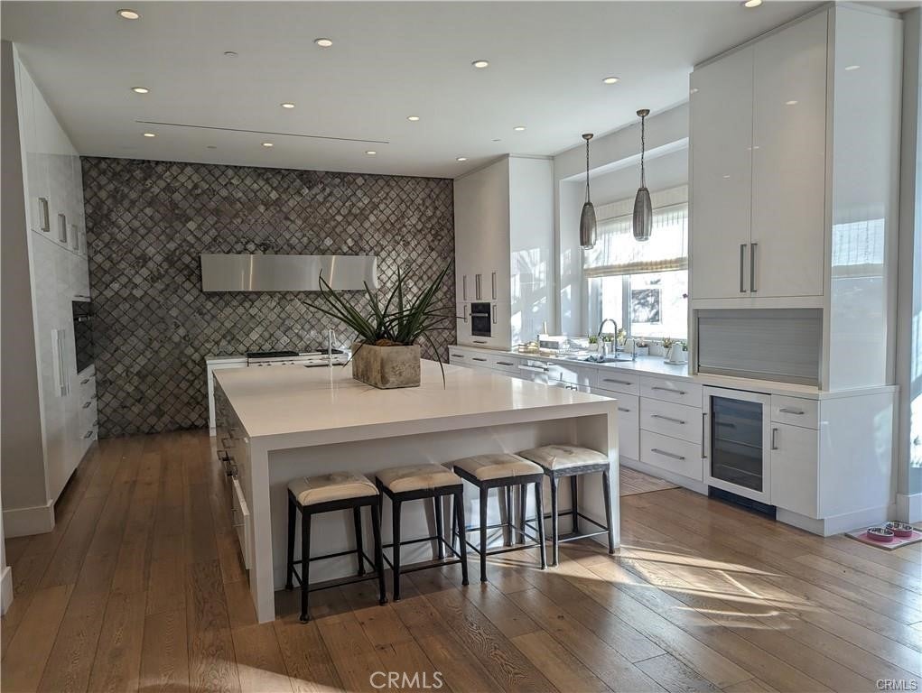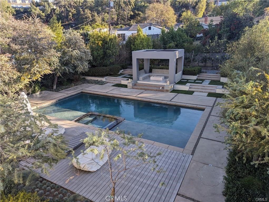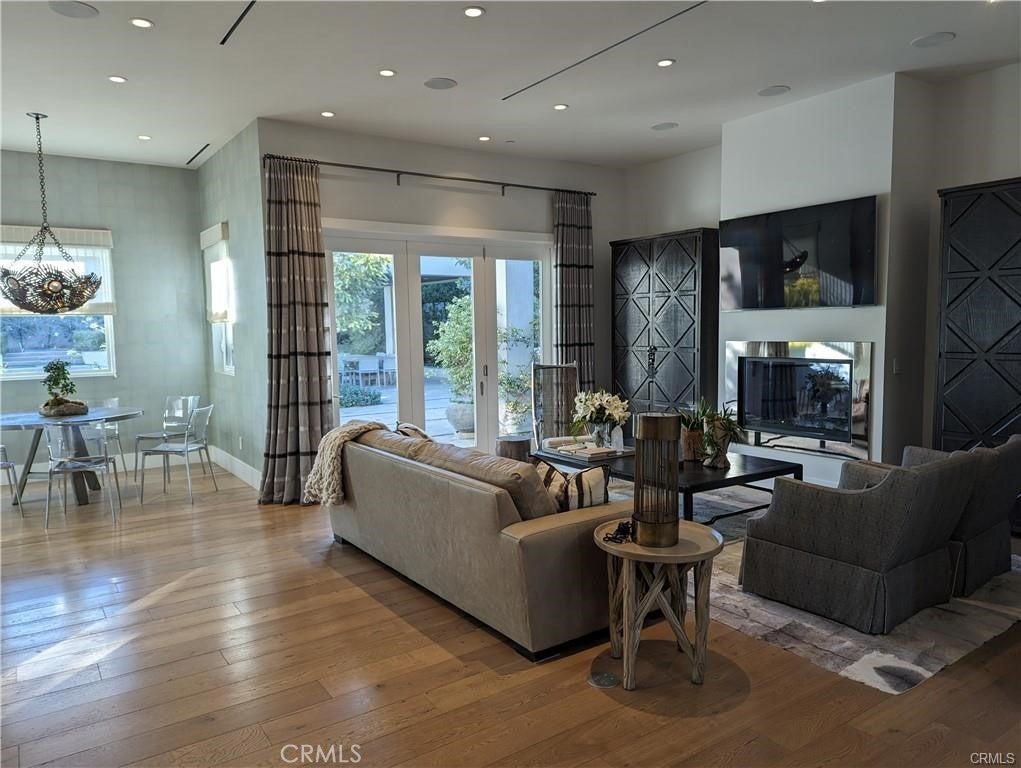 Modern designer estate nestled in a beautiful neighborhood South of the boulevard in Encino. Built on an expansive 20,000 Sqft lot and set behind stunning stainless steel gates, this home features 5 bedrooms + 6 baths and a large, brilliantly landscaped back yard full of amenities. Enter through large double doors into a bright and airy open floor plan that boasts high ceilings throughout. The stunning living room is surrounded by white walls and numerous windows that provide natural light. Rear doors open to offer the quintessential indoor/outdoor living experience. The downstairs area features a gorgeous fireplace and a separate formal dining room with table and seating for 8+ family and friends, as well as a large sitting room with vaulted ceilings. Enjoy a full gourmet kitchen; a culinary enthusiast's dream, comes equipped with professional grade Miele appliances, custom cabinets, a massive island for food prep and seating, and a cozy breakfast area. Reminiscent of a five-star resort, the spacious backyard retreat is the perfect spot to entertain guests. Surrounded by lush landscaping, it consists of a brilliantly finished pool with a large, attached spa, poolside pergola with fire pit, summer kitchen with bar seating and covered patio. Built-in BBQ, pizza-oven, covered large outdoor dining area with table and chairs, and plenty of fruit trees. All bedrooms and bathrooms have been outfitted with top-quality finishes and fixtures, personally selected by the designer. This newly built property is an ultra-modern Smart Home and has a large movie theater on the lower level with rows of theater seating. Large, attached garage for storage and secure parking. Comprehensive security system and alarm installed for your safety. Step into luxury as you walk through the front door and experience this home’s fabulous amenities. This property gathers the best of modern design, color, texture, and quality that provides the ultimate living experience. Available immediately. Owner can fully furnish property for $26k/month. SHOWN BY APPOINTMENT ONLY.
