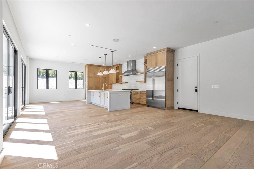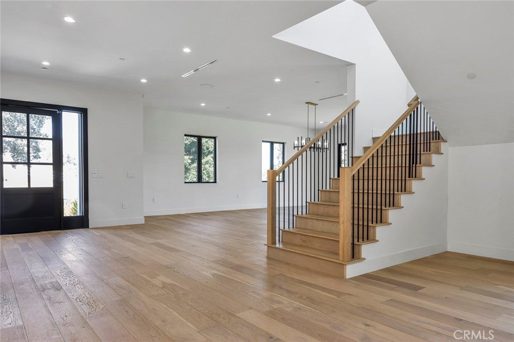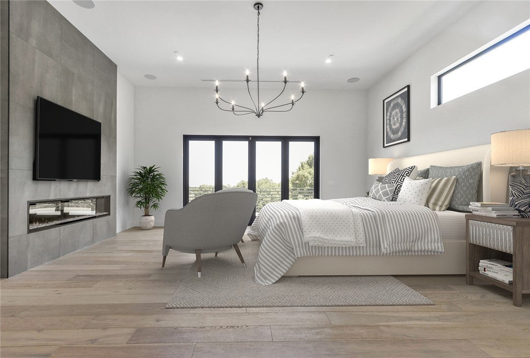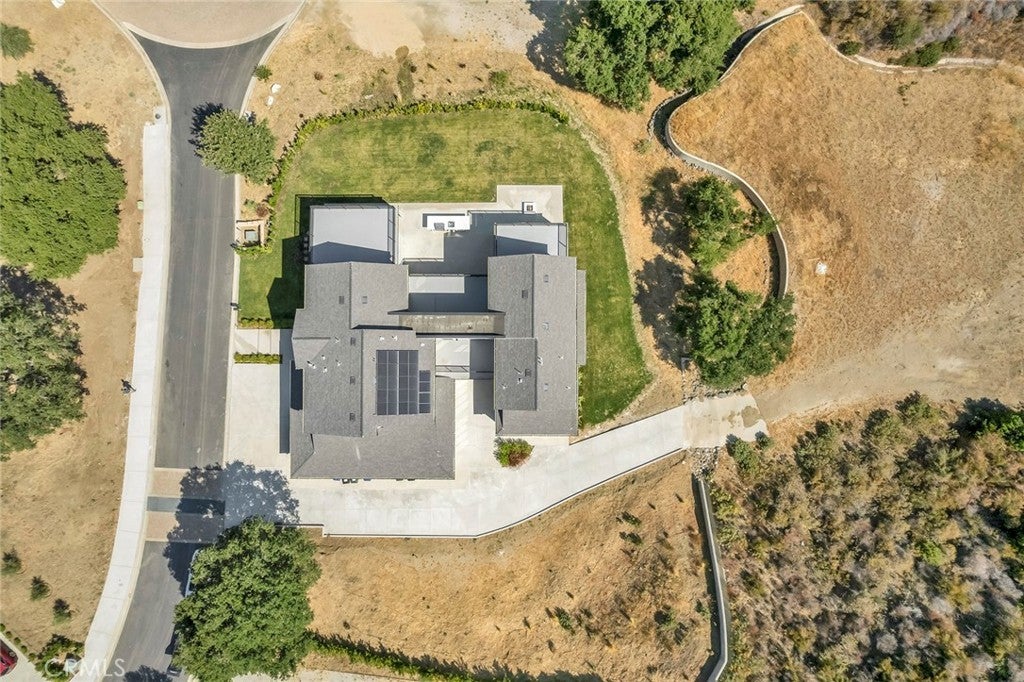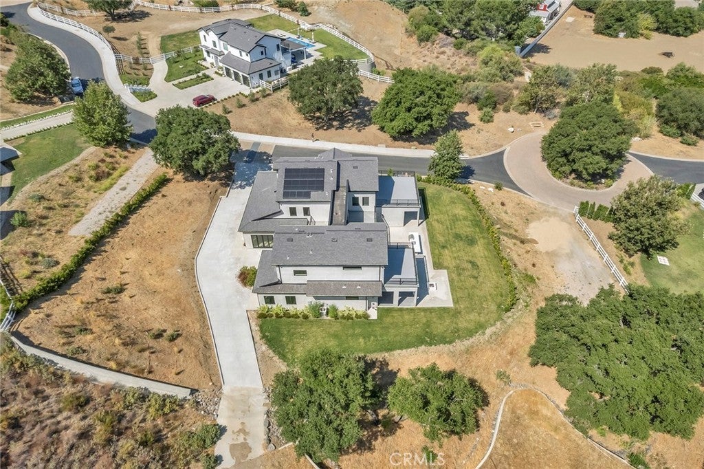 Perched on a private 3.87-acre lot, in an exclusive gated-community this newly constructed luxury estate blends sophisticated design with the natural beauty of its hillside surroundings. Offering 5 bedrooms, 5 bathrooms, and 5,446 square feet of meticulously crafted living space, this two-story residence delivers comfort, elegance, and functionality at every turn. Step inside and be greeted by soaring ceilings, wide-plank oak wood flooring, and a light-filled open layout. The formal dining area leads effortlessly into a grand living room centered around a sleek electric fireplace with both heating and cooling functions—perfect for year-round comfort. Oversized sliding doors invite indoor-outdoor flow, revealing a covered patio ideal for entertaining. The heart of the home is the chef’s kitchen, featuring a stunning quartzite waterfall island, custom oak cabinetry, and abundant storage. Just off the kitchen, a spacious three-car garage with epoxy flooring adds everyday convenience. The main level also includes a well-appointed guest suite with ensuite bath, perfect for visitors or extended family. Upstairs, the expansive primary suite is a true retreat with its private balcony showcasing sweeping hillside views, an oversized walk-in closet, and a spa-inspired bathroom complete with a soaking tub, glass-enclosed shower, and dual vanities. Three additional bedrooms, 2 of which has walk-in closets, are thoughtfully positioned for privacy, along with a full laundry room and utility sink. Outdoors, the grounds have been thoughtfully prepared for both leisure and future expansion. A graded backyard pad and additional graded side yard pad offers potential for a pool, guesthouse, or ADU, while a built-in BBQ and custom hardscaping make entertaining effortless. With space, style, and serenity, 26474 Ranch Creek Rd is a rare offering—perfect for those seeking upscale living in a private, expansive setting just minutes from city conveniences.