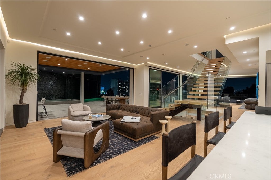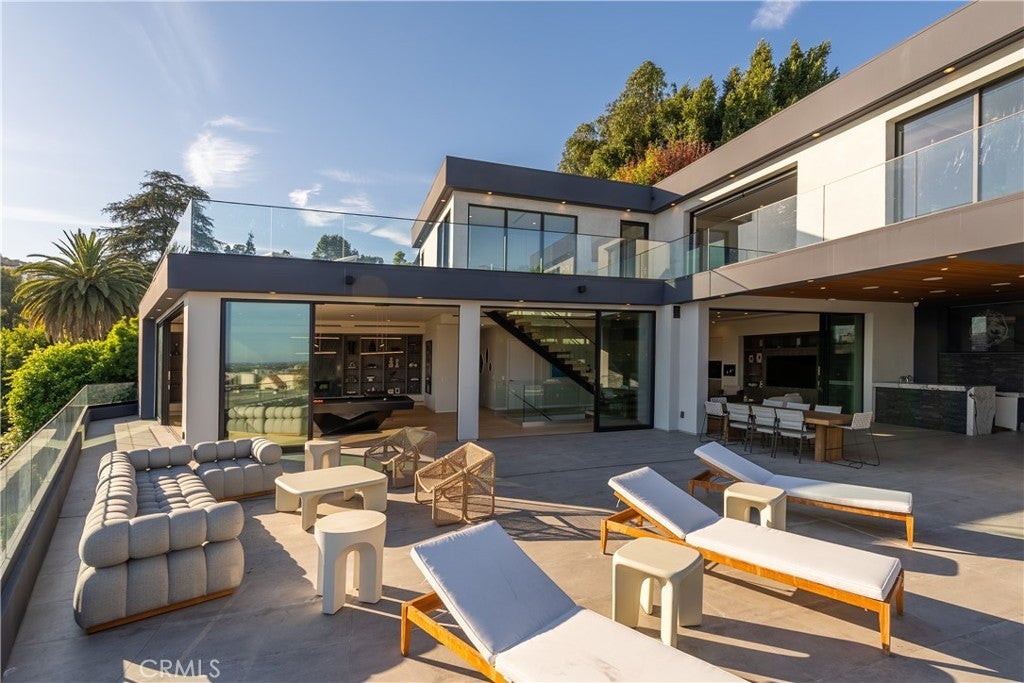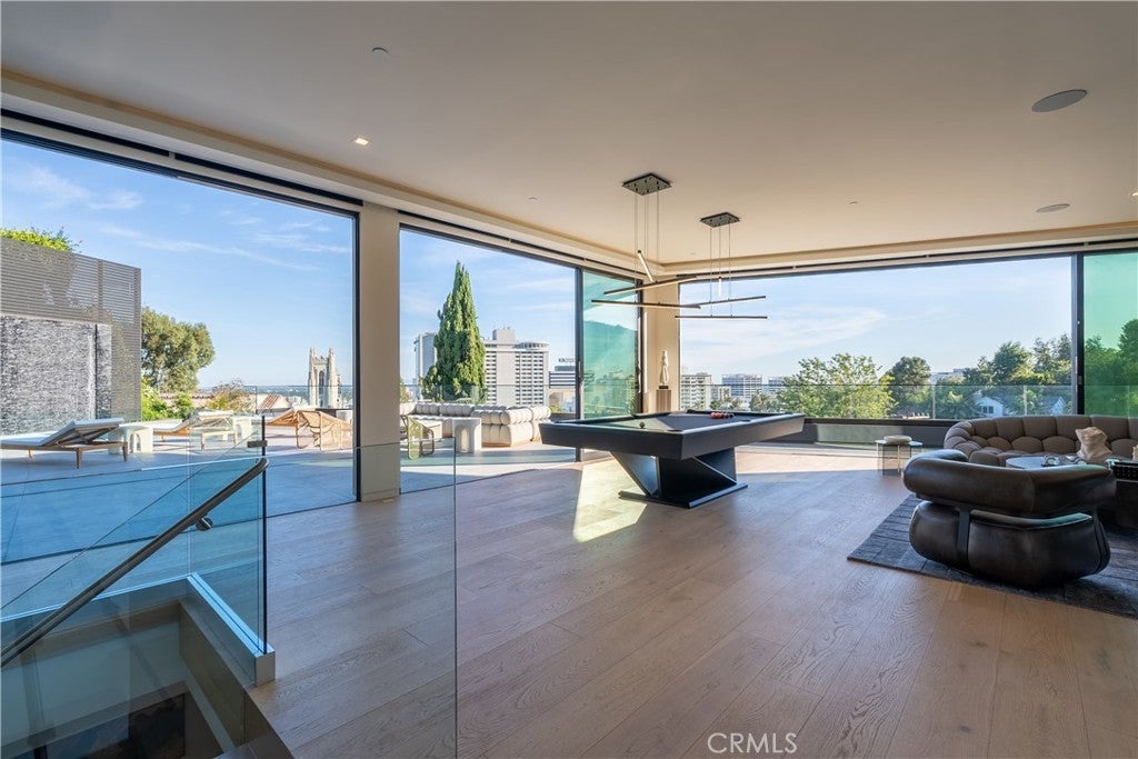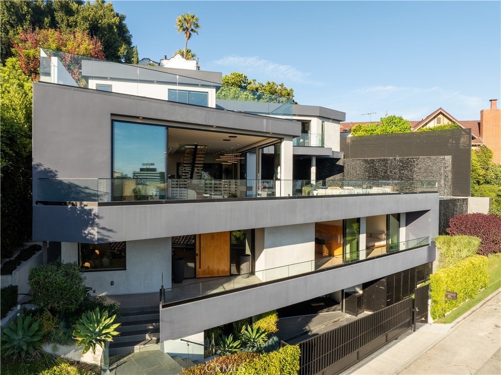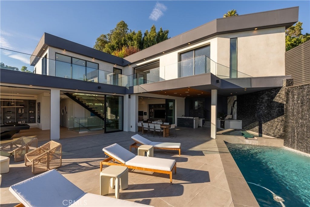 Welcome to this Modern Luxury Estate in the prime Hollywood Hills! With the best views of the city, this exceptional residence blends cutting-edge design with high-end finishes, offering the ultimate luxury living and entertainment. Spanning multiple levels, the home features 6 generously sized bedrooms and 7 bathrooms, each with en-suite configurations and custom walk-in closets. The entry-level boasts three guest suites, a state-of-the-art movie theater, and a full bar, creating a perfect setting for entertaining. The main living area showcases floor-to-ceiling sliding doors, seamlessly connecting indoor and outdoor spaces. The chef’s kitchen includes a large island, walk-in pantry, and premium appliances, opening to a resort-style deck complete with an infinity pool, rockwall waterfall, oversized hot tub, built-in BBQ, and wet bar, all overlooking stunning views of Hollywood. The top level is dedicated to the primary suite, featuring panoramic city views, a custom walk-in closet, and a luxurious bath with a soaking tub positioned to overlook Los Angeles. The primary suite has a private patio tucked away in the back with a private staircase to the pool. There's an additional en-suite bedroom, ideal for an office, also provides access to a private rooftop deck with unobstructed city views. On the lower level, you'll find another en-suite bedroom perfect for a gym or guest quarters. Additional highlights include a smart home system, full-service elevator, built-in surround sound, full security system, automated blinds, a 4 car garage, and a privately gated entrance. This one-of-a-kind estate offers a rare opportunity to own a truly unique and masterfully crafted property in one of Los Angeles’ most sought-after neighborhoods! Here's your chance to call it yours