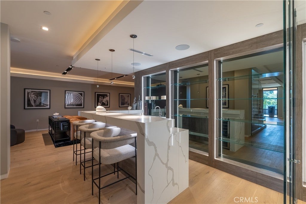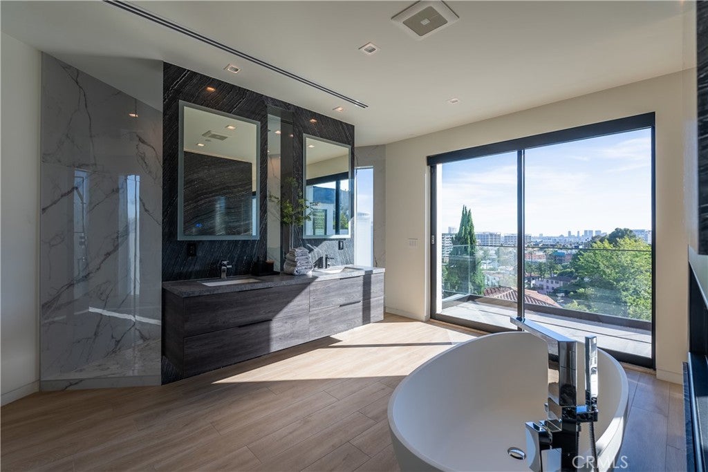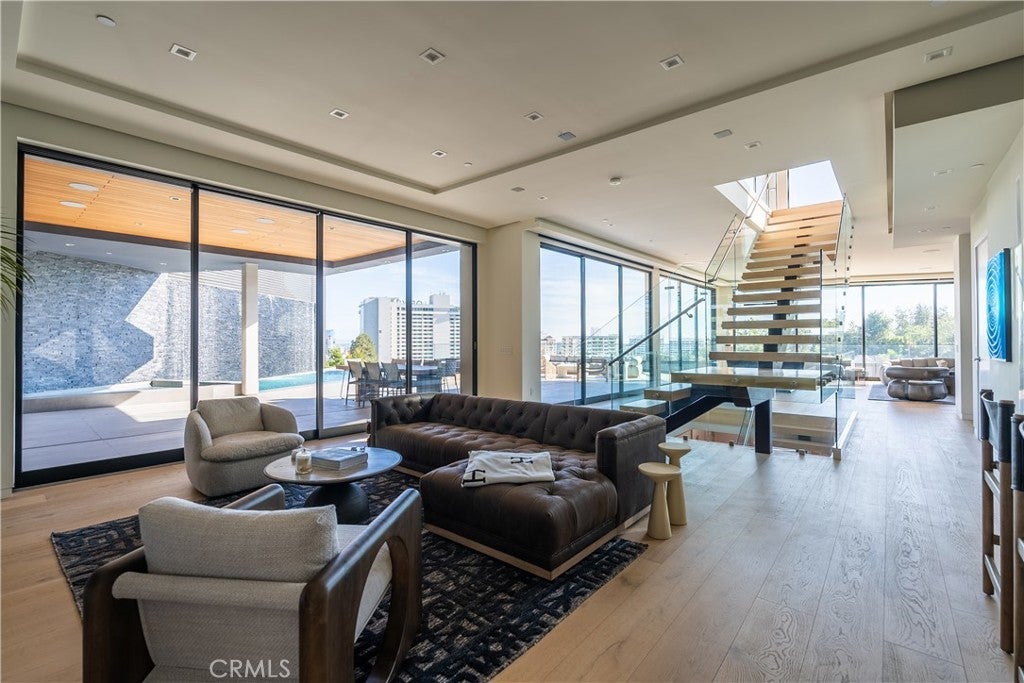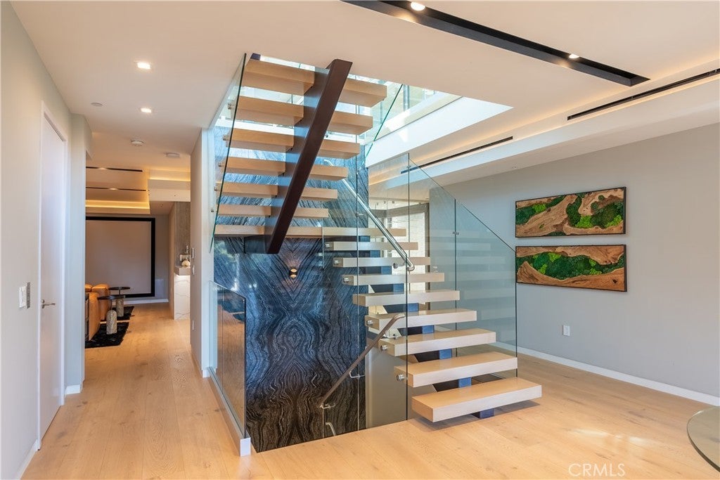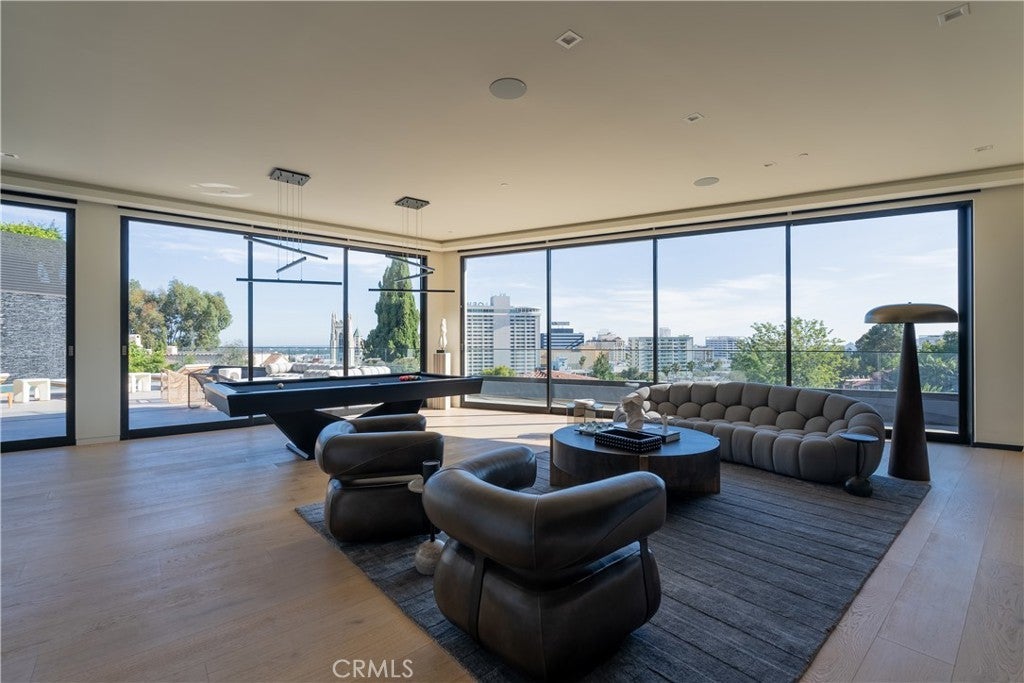 Welcome to this Modern Luxury Estate in the prime Hollywood Hills! With the best views of the city, this exceptional residence blends cutting-edge design with high-end finishes, offering the ultimate luxury living and entertainment. Spanning multiple levels, the home features 6 generously sized bedrooms and 7 bathrooms, each with en-suite configurations and custom walk-in closets. The entry-level boasts three guest suites, a state-of-the-art movie theater, and a full bar, creating a perfect setting for entertaining. The main living area showcases floor-to-ceiling sliding doors, seamlessly connecting indoor and outdoor spaces. The chef’s kitchen includes a large island, walk-in pantry, and premium appliances, opening to a resort-style deck complete with an infinity pool, rockwall waterfall, oversized hot tub, built-in BBQ, and wet bar, all overlooking stunning views of Hollywood. The top level is dedicated to the primary suite, featuring panoramic city views, a custom walk-in closet, and a luxurious bath with a soaking tub positioned to overlook Los Angeles. The primary suite has a private patio tucked away in the back with a private staircase to the pool. There's an additional en-suite bedroom, ideal for an office, also provides access to a private rooftop deck with unobstructed city views. On the lower level, you'll find another en-suite bedroom perfect for a gym or guest quarters. Additional highlights include a smart home system, full-service elevator, built-in surround sound, full security system, automated blinds, a 4 car garage, and a privately gated entrance. This one-of-a-kind estate offers a rare opportunity to own a truly unique and masterfully crafted property in one of Los Angeles’ most sought-after neighborhoods! Here's your chance to call it yours