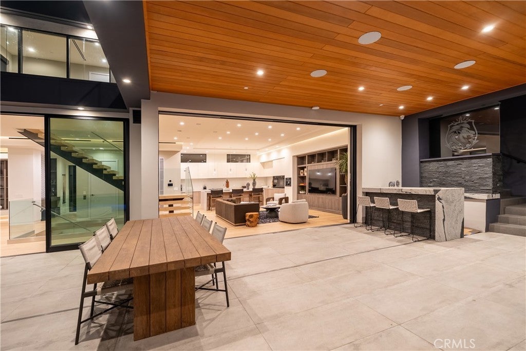 Built-in Features, Separate/Formal Dining Room, Eat-in Kitchen, High Ceilings, Living Room Deck Attached, Open Floorplan, Pantry, Recessed Lighting, Bar, Main Level Primary, Multiple Primary Suites, Primary Suite, Walk-In Pantry, Wine Cellar, Walk-In Closet(s), Elevator, Wired for Sound
