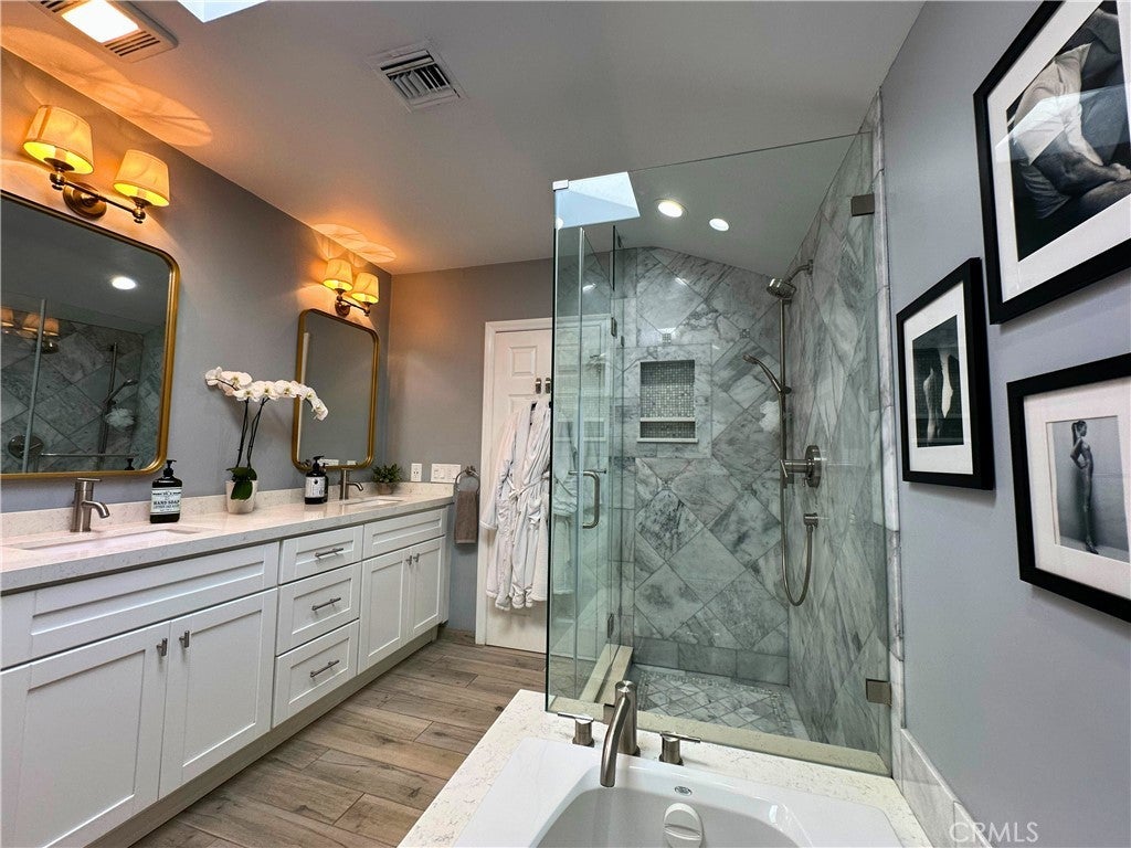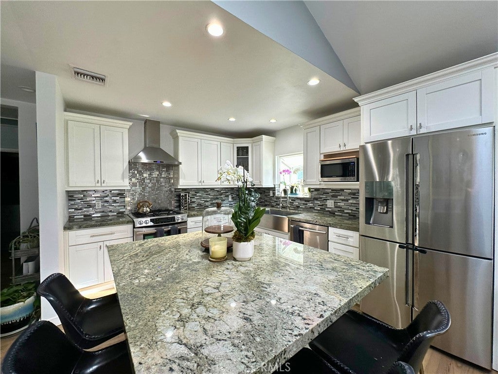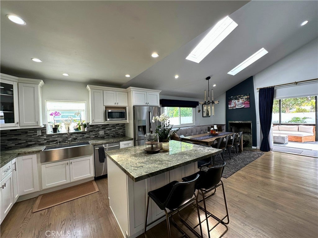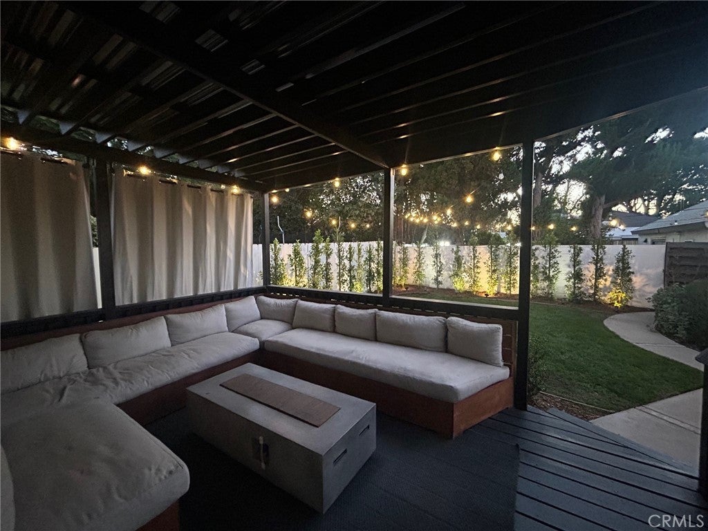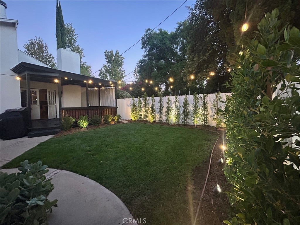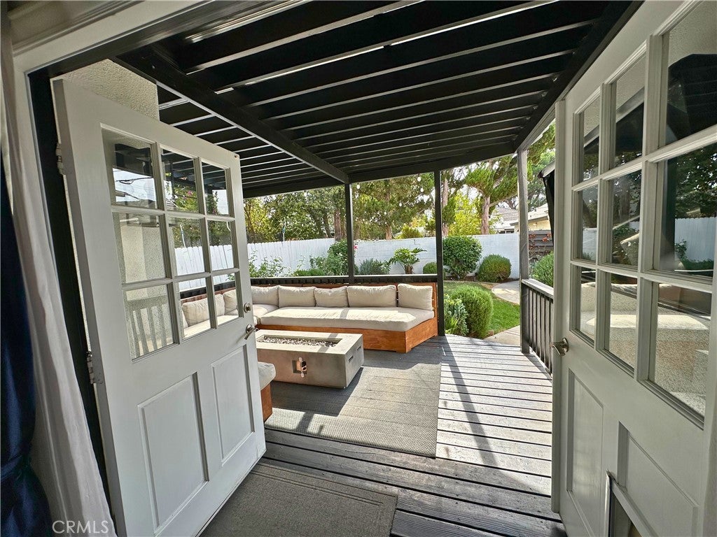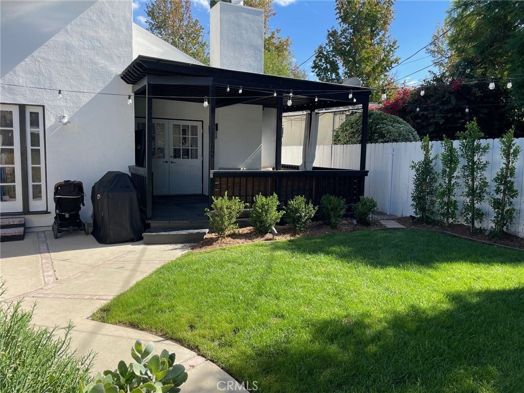 Pristine 3-bed/2-bath traditional home that has been loved & cared for. A light-filled, spacious living room with hardwood floors is open to a fully equipped gourmet kitchen with a stunning center island, stainless steel appliances, and immaculate cabinetry. The formal dining area with a custom tufted banquette, vaulted ceiling, and fireplace creates a cozy ambiance that is sure to impress family and friends. Astonishing primary suite with vaulted ceilings, a personal wood-burning fireplace, a walk-in closet, a bath with a soaking tub, and a separate shower. French doors open to a tranquil, recently re-landscaped backyard featuring a unique handmade outdoor seating area, a fire pit, a newly built covered patio, an outdoor television and entertainment area, and outdoor string lighting that can be controlled remotely via phone & Google/Amazon systems. The home features a smart thermostat, light switches in central living areas that are compatible with Google/Amazon systems, and new exterior landscape lighting in both the front and back yards, which includes remote/phone-controlled access and a timer system. Brand New electrical panels were installed in the residence and in the garage in the last year (with the ability to add solar). A new air conditioning condenser was installed in 2023. The exterior of the property has been newly painted, custom fencing has been installed, access for garbage storage and removal has been added (so your guests will not see it), and the garage has completely redone siding/stucco exterior. Complete perimeter security system with Nest Doorbell and a new irrigation system in both front and back yards, complete with mature drought-tolerant/low-maintenance landscaping lining the front parkways and back yard perimeter. Mature orange and lime trees line the side of the property for added privacy and shade. Be sure to check out the thoughtfully designed two-car garage, which features numerous built-ins, a custom workbench and countertop area, and a new cement floor that could be converted into a large ADU if the new owner wishes. A newly installed garage door has phone control and WiFi access for remote accessibility. Easy access to shops, restaurants, studios, hiking trails, freeways & the Westside. All rooms of the house have custom blackout window coverings for privacy and temperature control, along with a custom dog door for pet access.