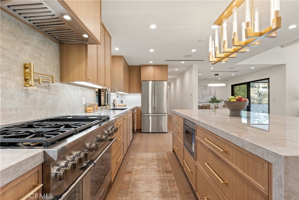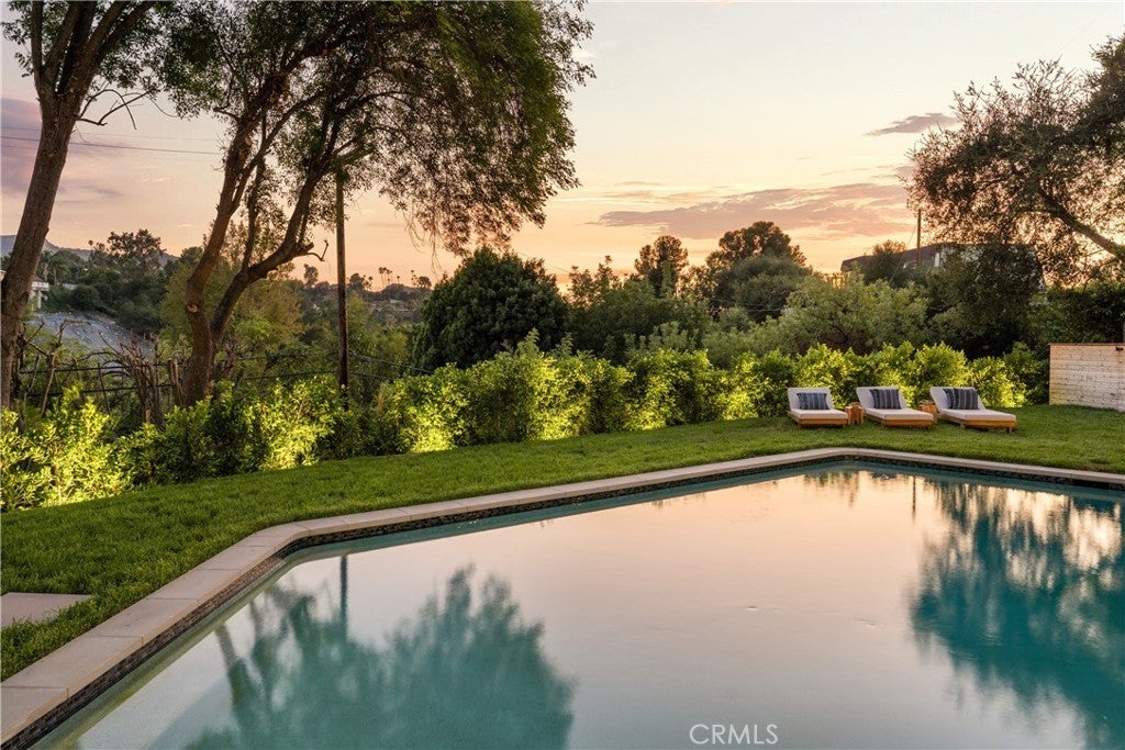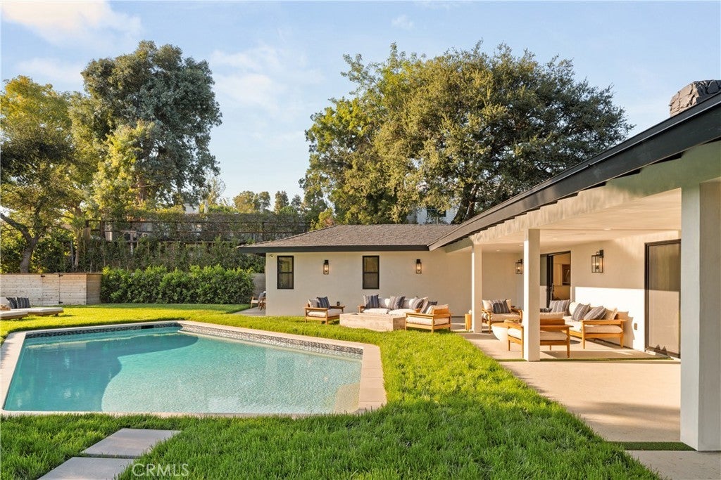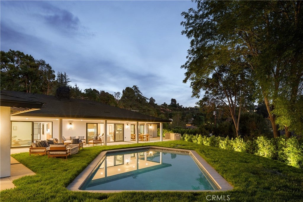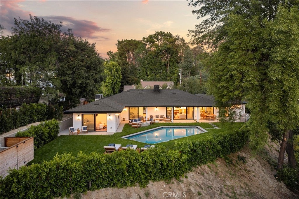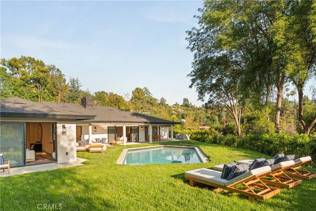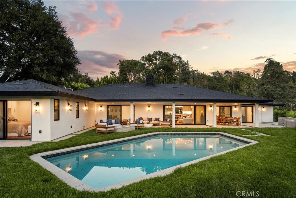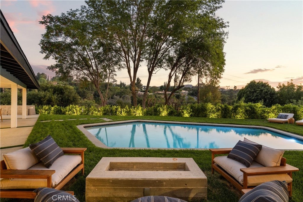 Experience modern luxury living in the hills of Encino! Nestled on an expansive lot with sweeping panoramic views, this move-in ready single-story home has been completely reimagined for today’s lifestyle. Beyond the double-door entry, you're welcomed into a spacious open-concept floor plan that seamlessly blends timeless elegance with contemporary design. The highlight of the home is the designer chef’s kitchen, equipped with top-of-the-line smart appliances and an oversized waterfall island, this space is a culinary enthusiast's dream. The adjoining family room, which boasts a gorgeous stone fireplace, and formal dining room each have a sliding glass door that leads out to the covered patio, perfect for indoor-outdoor living. Step outside to your private backyard retreat, where a sparkling pool, lush grassy lawn and of course those stunning vistas await. There's also a cozy fire pit, built-in BBQ, outdoor shower and outside access to one of the bathrooms. Five generously sized bedrooms are thoughtfully spread throughout the home, including a sophisticated primary suite that features a custom walk-in closet and chic bathroom, complete with a soaking tub, rainfall shower and double vanity. Additional highlights include a formal living room, dedicated laundry room, a security system, built-in speakers (indoors and outdoors) and a two-car garage. Located South of the Boulevard in the heart of Encino, this exceptional property lies within the top-rated Lanai School District and is only moments away from everything the Valley and Westside have to offer.