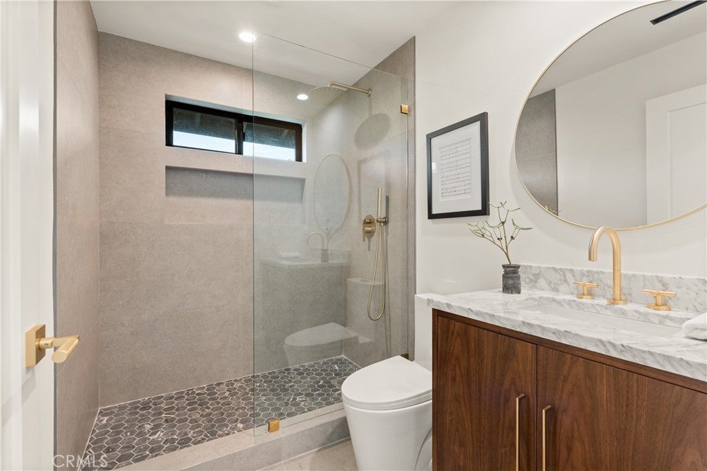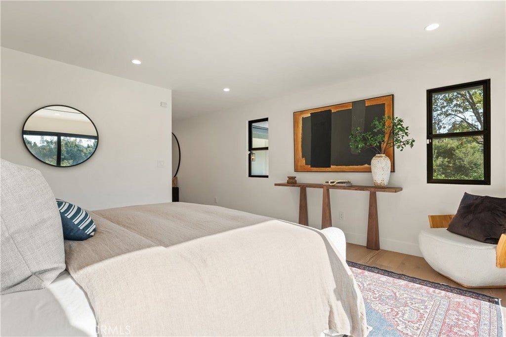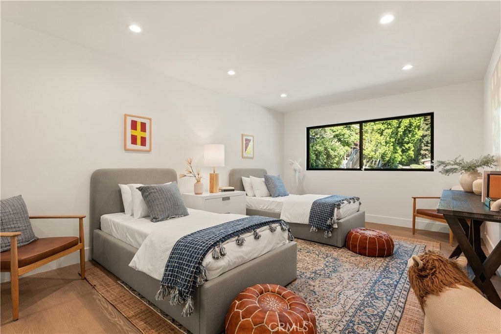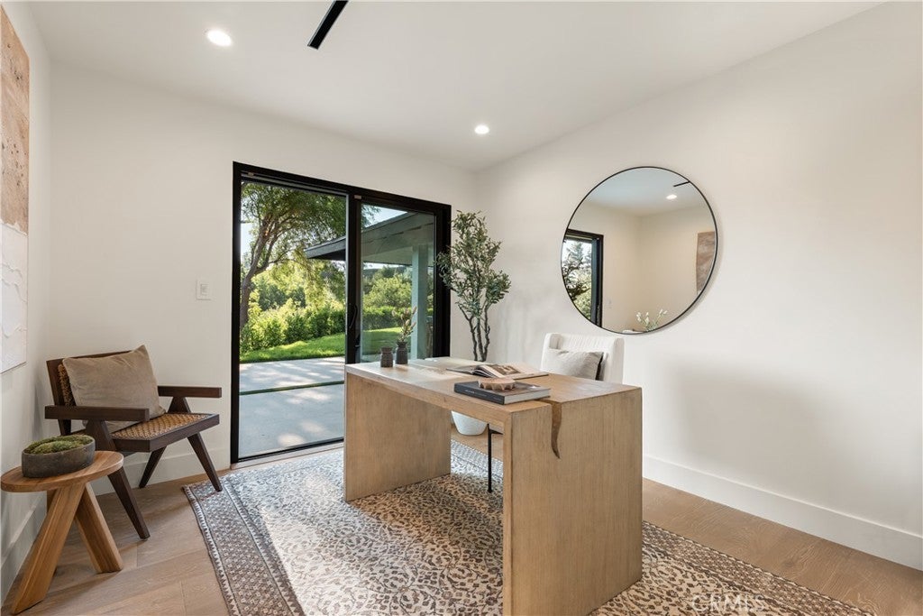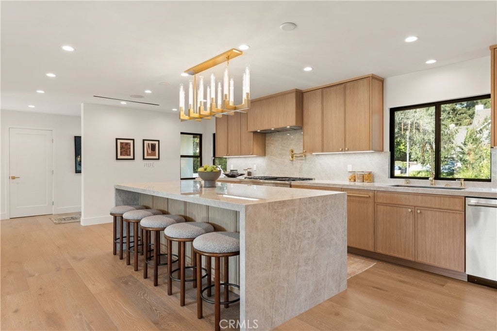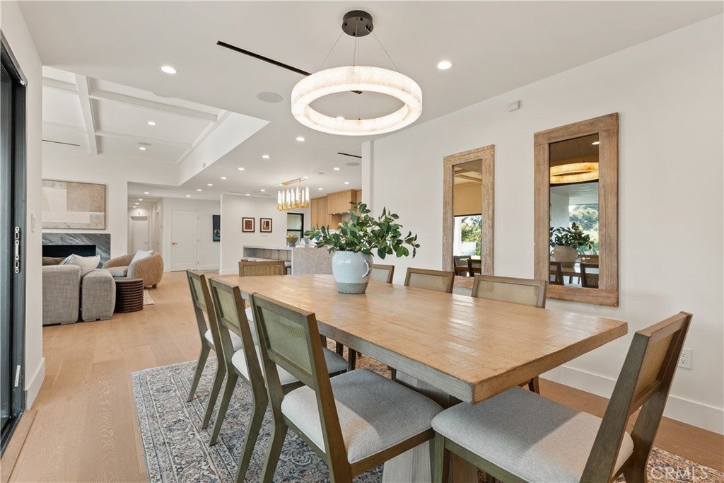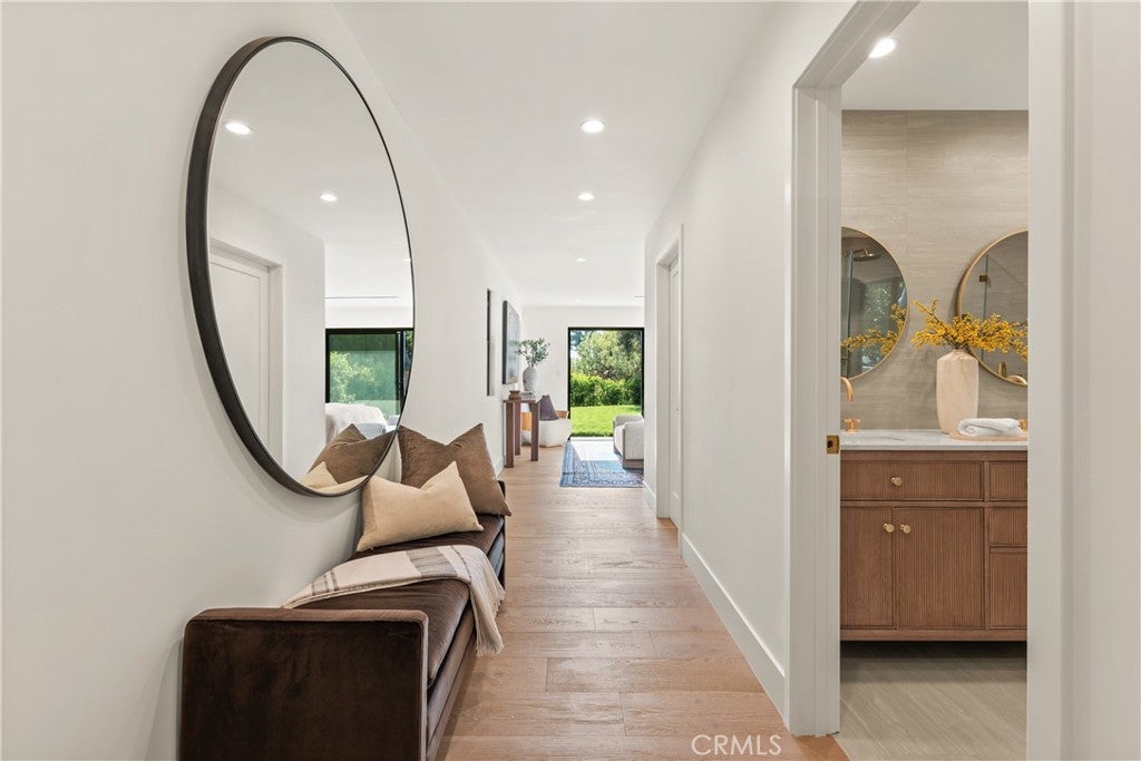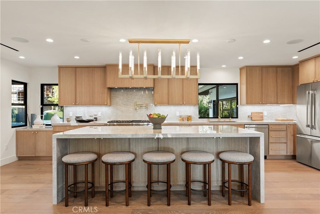 Experience modern luxury living in the hills of Encino! Nestled on an expansive lot with sweeping panoramic views, this move-in ready single-story home has been completely reimagined for today’s lifestyle. Beyond the double-door entry, you're welcomed into a spacious open-concept floor plan that seamlessly blends timeless elegance with contemporary design. The highlight of the home is the designer chef’s kitchen, equipped with top-of-the-line smart appliances and an oversized waterfall island, this space is a culinary enthusiast's dream. The adjoining family room, which boasts a gorgeous stone fireplace, and formal dining room each have a sliding glass door that leads out to the covered patio, perfect for indoor-outdoor living. Step outside to your private backyard retreat, where a sparkling pool, lush grassy lawn and of course those stunning vistas await. There's also a cozy fire pit, built-in BBQ, outdoor shower and outside access to one of the bathrooms. Five generously sized bedrooms are thoughtfully spread throughout the home, including a sophisticated primary suite that features a custom walk-in closet and chic bathroom, complete with a soaking tub, rainfall shower and double vanity. Additional highlights include a formal living room, dedicated laundry room, a security system, built-in speakers (indoors and outdoors) and a two-car garage. Located South of the Boulevard in the heart of Encino, this exceptional property lies within the top-rated Lanai School District and is only moments away from everything the Valley and Westside have to offer.