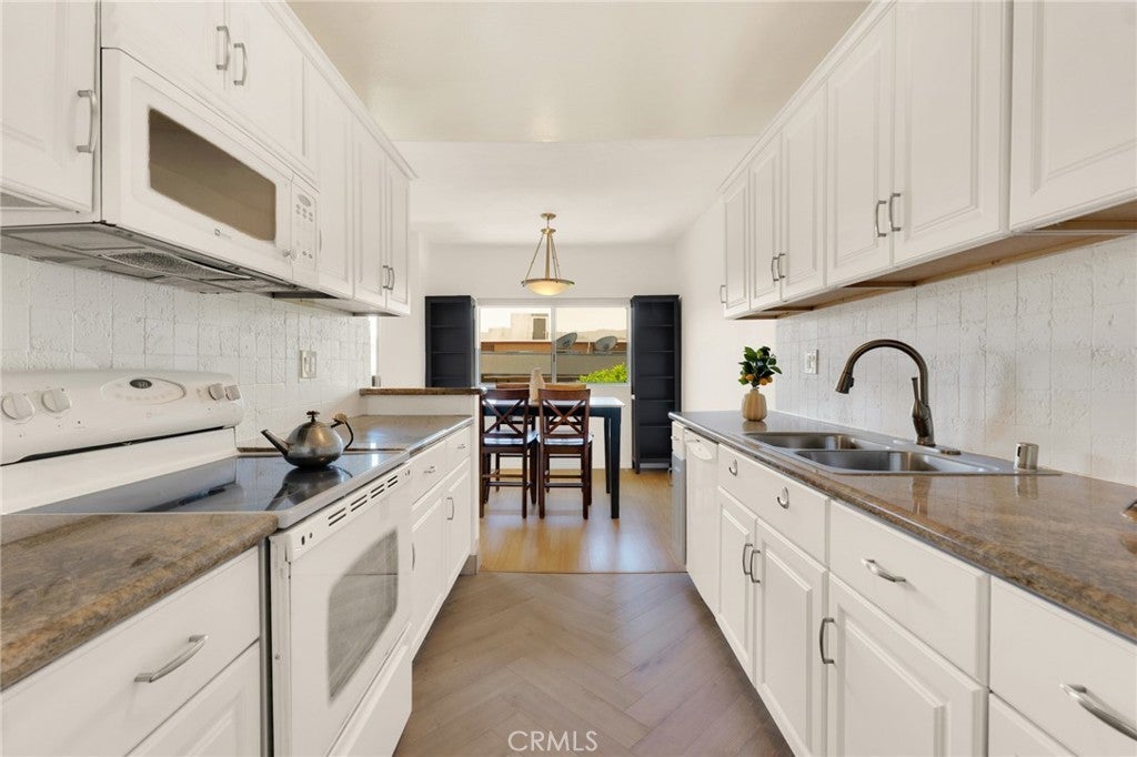 Welcome to this beautifully maintained and light-filled 1-bedroom, 1-bathroom condo located in the heart of Encino. Offering 731 sq ft of comfortable living space, this charming unit features an open and inviting floor plan with laminate flooring, central AC, and ample storage throughout. The spacious living room opens to a private balcony overlooking the peaceful, landscaped courtyard—perfect for relaxing or enjoying your morning coffee. The galley-style kitchen is equipped with granite countertops, clean white cabinetry and well-kept appliances. The generously sized bedroom offers a deep walk-in closet, while the full bathroom is clean and well-appointed. This well- maintained community offers resort-style amenities including a sparkling pool, spa, gym, and secure entry. One covered parking spot and extra storage are included. Don’t miss this rare opportunity to own a stylish top-floor corner unit in one of Encino’s most desirable neighborhoods!