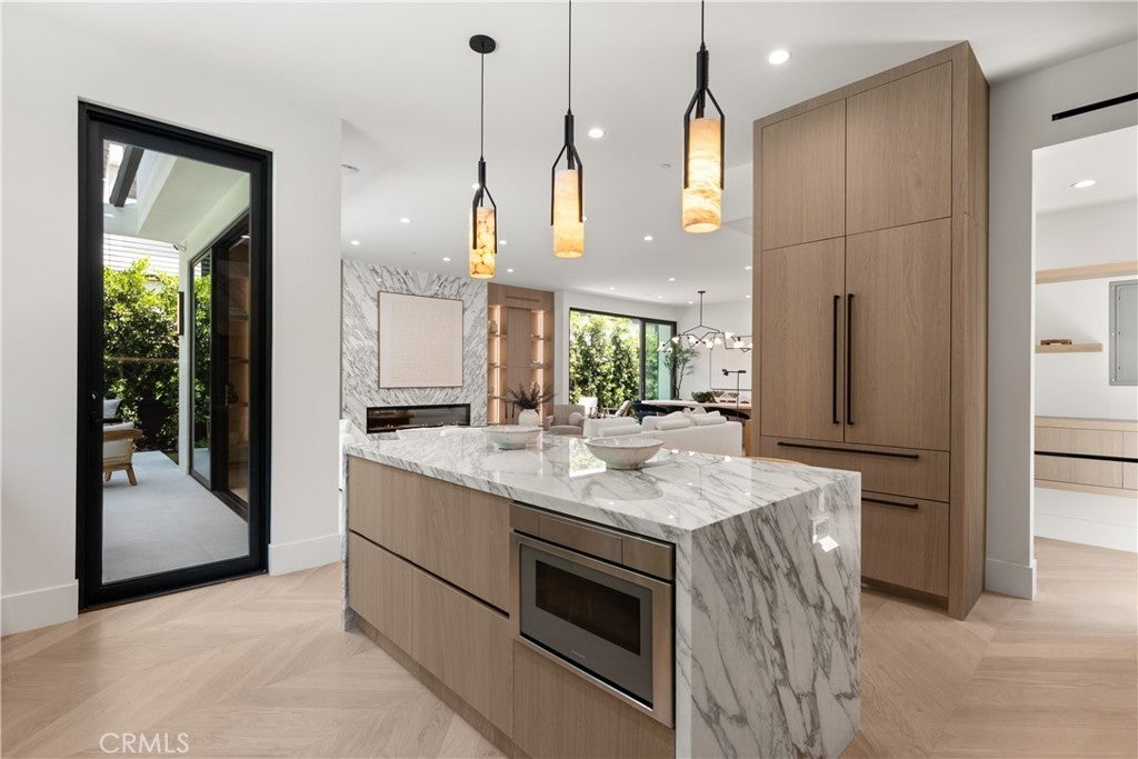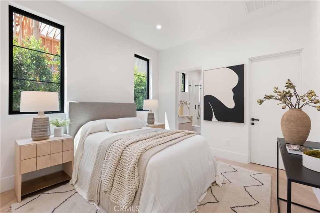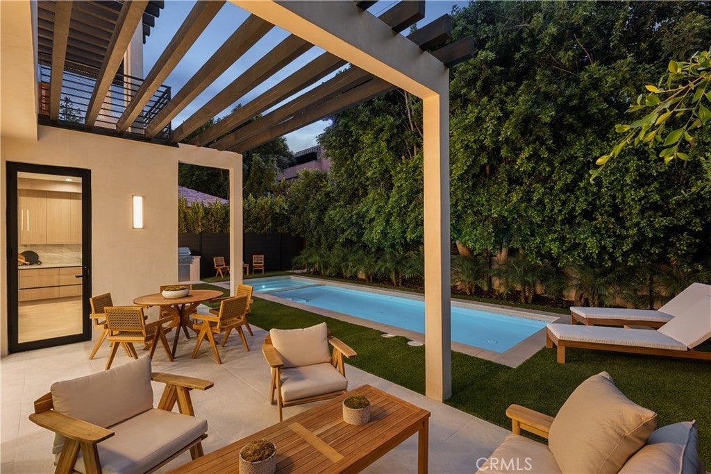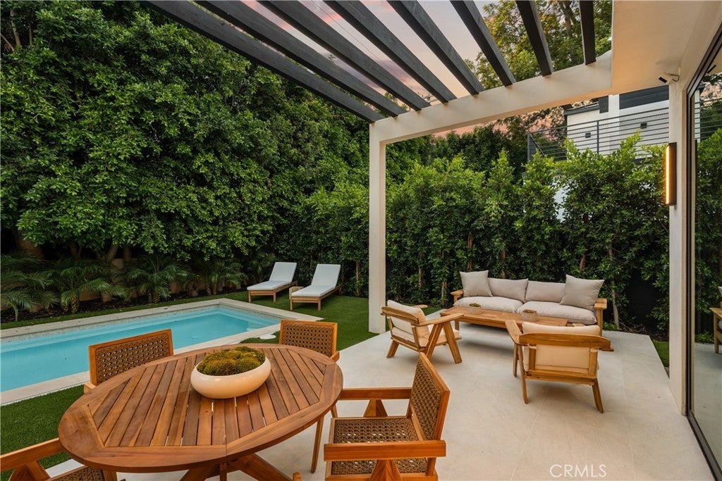 A bold statement in modern luxury living, this brand-new construction home is situated on a quiet tree-lined street in prime Studio City. Showcasing thoughtful design throughout, the bright and airy open-concept floor plan is defined by lofty ceilings and a spacious, flowing layout. At the heart of the home lies every culinary enthusiast’s dream, a designer kitchen equipped with a La Cornue range as its centerpiece, high-end Thermador appliances, a stunning waterfall island and walk-in pantry. The adjacent living room and formal dining area are highlighted by a dramatic fireplace framed by custom built-ins and two oversized sliding glass doors that seamlessly extend your living space outside – ideal for entertaining. Step out to your tranquil backyard retreat and enjoy the best of outdoor living with a sparkling pool/spa, built-in BBQ and plenty of patio space for sun-soaked lounging or al-fresco dining. Upstairs, there are three generously sized ensuite bedrooms and a dedicated laundry room. The primary suite features a private balcony, custom walk-in closet and spa-inspired bathroom, complete with a soaking tub, steam shower and double vanity. Boasting its own private entrance, the attached guest suite offers a living room with a kitchenette and ensuite bedroom with a walk-in closet – perfect for a home office/gym/studio, guests or multigenerational living. Additional highlights include a wine cellar, smart home features (Ring security system, Nest thermostat, Lutron lights), a gated front courtyard and two-car garage. This property is ideally located within the top-rated Carpenter School District and just moments away from Ventura Boulevard’s vibrant shopping and dining scene, the Studio City Farmers Market and so much more.