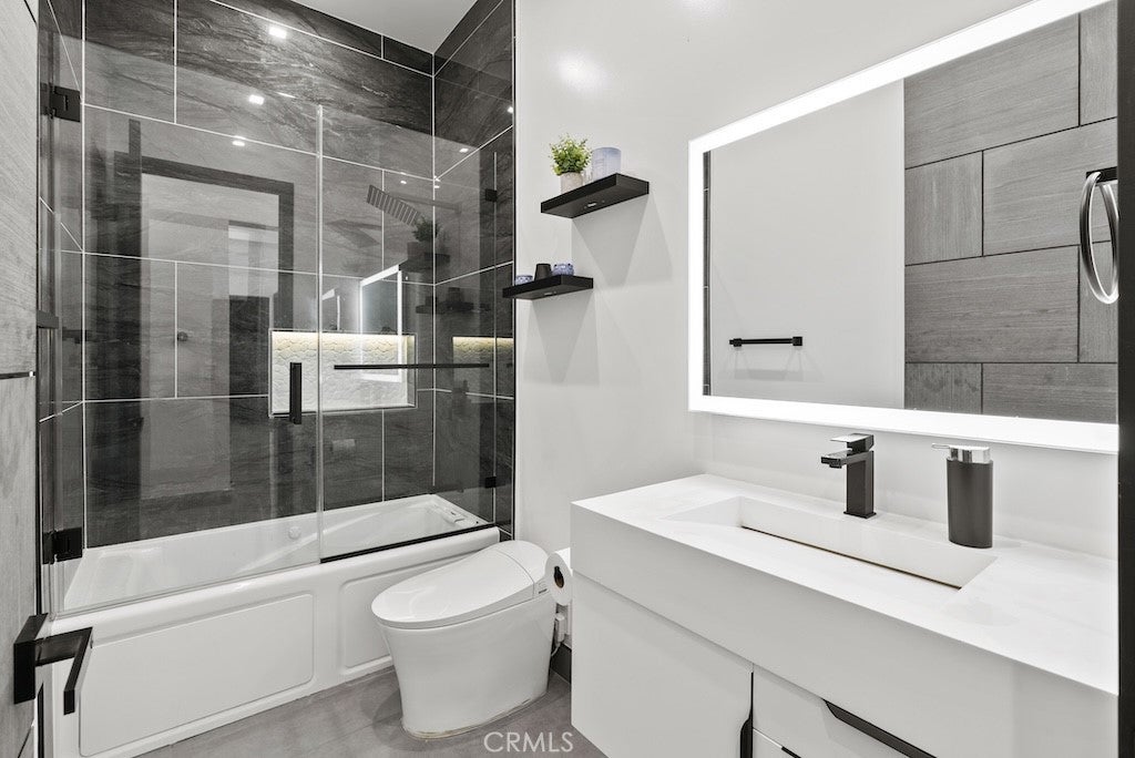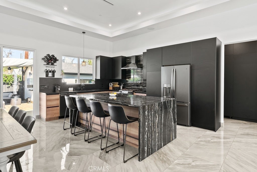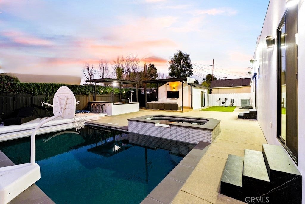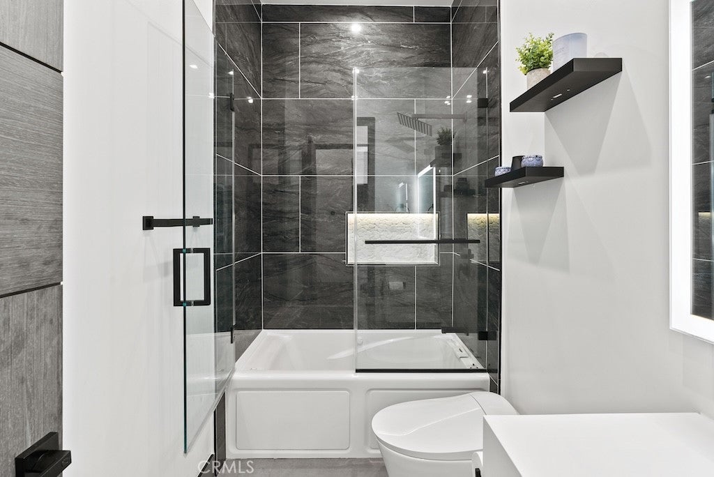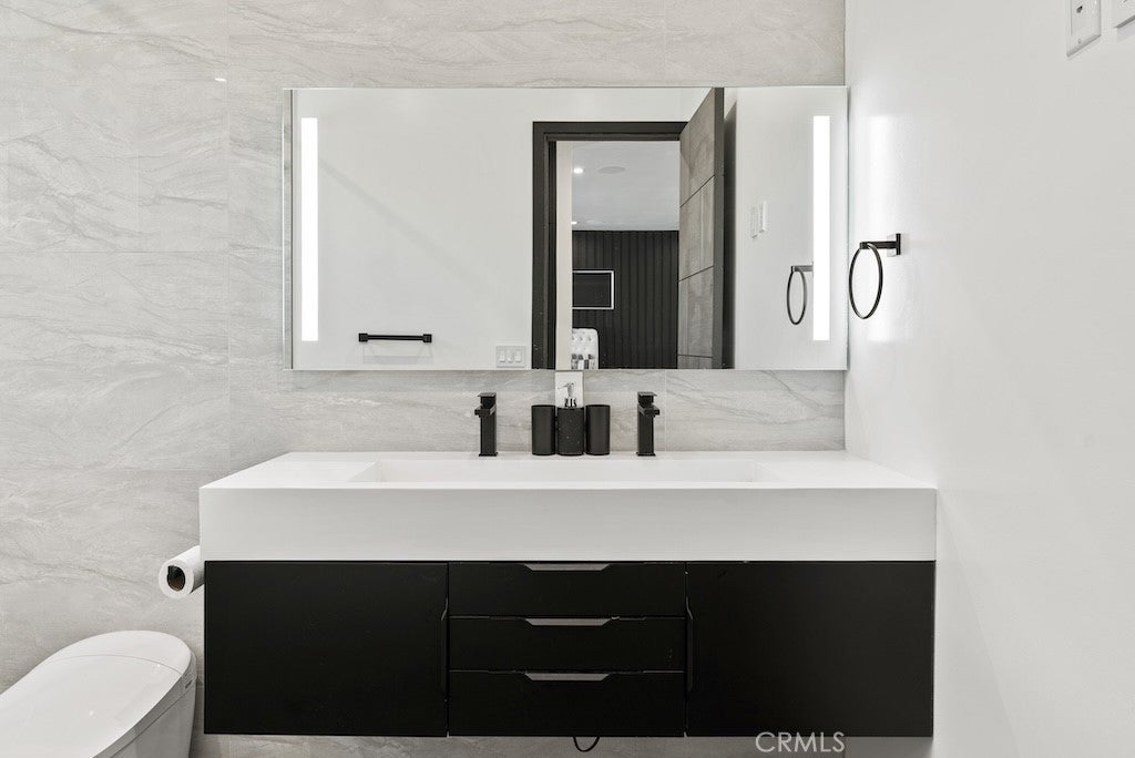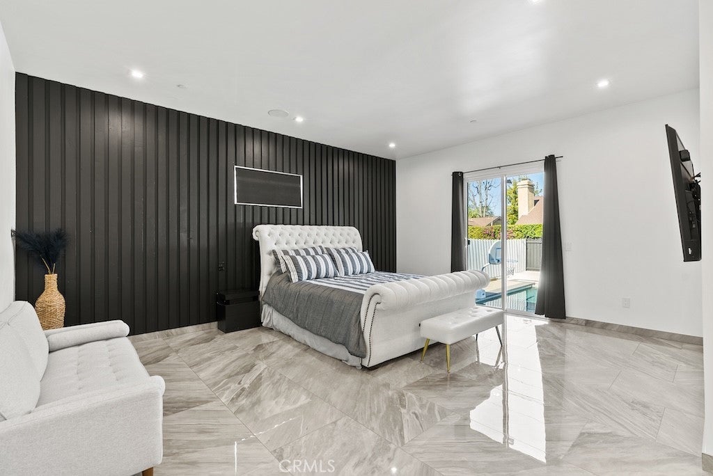 Welcome to this unique one-story modern masterpiece in the highly sought-after Walnut Acres Adjacent neighborhood of Woodland Hills. Fully rebuilt and reimagined, this expansive 3,300 sq. ft. estate offers 5 bedrooms and 4 bathrooms, including a detached guest house with 1 bedroom and 1 bathroom.From the moment you arrive, the electrical double-gated entry and circular driveway set the tone for privacy and elegance, providing parking for multiple vehicles, an RV, or even a boat. Step inside to a light-filled open floor plan with 14' soaring ceilings, bespoke Wisconsin hardwood accent walls, custom built-ins blended with soft LED lighting, and a striking modern fireplace that together create a warm yet sophisticated atmosphere. The chef’s kitchen is designed for both beauty and function, complete with soft-close custom cabinetry, quartz countertops, a large island with breakfast bar, double sink, pot filler, high-end appliances, and plenty of workspace. The dining area, overlooking the backyard, creates the perfect setting for intimate dinners or lively gatherings. The primary suite is a serene retreat featuring vaulted ceilings, a massive walk-in closet, and a spa-inspired en-suite with dual faucets and a walk-in shower. Two spacious bedrooms share a modern Jack & Jill bath, while a junior suite offers its own walk-in closet & full bath. The detached guest house is a true bonus with its own fireplace, walk-in closet, and full bath, ideal for guests, a home office, gym, or rental income. Step outside to your private backyard paradise, a resort-style escape with a sparkling saltwater pool & spa, raised tanning deck, and covered patio with ceiling fan for year-round comfort. Host unforgettable gatherings with the outdoor kitchen, complete with double BBQ grill and built-in bar, then unwind by the sleek fire pit or dine al fresco in the covered lounge, all surrounded by lush, mature landscaping. Additional features include luxury tile flooring throughout, custom window blinds, and smart home system that controls interior and exterior sound, security cameras, intercom, central A/C with individual climate control for each bedroom to maximize comfort and energy efficiency. Perfectly located just one block north of Ventura Blvd and minutes from the 101 freeway, this home offers easy access to The Calabasas Commons, premier shopping, fine dining, and award-winning schools. This is your opportunity to own one of Woodland Hills’ finest modern estates.