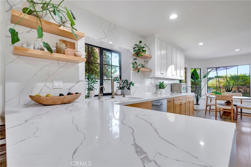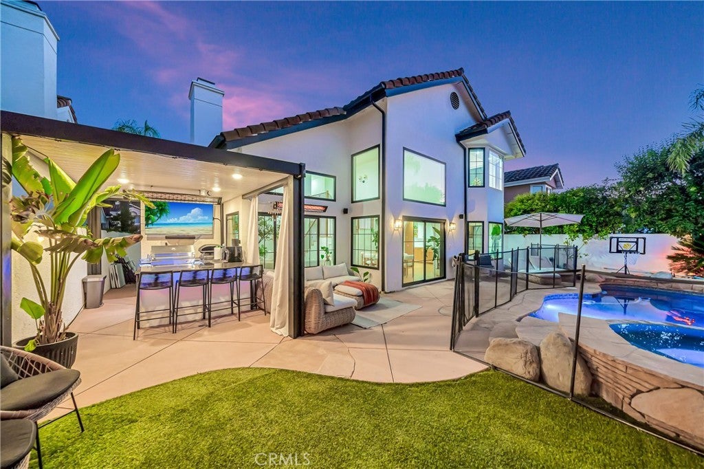 Calabasas Model Home w/ A Pool & A View! Location! Location! Location! This jaw dropping beauty is sure to impress the pickiest of guests! Located on a cul-de-sac in the exclusive, gated community of Calabasas Hills, this home is renovated to utter perfection. Surrounded by lush green landscaping, this home shines light, bright with a Tulum style vacation vibe like no other! The quality finishes include solid wood, wide plank floors, fresh paint inside and out, LED lighting, brand new windows and doors throughout, a brand new chef's kitchen with earth tone cabinetry, floating shelves, crisp white quartz countertops, new European appliances, a fantastic breakfast room overlooking the views, spacious family room adjacent to the quartz counter top breakfast bar, oversized formal living room / dining room. Also find a gorgeous new iron railing subtly complimenting the wood floors. Find 2 fireplace with custom Venetian Plaster coating. Featuring a total of 6 Bedrooms, there is space for a game room, gym, office +++. Upstairs find a resort style primary suite with 2 walk-in closets, designated sitting area and Calabasas Views. There are 2 walk-in closets and a tastefully remodeled en-suite. Outside, enjoy an amazing use of space... Sparking pool, spa, greenery, hotel style outdoor kitchen, lounge areas, bistro lights, and of course, more Calabasas Views... This one has a brand new HVAC, a designated laundry room and is located walking distance to Bay Laurel elementary school, the community park, Calabasas Farmer's Market, The Commons, The Calabasas Lake & More!!!