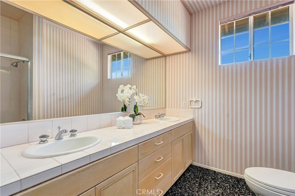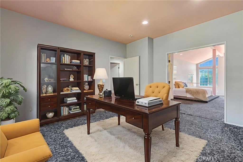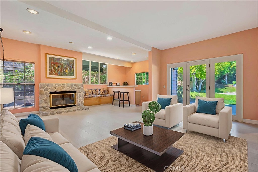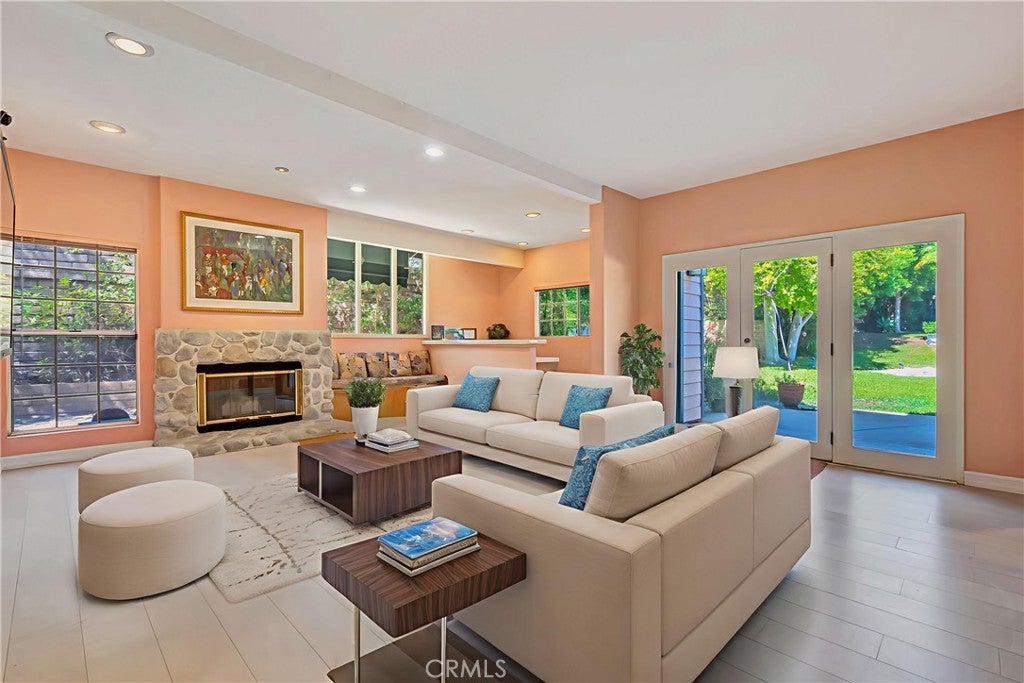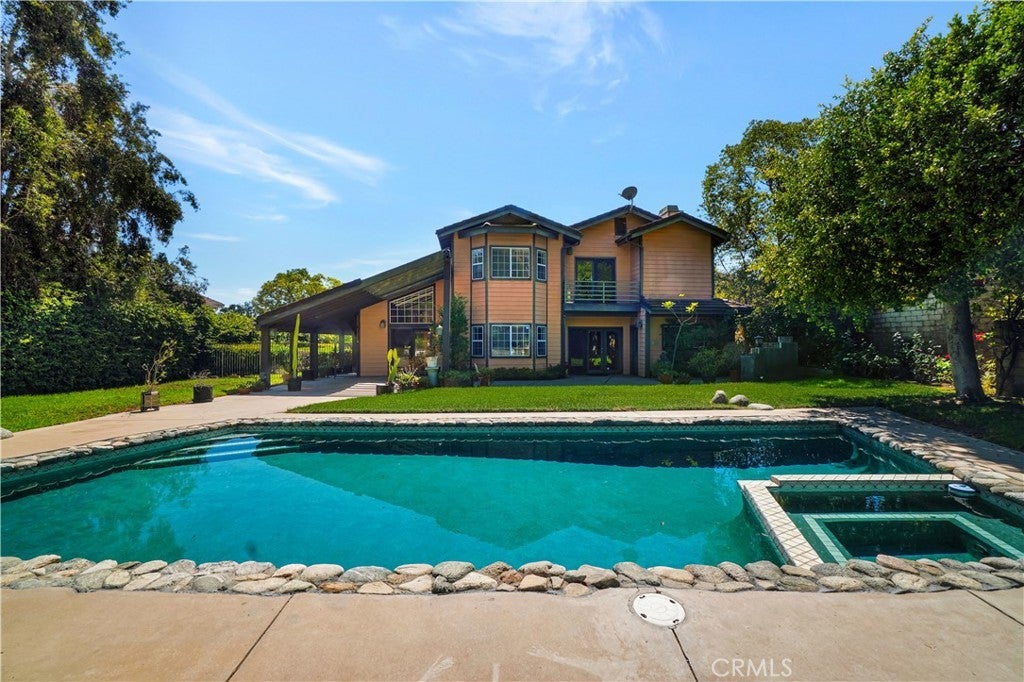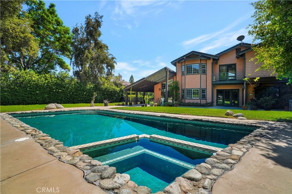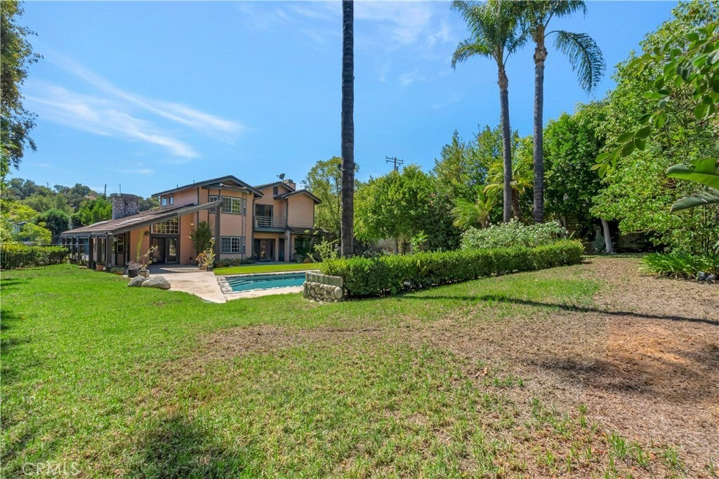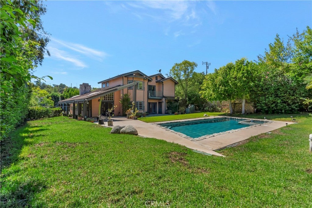 Adjacent to Bell Canyon, this light-filled, custom-built executive pool home in a private, gated enclave of only 15 residences. Situated on nearly a half acre flat lot, this 4,122 sq. ft. 4-bedroom, 3.5-bath offers a sprawling, park-like backyard with sparkling pool, mountain views, and endless space to entertain. The open floor plan showcases grand, light-filled living spaces, including a formal living room with fireplace, a large dining room with yard views, and a welcoming family room with built-in wet bar, refrigerator, and fireplace. The chef’s kitchen boasts a center island, breakfast nook, and abundant storage. Inside laundry room and 2 car attached garage, property has an extra large driveway and large closets with built ins. Zoned for horses. A convenient downstairs bedroom suite with private entrance is perfect for guests, a home office, or a private study. Upstairs, the luxurious primary suite offers a step-down sitting area, dual-sided fireplace, large walk-in closet. The spa-like en-suite bath features a deep soaking tub, separate shower, and double vanities. Generous secondary bedrooms complete the home. Permitted attached 504 sq. ft. bonus room, which could be easily used as 5th bedroom, gym or ADU potential as well. Outdoors is your personal oasis ample space for kids to play, gatherings with friends, and lazy afternoons by the pool. Located minutes from dining, shopping, parks, and with easy Valley Circle access to freeways, all within the highly sought-after El Camino High School district. This is a must-see for anyone seeking privacy, elegance, and the ultimate Southern California lifestyle. Bring your vision and customize this is a rare find.