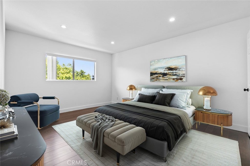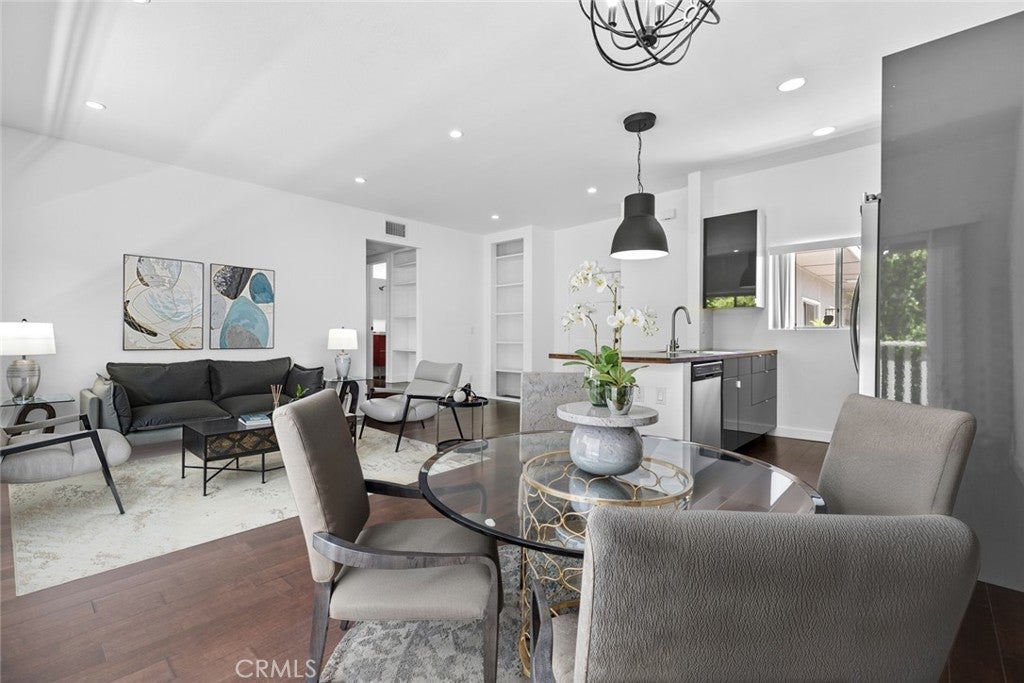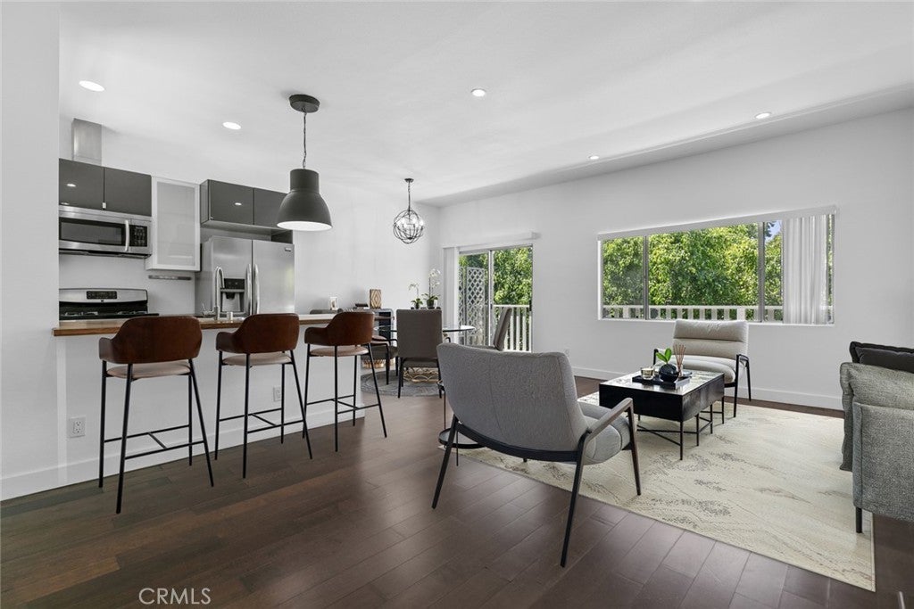 ****AMAZING OPPORTUNITY ****in the heart of Sherman Oaks! This 2 bedroom & 2 bathroom condo boasts an open concept living room with engineered hardwood floors from the livingroom to the bedrooms and 4k recessed lighting throughout. Plenty of natural light within the unit. The updated kitchen features butcher block countertops/bar, modern cabinets and stainless steel sink and appliances (refrigerator,stove,dishwasher). Stackable washer and dryer tucked discreetly inside a hallway closet for added convenience. Master bedroom has a large closet & full updated bathroom. Second bedroom has ample space and full size updated bathroom across the hallway. The unit is located at the rear of the building and is super quiet and peaceful. Central A/C and heater operated by NEST. Two subterranean parking spaces. Community amenities include, fitness center, additional laundry room, billiard table and recreation room. Minutes from the shops,restaraunts & bars on Ventura Blvd. 2 minute walk to Whole Foods & Hugo's Tacos, a neighborhood favorite. take advantage before the rates drop in 2026 . Interest rates drop, home values rise