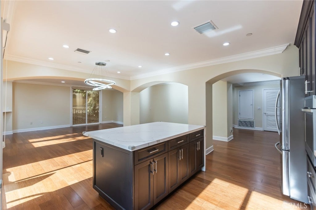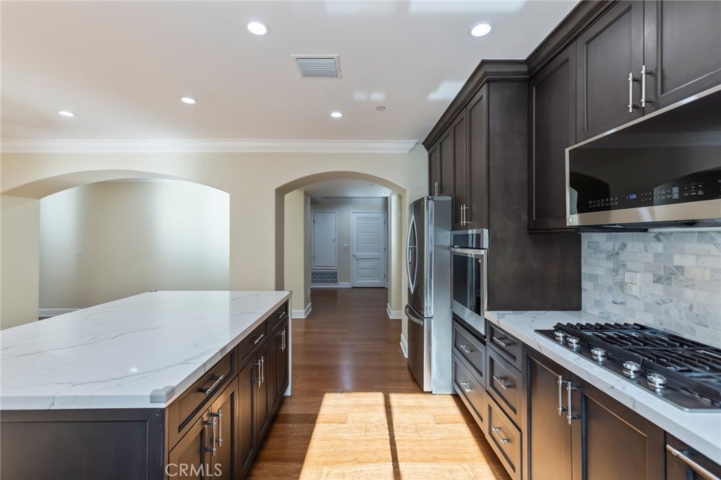 Luxurious 2,320square foot one-level 3 bedroom and 3 bathroom condo built in 2009 in Valley Village. The central location is close to the Orange Line and Metro for easy access downtown and to the west end of the valley. Just a few blocks from Jon’s and Gelson’s market and the new NoHo West mixed-use center with Trader Joe’s, Regal movie theater, tons of restaurants and shopping. Enter this one level condo through its spacious foyer. The generous floorplan includes a cook’s kitchen with large center island, stainless steel appliances, dining area and family room with corner fireplace and three balconies. The large primary bedroom has a walk-in closet and private bathroom that features a bathtub with jets and separate shower enclosure. Front bedroom has a private bathroom and large closet. Cozy living room is the perfect space for entertaining or curling up with your favorite book. Two tandem assigned parking spaces.