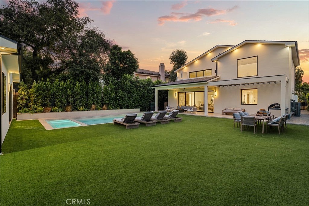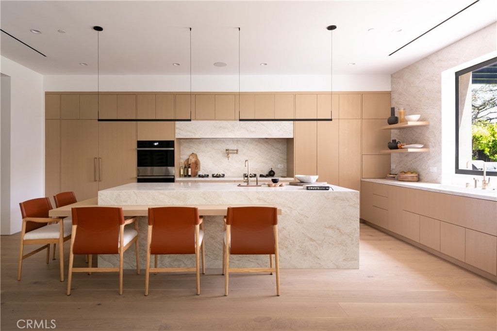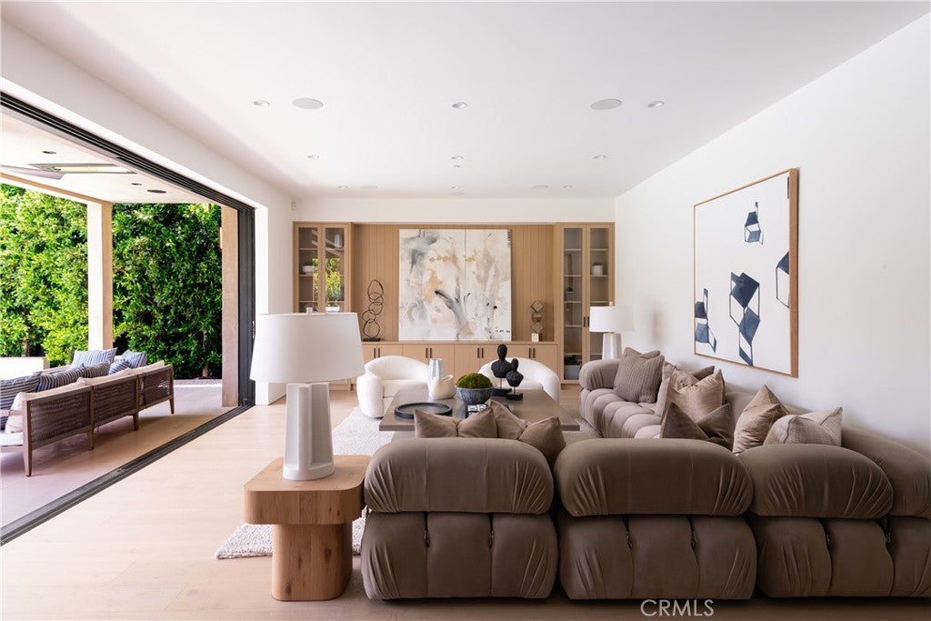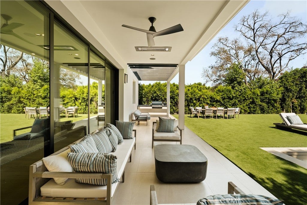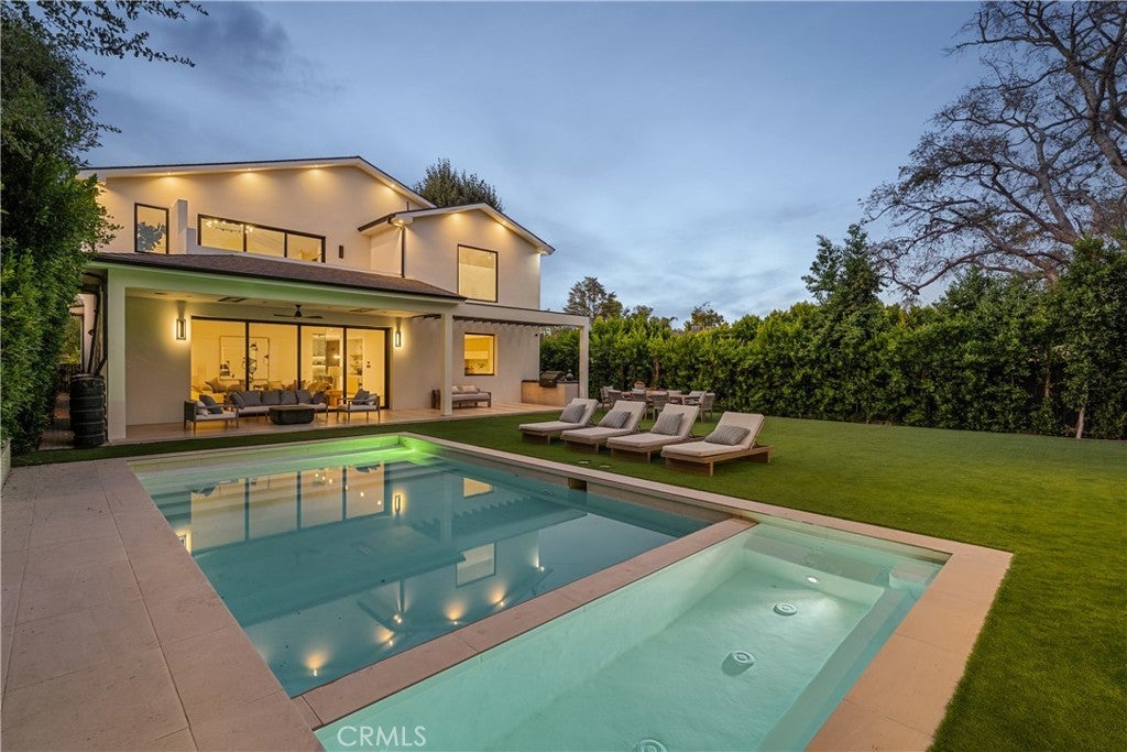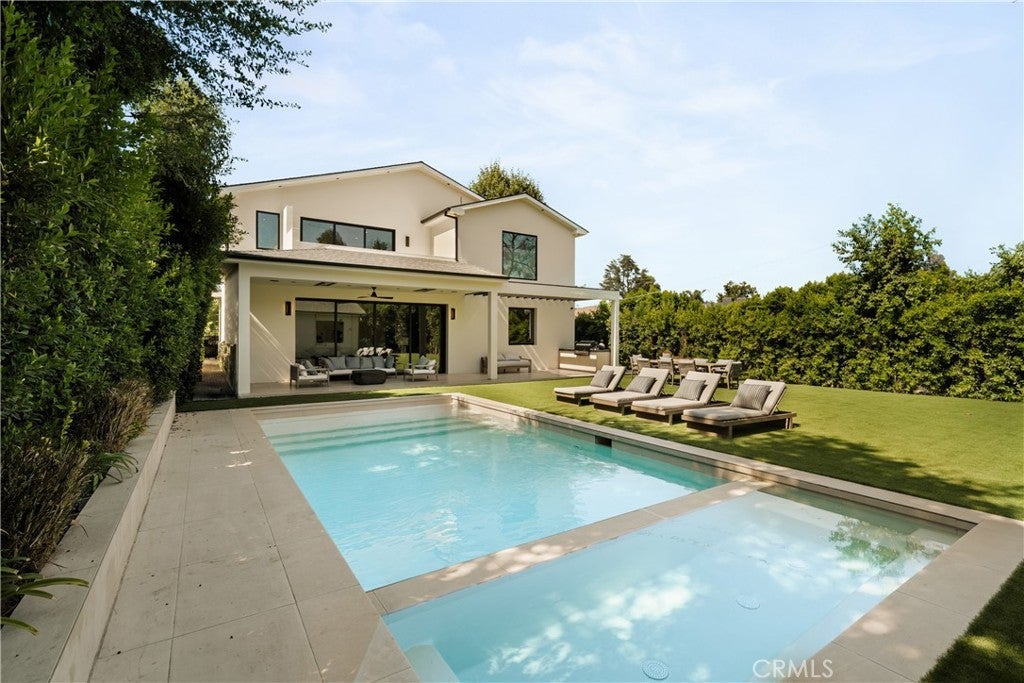 Best Value for a New Construction in Encino. Presenting a newly constructed masterpiece nestled in the highly sought-after Encino neighborhood, this luxurious gated residence exemplifies modern elegance and unparalleled craftsmanship. Spanning 6,500 square feet on an 11,321 square foot lot, the home features 6 bedrooms and 6.5 bathrooms, all adorned with white oak wood flooring throughout. Step inside to discover an expansive open floor plan accentuated by soaring 10-foot ceilings, creating an airy and inviting atmosphere. The home is bathed in natural light, enhancing its bright and welcoming ambiance. The living room features a striking fireplace with a plaster finish and seamlessly opens to the dining room, which includes a sophisticated wet bar and wine display, perfect for entertaining. The gourmet kitchen is a chef’s dream, boasting Taj Mahal quartzite countertops, custom white oak cabinetry, state-of-the-art appliances, an integrated stovetop, and Gessi plumbing fixtures. Adjacent, the family room offers large sliding pocket doors that blend indoor and outdoor living spaces effortlessly. Entertainment is effortless with a dedicated movie theater, ideal for hosting private screenings and movie nights. The primary suite is a true retreat, featuring a cozy fireplace, an expansive walk-in closet, and a private balcony. The spa-like primary bath includes dual vanities, dual water closets, and a large shower with an integrated tub, creating a serene sanctuary for relaxation. The outdoor space is an entertainer's paradise, featuring a sparkling pool and spa, a covered patio for year-round enjoyment, an open trellis, and a built-in barbeque area. The property also includes a well-appointed ADU with 1 bedroom and 1 bathroom, ideal for guests or additional living space. Additionally, this home offers a Control4 smart system, security cameras, and a surround sound system. This home epitomizes sophisticated living, combining modern amenities with timeless design. Conveniently located within the prestigious Encino Charter School District and in close proximity to Encino’s best shops, dining, and major freeways, this remarkable residence offers an unparalleled living experience.