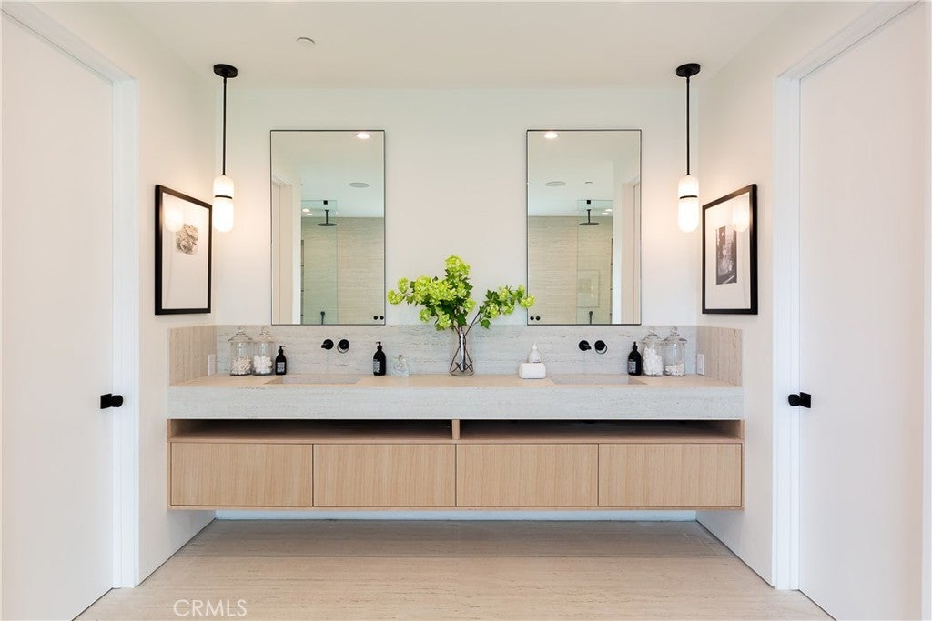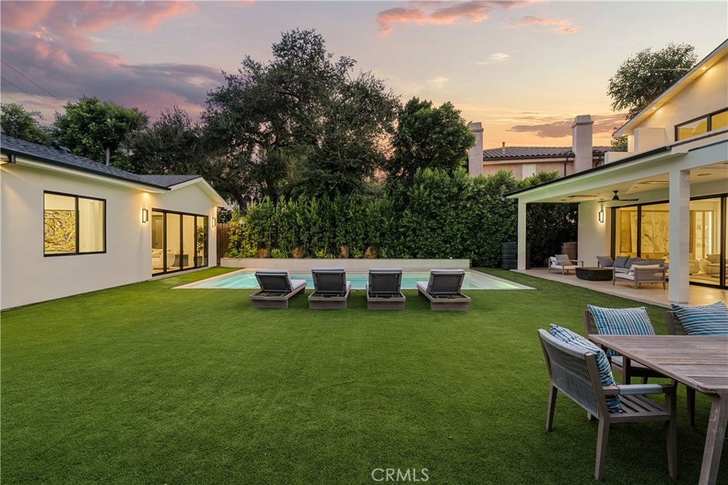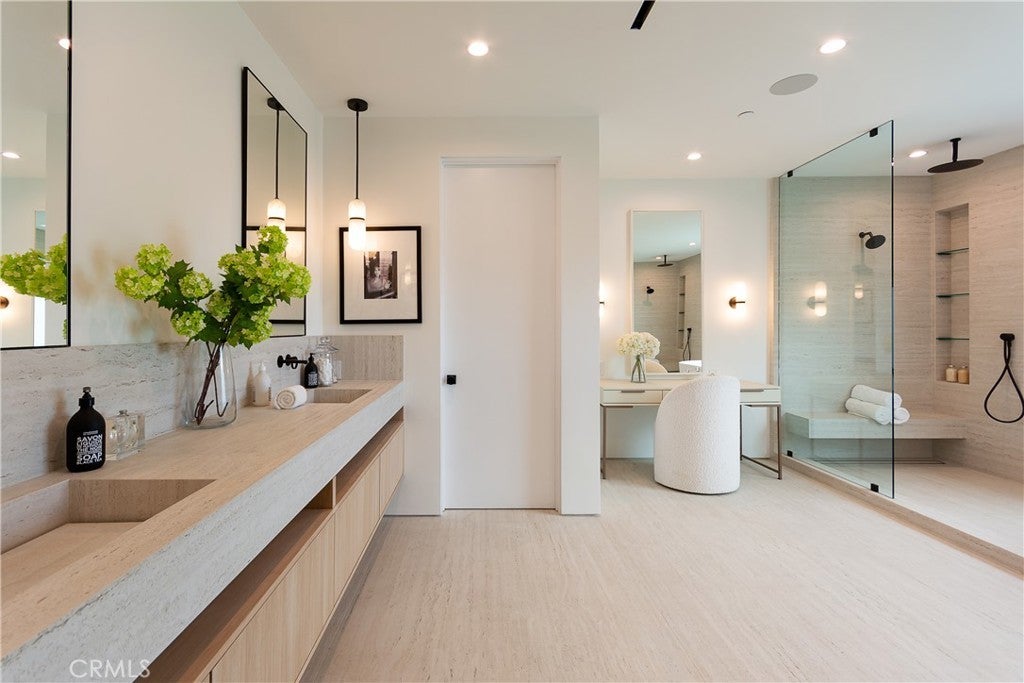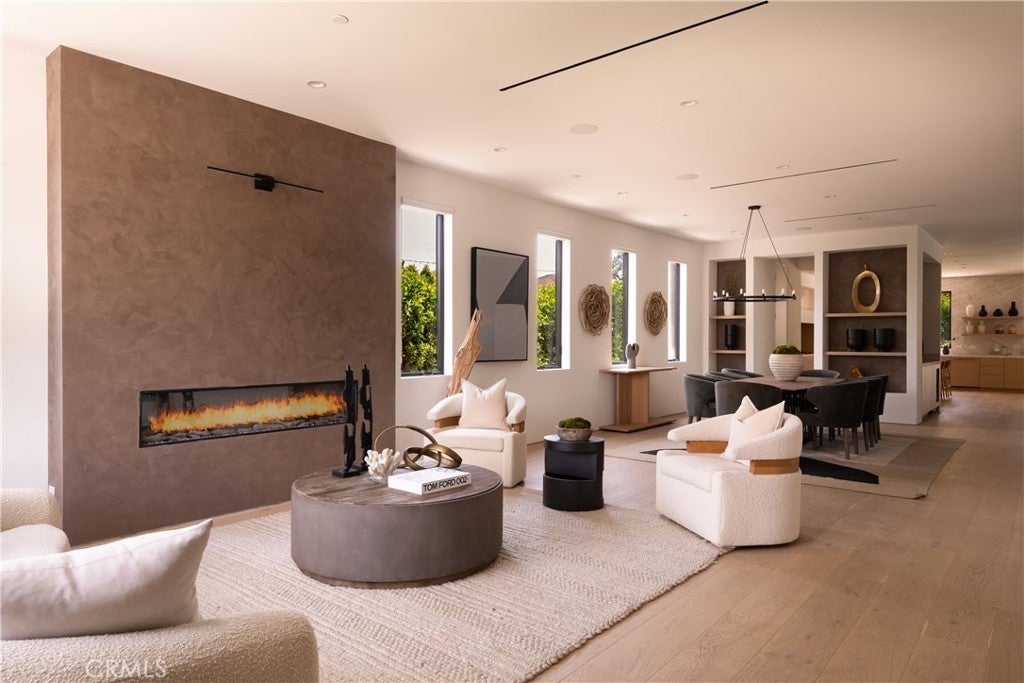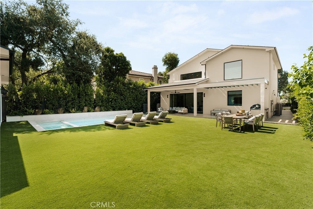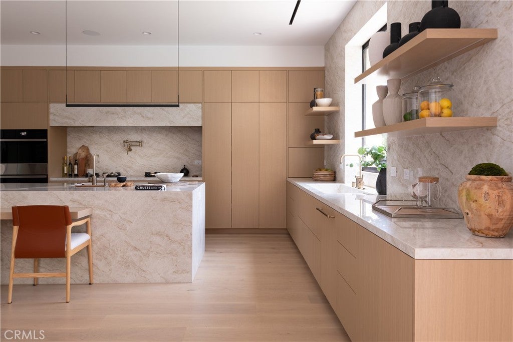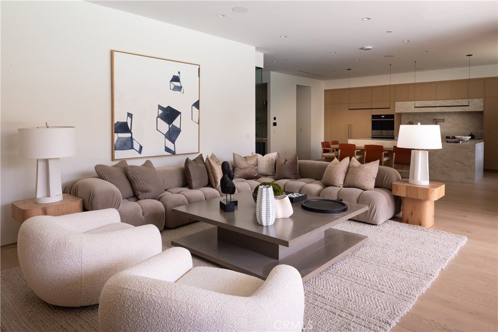Best Value for a New Construction in Encino. Presenting a newly constructed masterpiece nestled in the highly sought-after Encino neighborhood, this luxurious gated residence exemplifies modern elegance and unparalleled craftsmanship. Spanning 6,500 square feet on an 11,321 square foot lot, the home features 6 bedrooms and 6.5 bathrooms, all adorned with white oak wood flooring throughout. Step inside to discover an expansive open floor plan accentuated by soaring 10-foot ceilings, creating an airy and inviting atmosphere. The home is bathed in natural light, enhancing its bright and welcoming ambiance. The living room features a striking fireplace with a plaster finish and seamlessly opens to the dining room, which includes a sophisticated wet bar and wine display, perfect for entertaining. The gourmet kitchen is a chef’s dream, boasting Taj Mahal quartzite countertops, custom white oak cabinetry, state-of-the-art appliances, an integrated stovetop, and Gessi plumbing fixtures. Adjacent, the family room offers large sliding pocket doors that blend indoor and outdoor living spaces effortlessly. Entertainment is effortless with a dedicated movie theater, ideal for hosting private screenings and movie nights. The primary suite is a true retreat, featuring a cozy fireplace, an expansive walk-in closet, and a private balcony. The spa-like primary bath includes dual vanities, dual water closets, and a large shower with an integrated tub, creating a serene sanctuary for relaxation. The outdoor space is an entertainer's paradise, featuring a sparkling pool and spa, a covered patio for year-round enjoyment, an open trellis, and a built-in barbeque area. The property also includes a well-appointed ADU with 1 bedroom and 1 bathroom, ideal for guests or additional living space. Additionally, this home offers a Control4 smart system, security cameras, and a surround sound system. This home epitomizes sophisticated living, combining modern amenities with timeless design. Conveniently located within the prestigious Encino Charter School District and in close proximity to Encino’s best shops, dining, and major freeways, this remarkable residence offers an unparalleled living experience.