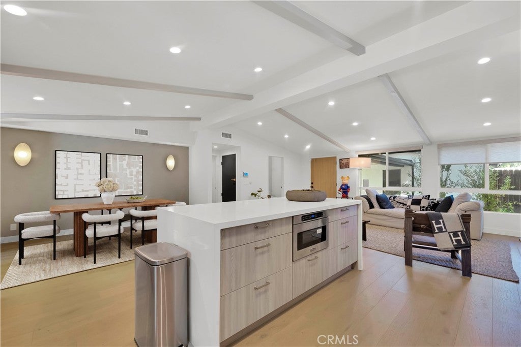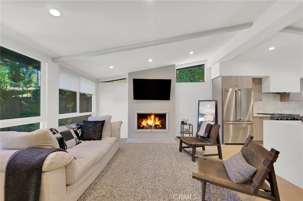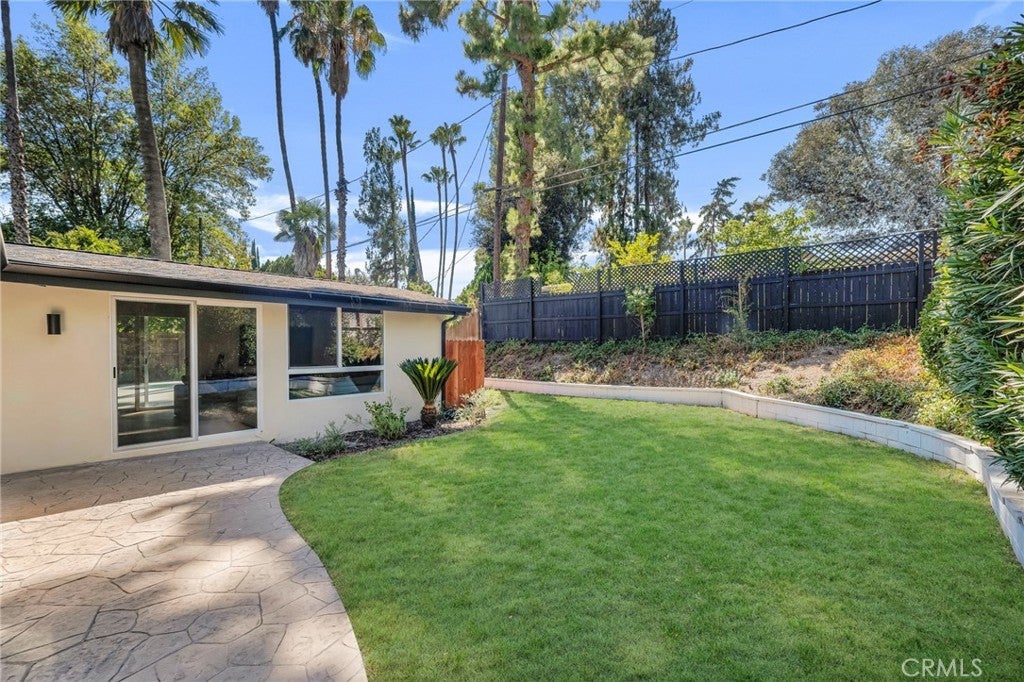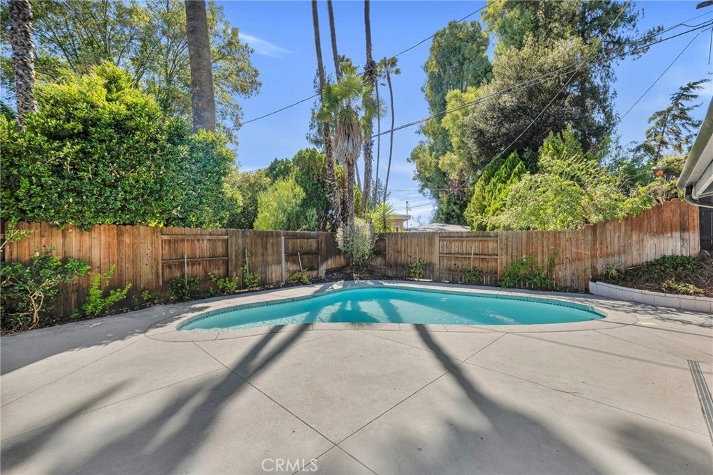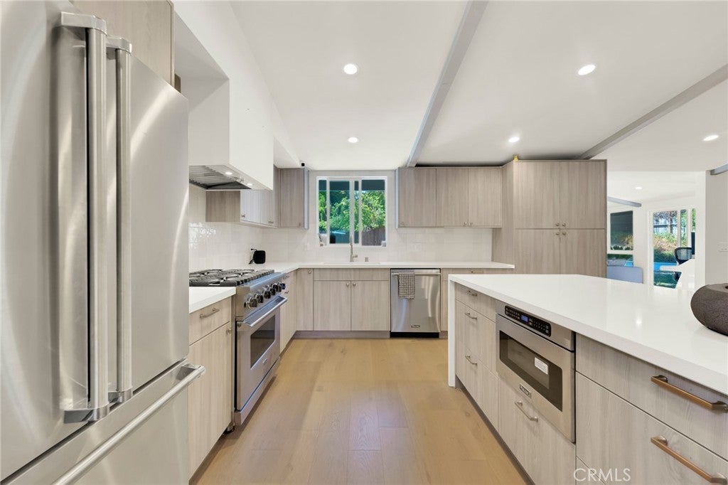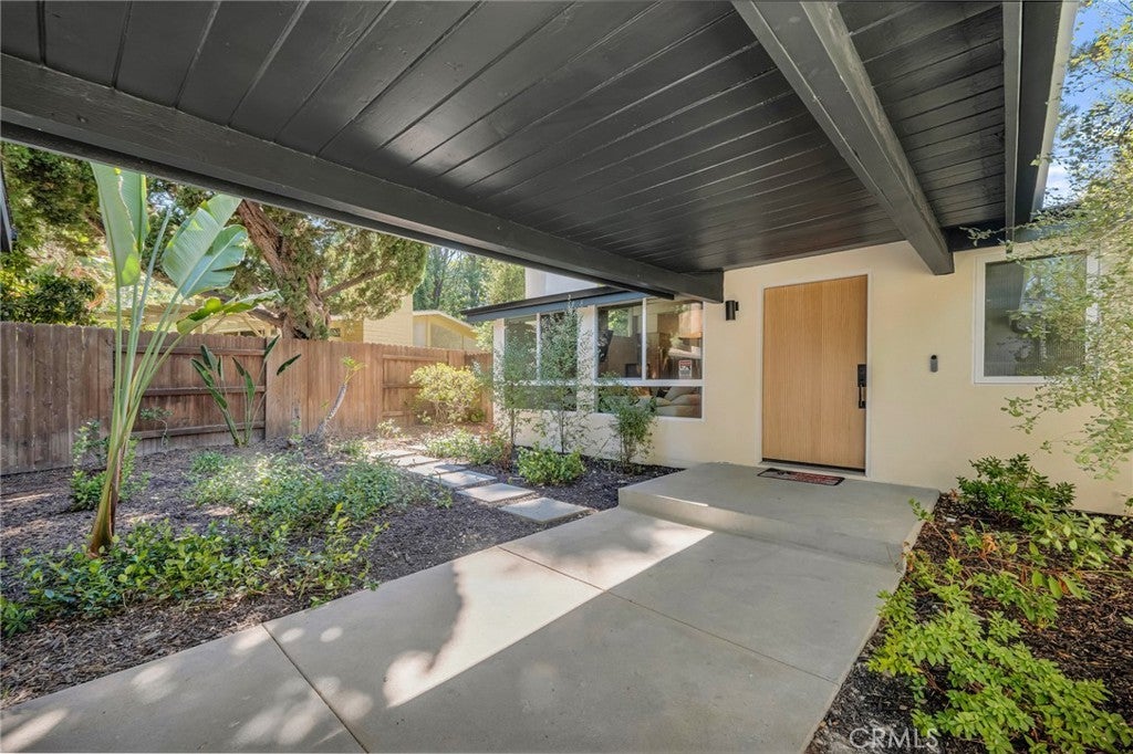 Experience the perfect blend of style and comfort in this beautifully reimagined mid-century modern single-story pool home, ideally situated south of the boulevard in a beautiful sought-after Woodland Hills neighborhood. Originally renovated about three years ago (2023) with high-end finishes and thoughtful design, the home has been lovingly maintained to preserve its like-new feel. Step through a lush, private courtyard into a light-filled living space with soaring beam ceilings and courtyard views. The open-concept great room features European engineered wood floors, an updated fireplace, and a dining area ideal for gatherings. The chef’s kitchen boasts Viking stainless steel appliances, a generous center island with seating, custom flat-panel cabinetry, quartz counters, and a full-height tile backsplash. Designed for seamless indoor/outdoor living, this 3-bedroom, 2.5-bath home offers a family room that flows to the pool, firepit, and patio, plus a separate grassy yard. The primary suite includes a custom walk-in closet, spa-like en-suite bath, and direct patio access with serene views. A secondary bedroom also opens to the garden. Extensive upgrades from the renovation done in 2023 include designer fixtures, new windows, roof, HVAC, tankless water heater, updated plumbing/electrical, refreshed pool with new coping, plaster, tile, LED lighting, and more. Close to Ventura Blvd’s dining and shopping, The Village, Westfield Topanga, Calabasas Commons, award-winning schools, beaches, and the 101 Freeway—this home offers a private retreat with unbeatable convenience.