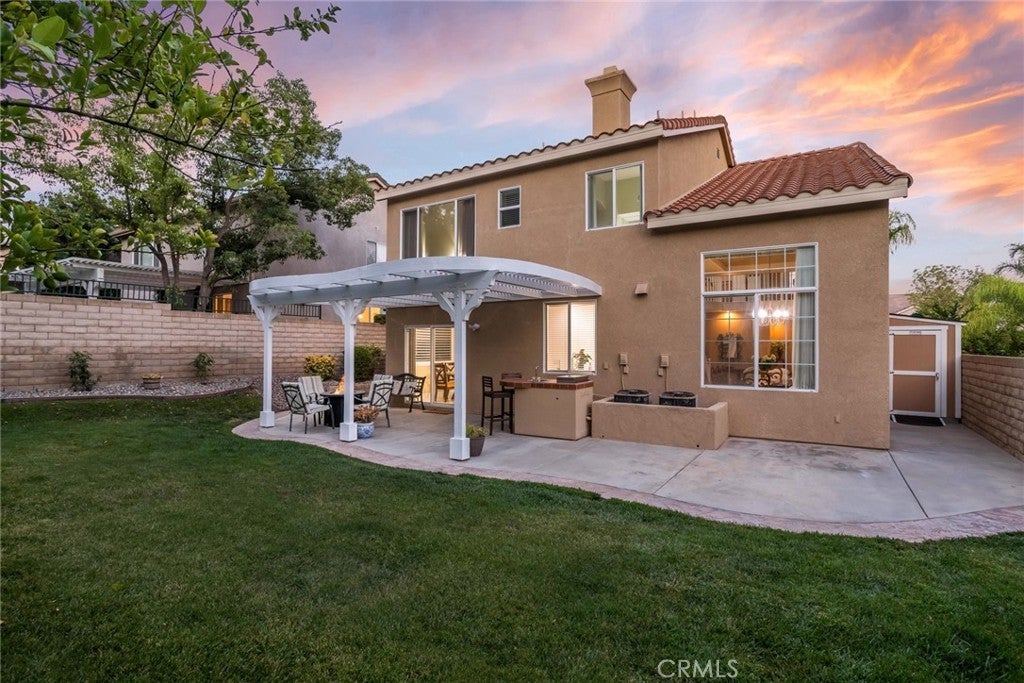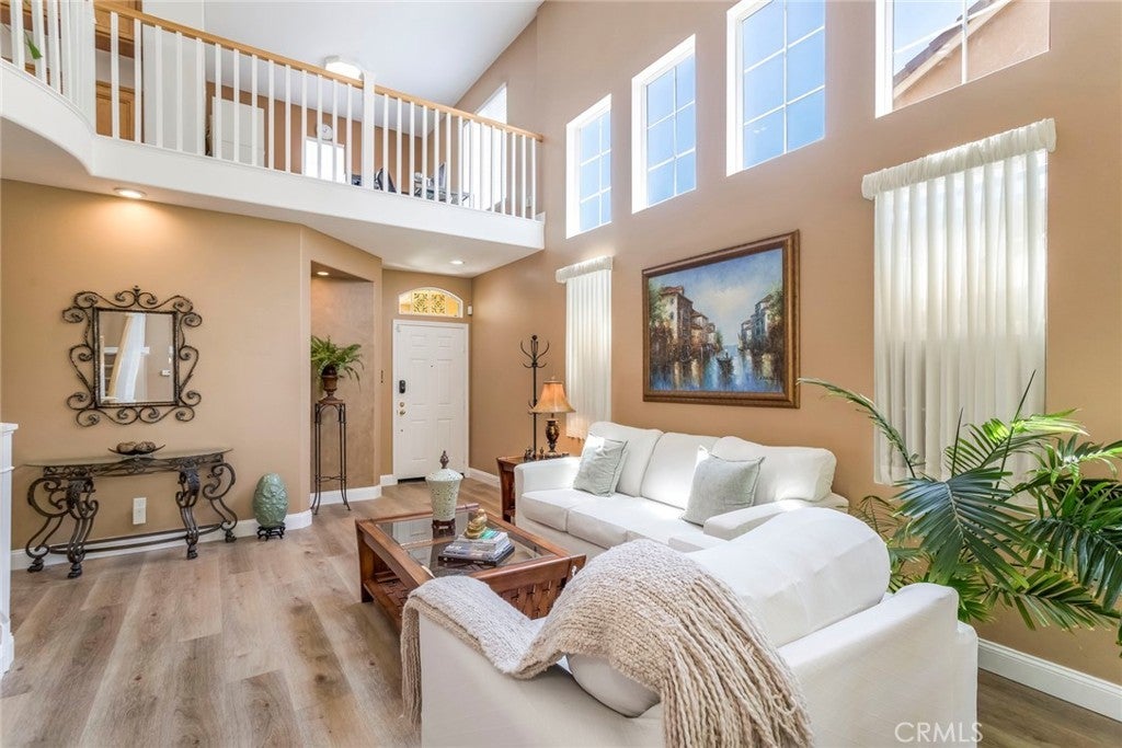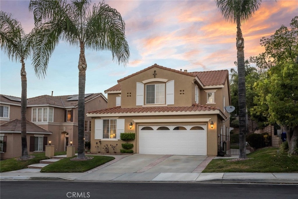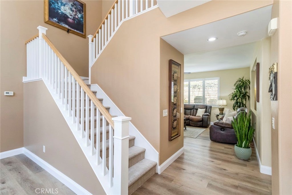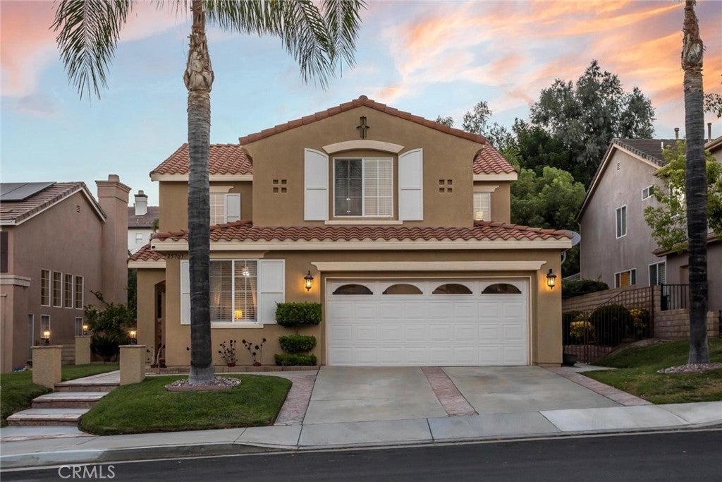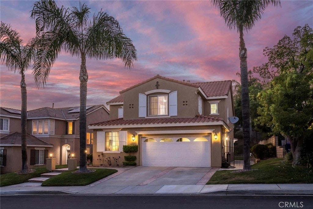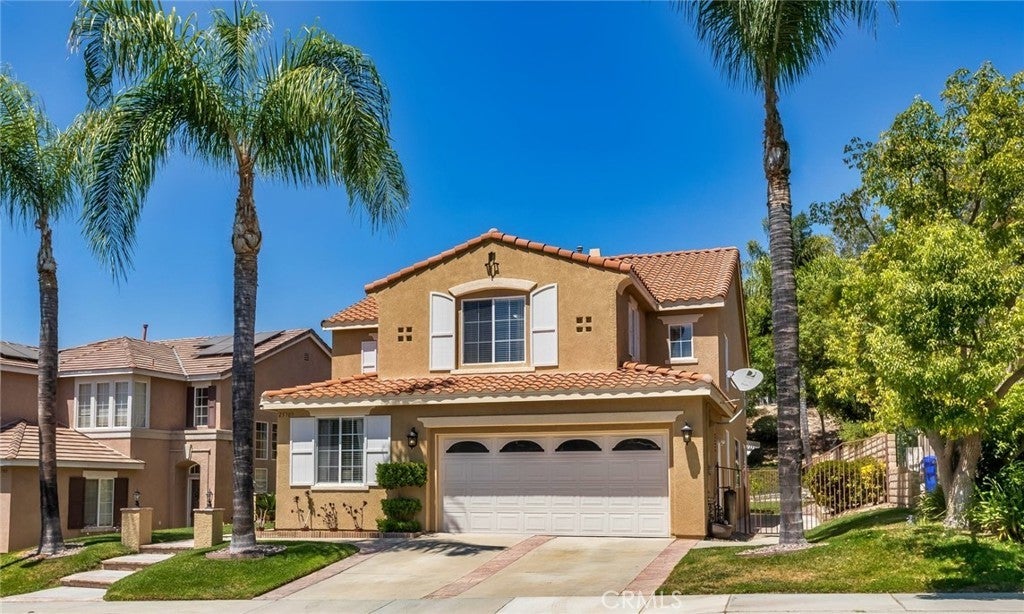 Welcome to this stunning Executive Home, ideally located in the highly sought-after upper Stevenson Ranch neighborhood on a picturesque street that radiates pride of ownership. From the moment you arrive, you will immediately notice the picture-perfect curb appeal adorned with meticulously manicured landscaping and featuring beautiful mature palms. Spanning nearly 3,000 square feet, this home boasts four bedrooms (one down,) den/bonus room, three baths, formal living and dining areas, family room, loft, spacious laundry room with sink, and upgrades throughout. As you walk in you will notice the soaring cathedral ceilings, beautiful LVP wide plank flooring in Canyon Oak, inviting paint selections, newer carpeting upstairs, and several windows flooding the space with natural light. The home's chef will love the updated kitchen including a wealth of cabinetry, stainless appliances, stylish quartz counters with seamless backsplash, spacious center island, and a convenient breakfast nook. The dining room is highlighted by a gorgeous chandelier, tray ceiling and views of the backyard. Entertain with ease in the large family room with a cozy fireplace and easy access to your entertainer's backyard. Upstairs, you will find the luxurious primary suite that is generous in size, includes a large walk in closet and enjoys views of the surrounding landscape. Enjoy the private ensuite bath, complete with dual sinks, an oversized soaking tub, and a separate walk in shower. The secondary bedrooms are generously sized and offer ample closet space. The hall bath features dual sinks and a private shower room. The loft is perfect for a home office or additional relaxation area. Step outside and discover an entertainer's space featuring a large covered patio, BBQ island and a huge grassy area for play. Don't miss the additional upgrades of a newer water heater, outdoor shed and newer exterior paint! Minutes away from shopping, Richard Rioux Park, award-winning schools, and effortless freeway access! This home embraces the essence of Southern California living at its best!