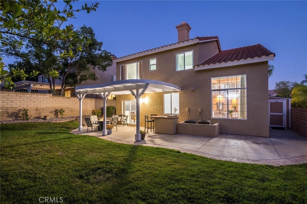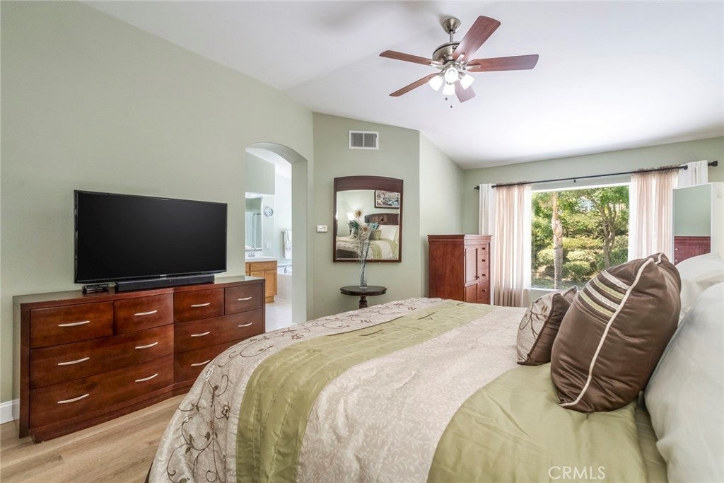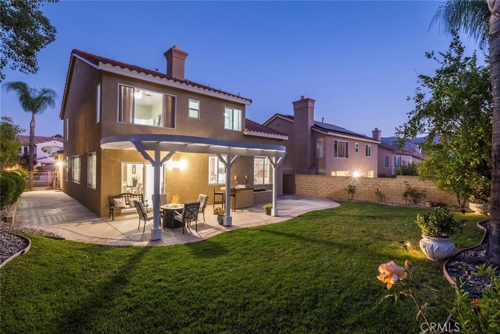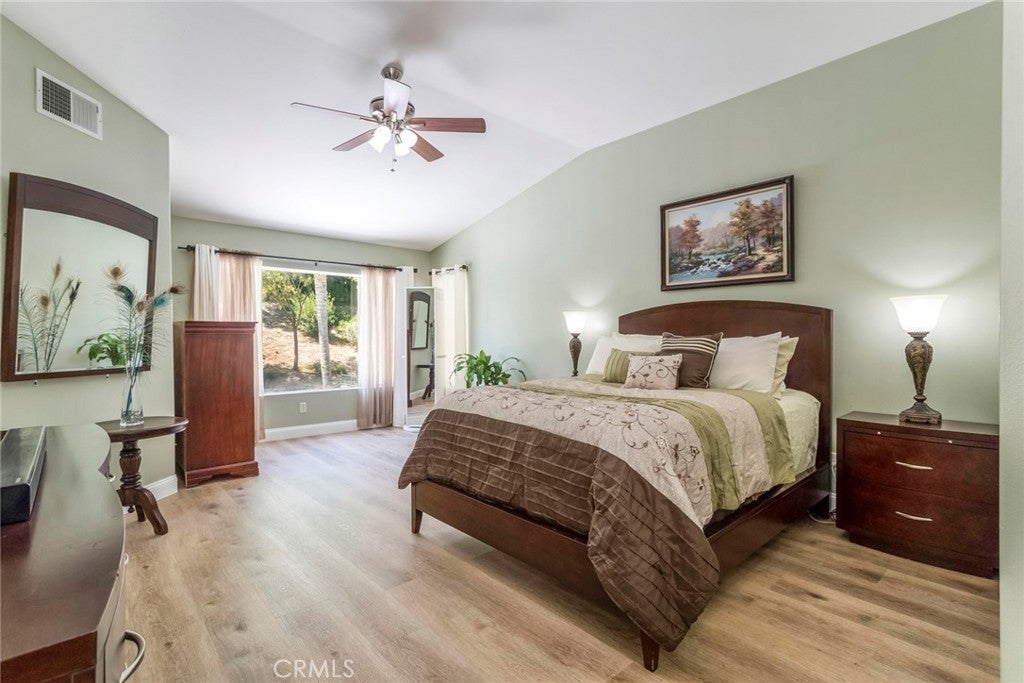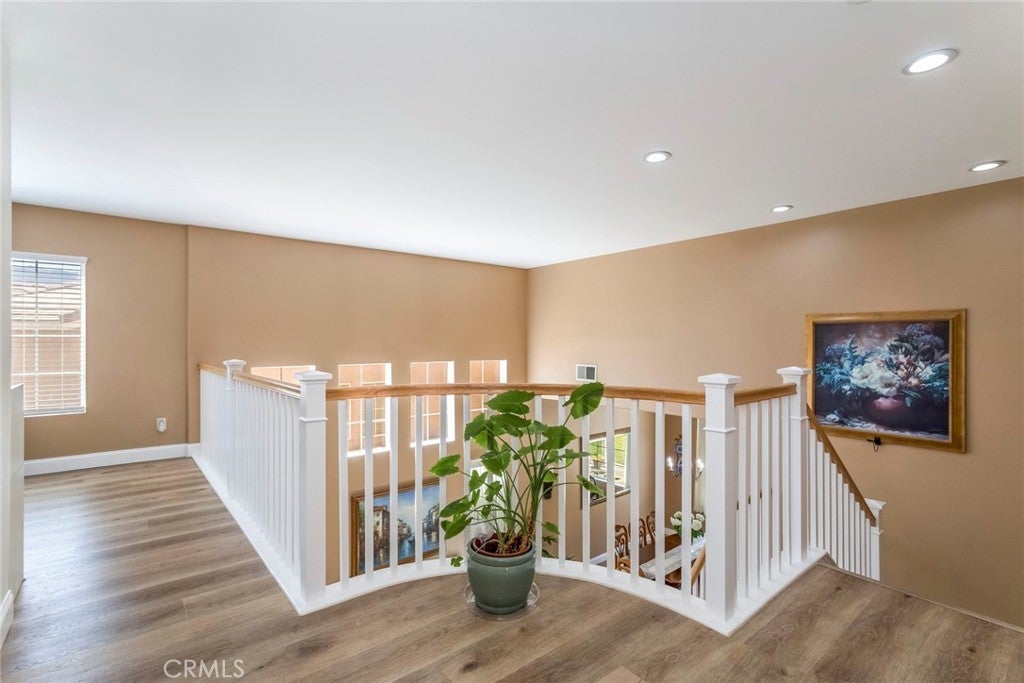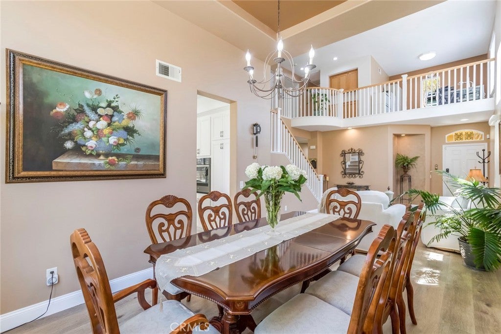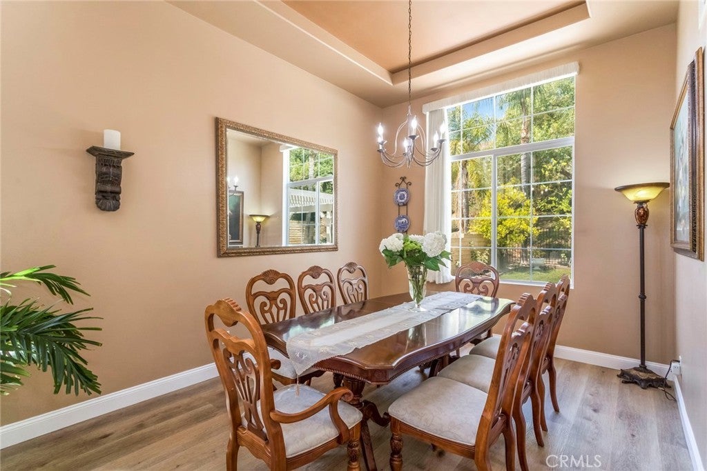 Welcome to this stunning Executive Home, ideally located in the highly sought-after upper Stevenson Ranch neighborhood on a picturesque street that radiates pride of ownership. From the moment you arrive, you will immediately notice the picture-perfect curb appeal adorned with meticulously manicured landscaping and featuring beautiful mature palms. Spanning nearly 3,000 square feet, this home boasts four bedrooms (one down,) den/bonus room, three baths, formal living and dining areas, family room, loft, spacious laundry room with sink, and upgrades throughout. As you walk in you will notice the soaring cathedral ceilings, beautiful LVP wide plank flooring in Canyon Oak, inviting paint selections, newer carpeting upstairs, and several windows flooding the space with natural light. The home's chef will love the updated kitchen including a wealth of cabinetry, stainless appliances, stylish quartz counters with seamless backsplash, spacious center island, and a convenient breakfast nook. The dining room is highlighted by a gorgeous chandelier, tray ceiling and views of the backyard. Entertain with ease in the large family room with a cozy fireplace and easy access to your entertainer's backyard. Upstairs, you will find the luxurious primary suite that is generous in size, includes a large walk in closet and enjoys views of the surrounding landscape. Enjoy the private ensuite bath, complete with dual sinks, an oversized soaking tub, and a separate walk in shower. The secondary bedrooms are generously sized and offer ample closet space. The hall bath features dual sinks and a private shower room. The loft is perfect for a home office or additional relaxation area. Step outside and discover an entertainer's space featuring a large covered patio, BBQ island and a huge grassy area for play. Don't miss the additional upgrades of a newer water heater, outdoor shed and newer exterior paint! Minutes away from shopping, Richard Rioux Park, award-winning schools, and effortless freeway access! This home embraces the essence of Southern California living at its best!