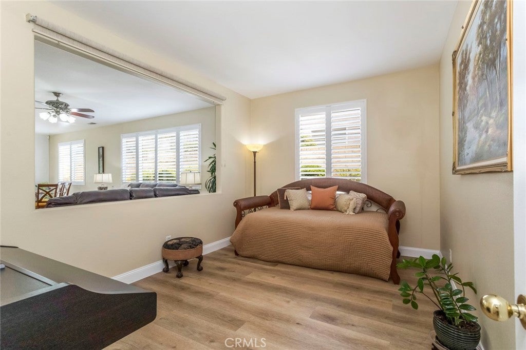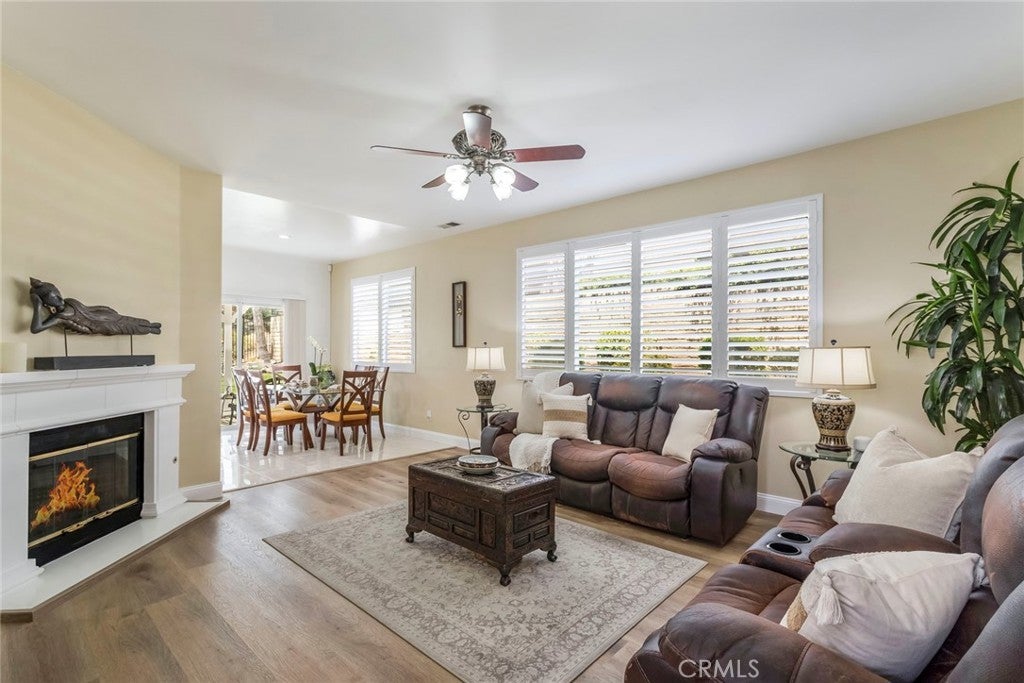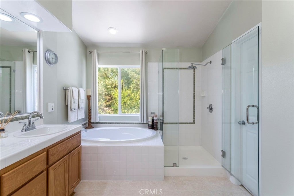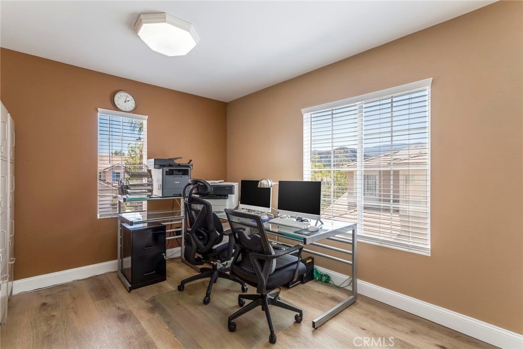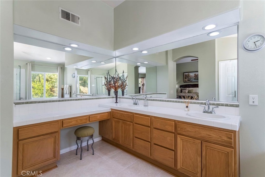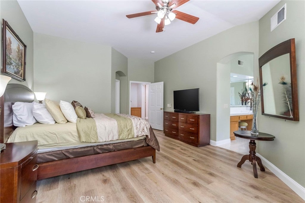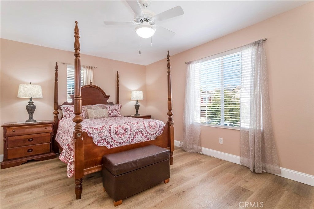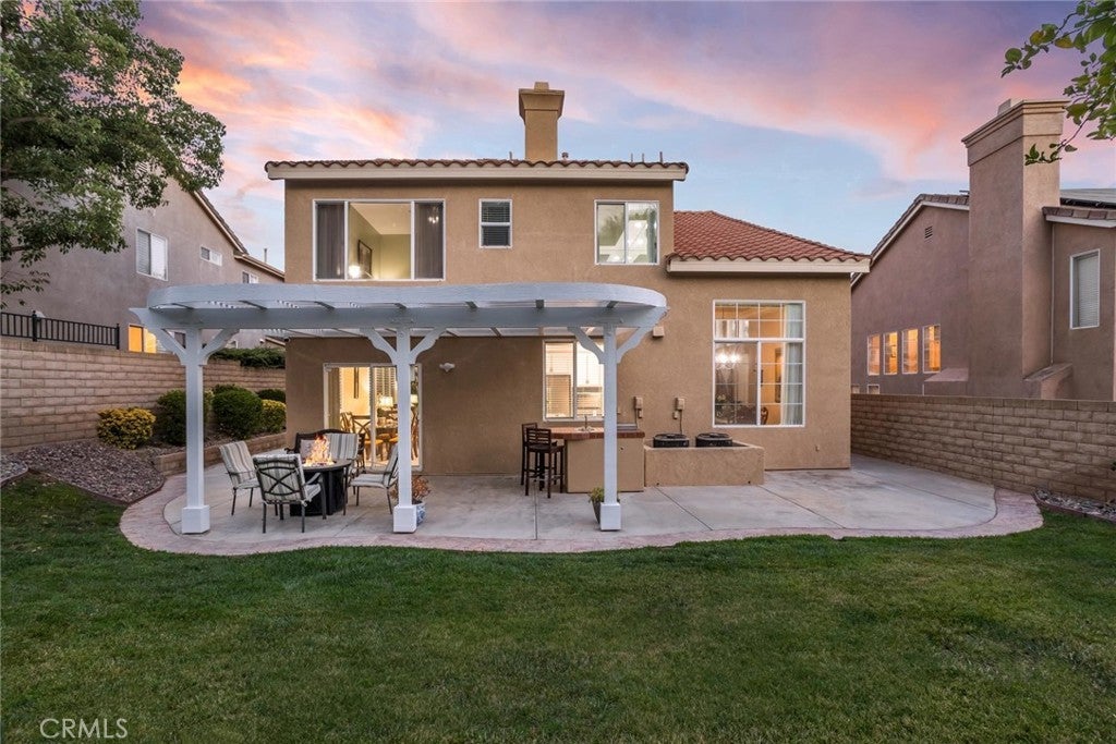 Welcome to this stunning Executive Home, ideally located in the highly sought-after upper Stevenson Ranch neighborhood on a picturesque street that radiates pride of ownership. From the moment you arrive, you will immediately notice the picture-perfect curb appeal adorned with meticulously manicured landscaping and featuring beautiful mature palms. Spanning nearly 3,000 square feet, this home boasts four bedrooms (one down,) den/bonus room, three baths, formal living and dining areas, family room, loft, spacious laundry room with sink, and upgrades throughout. As you walk in you will notice the soaring cathedral ceilings, beautiful LVP wide plank flooring in Canyon Oak, inviting paint selections, newer carpeting upstairs, and several windows flooding the space with natural light. The home's chef will love the updated kitchen including a wealth of cabinetry, stainless appliances, stylish quartz counters with seamless backsplash, spacious center island, and a convenient breakfast nook. The dining room is highlighted by a gorgeous chandelier, tray ceiling and views of the backyard. Entertain with ease in the large family room with a cozy fireplace and easy access to your entertainer's backyard. Upstairs, you will find the luxurious primary suite that is generous in size, includes a large walk in closet and enjoys views of the surrounding landscape. Enjoy the private ensuite bath, complete with dual sinks, an oversized soaking tub, and a separate walk in shower. The secondary bedrooms are generously sized and offer ample closet space. The hall bath features dual sinks and a private shower room. The loft is perfect for a home office or additional relaxation area. Step outside and discover an entertainer's space featuring a large covered patio, BBQ island and a huge grassy area for play. Don't miss the additional upgrades of a newer water heater, outdoor shed and newer exterior paint! Minutes away from shopping, Richard Rioux Park, award-winning schools, and effortless freeway access! This home embraces the essence of Southern California living at its best!