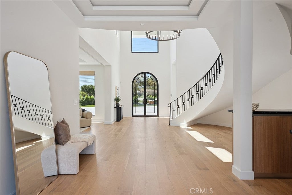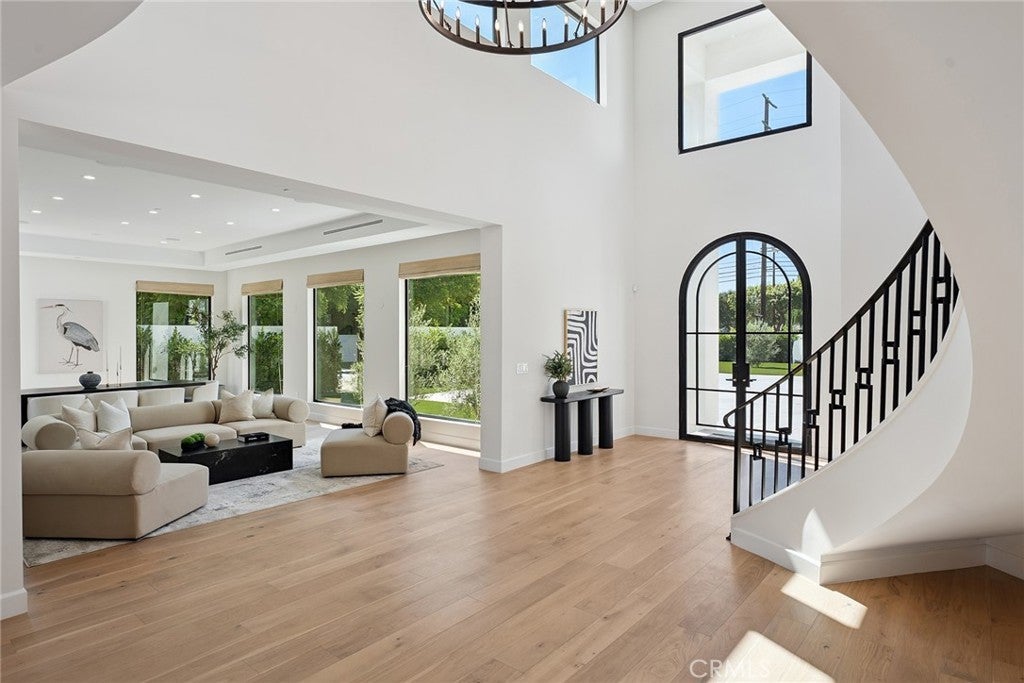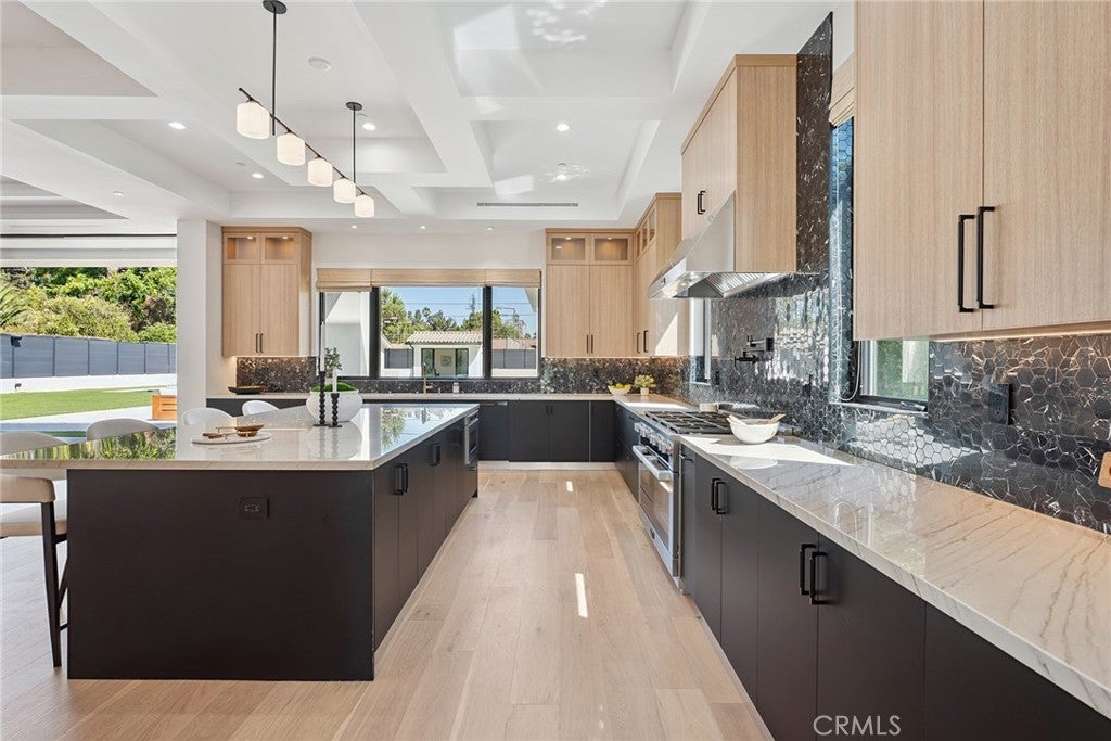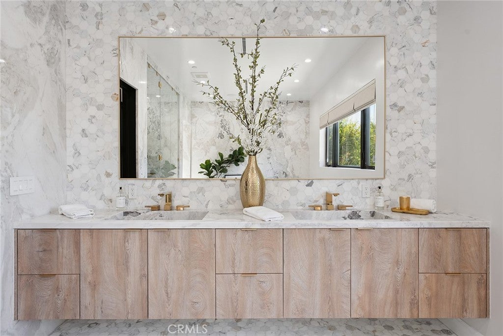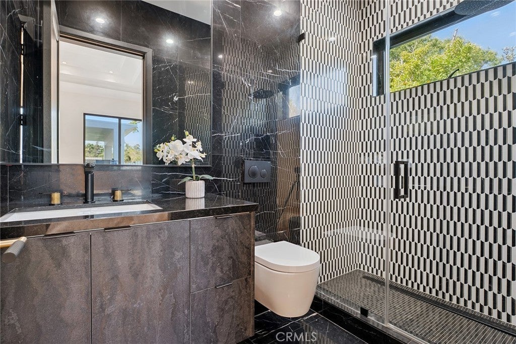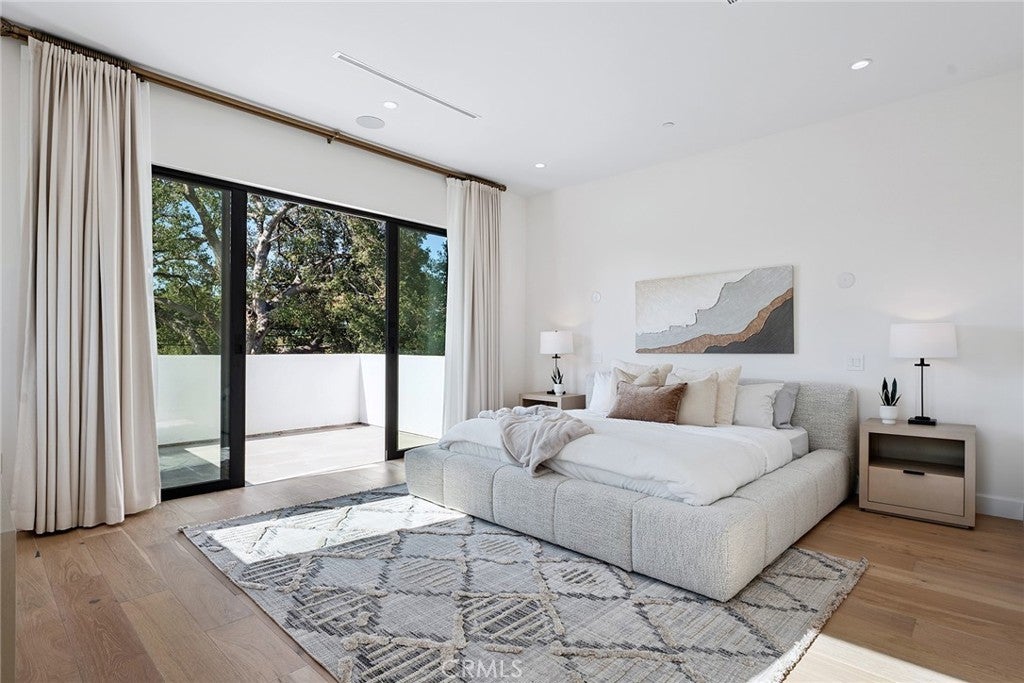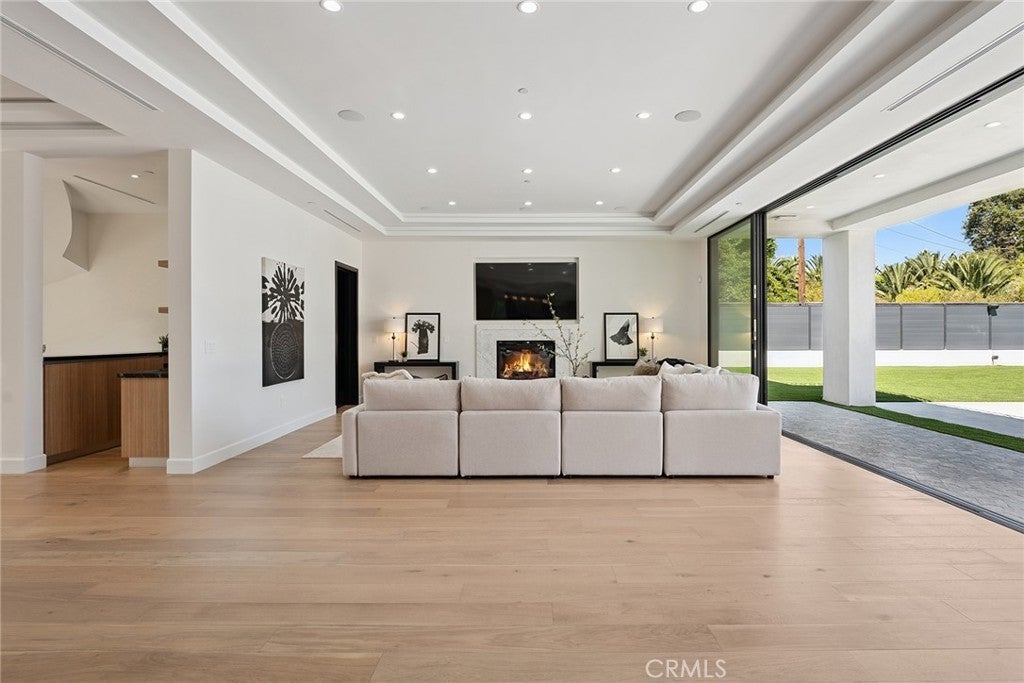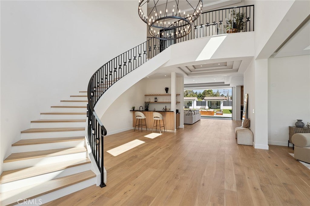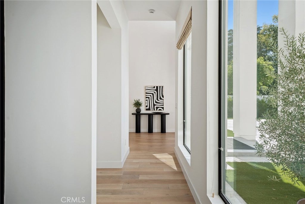 Welcome to this stunning newly constructed estate in the exclusive Weddington Estates enclave of Sherman Oaks. Set behind private gates on a sprawling corner lot, this home blends luxury, comfort, and smart living with effortless style. Featuring 5 spacious bedrooms and 4.5 luxurious bathrooms, the residence showcases white oak flooring, sophisticated smart home technology, and exceptional indoor-outdoor flow—perfect for entertaining. Step through custom arched iron double doors into a light-filled, open-concept layout designed for grand living. The formal living and dining areas unite into a dramatic great room with expansive windows that flood the space with natural light—ideal for both hosting and relaxing. The gourmet chef’s kitchen is equipped with top-of-the-line appliances, a built-in Thermador refrigerator and freezer, full-size wine fridge, and a butler’s pantry. It opens to the inviting family room, complete with a sleek fireplace and oversized Fleetwood pocket sliding doors that lead to your private, resort-style backyard. The main level also includes a media room, custom wet bar with wine fridge, and a versatile guest suite with en-suite bath—perfect for visitors or in-laws. Upstairs, you'll find three generously sized bedrooms, including two en-suites with custom walk-in closets. The primary suite is a luxurious retreat with pocket doors that open to a private balcony, his and hers walk-in closets with built-ins, and a spa-inspired bathroom with dual vanities, an oversized soaking tub, and a double rainfall shower. A conveniently located upstairs laundry room adds functionality. Outdoors, the resort-style backyard is designed for unforgettable gatherings. Enjoy a sparkling pool and spa, two enclosed recreation cabanas, a putting green, and two covered patios—including an oversized space with a fully equipped outdoor kitchen and BBQ area for the ultimate open-air lounge experience. This backyard is a true entertainer’s dream. Smart home automation powered by Control4 provides seamless control of lighting, integrated sound system including sonos, climate, pool, spa, and more—delivering unparalleled comfort, convenience, and modern luxury throughout. This estate also caters to the car enthusiast, featuring a spacious 3-car garage, three separate gated entrances, and an expansive driveway that offers ample parking for multiple vehicles.