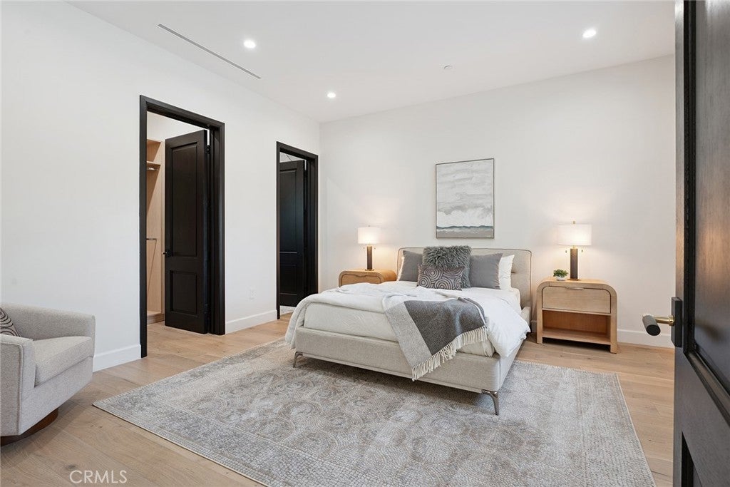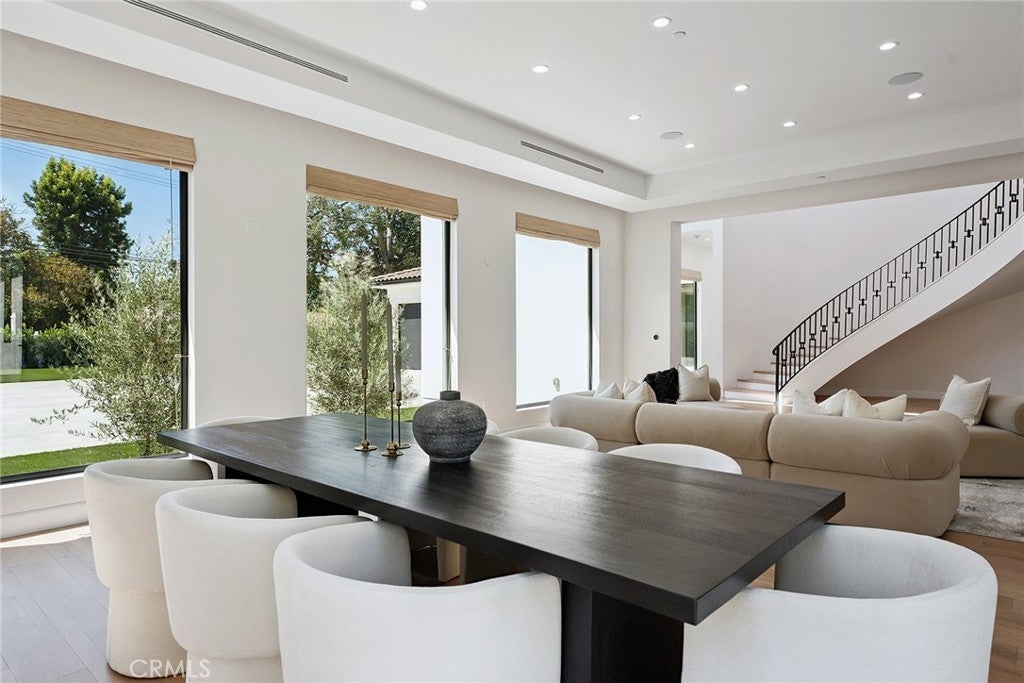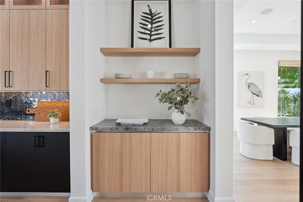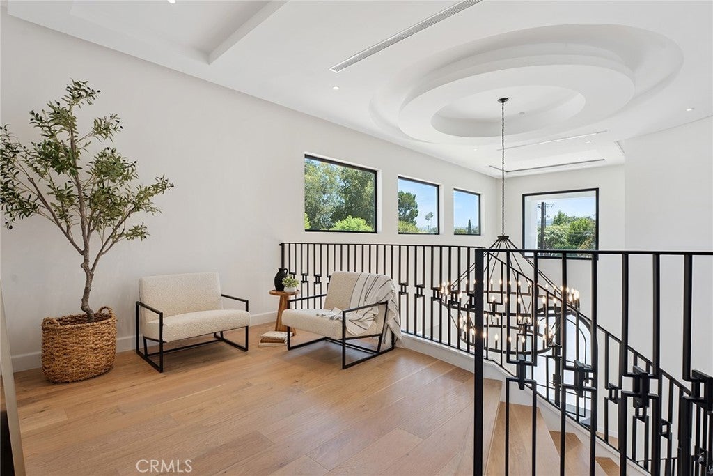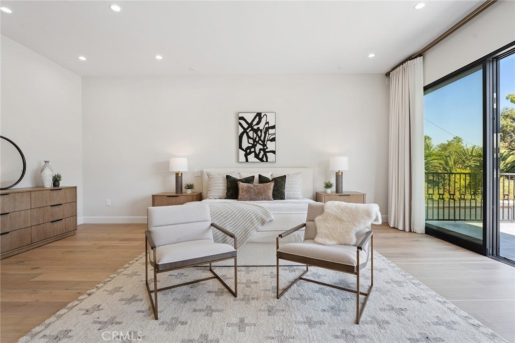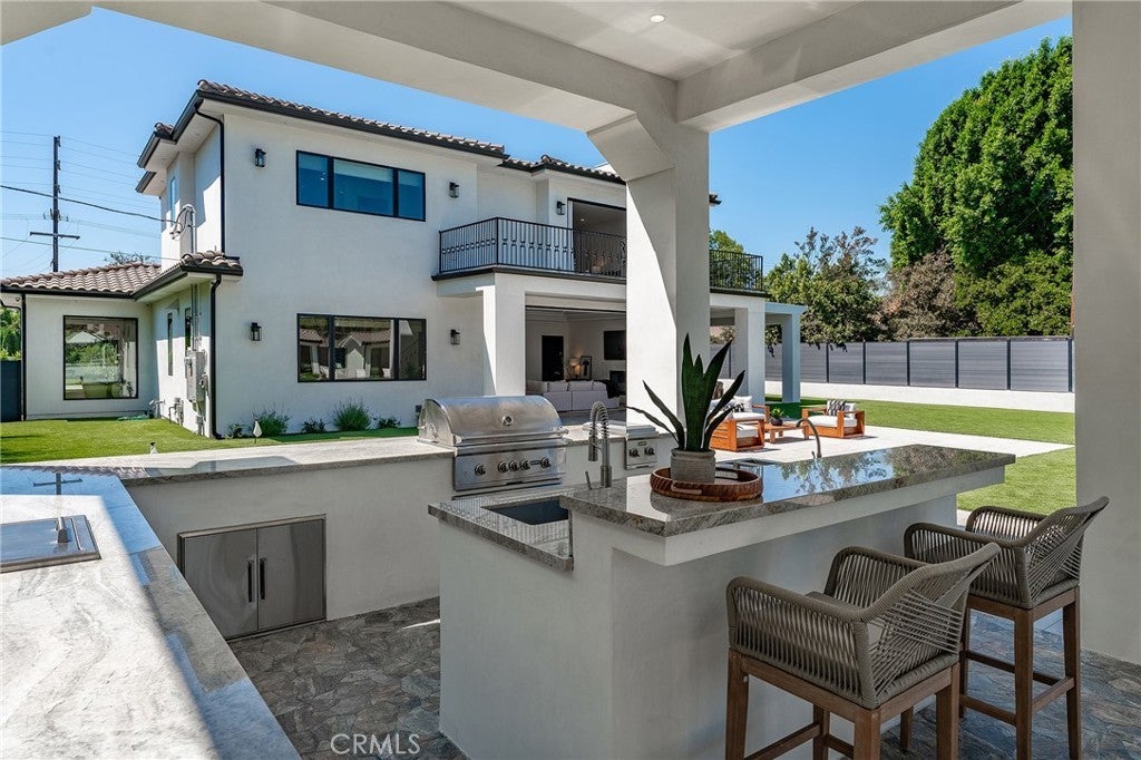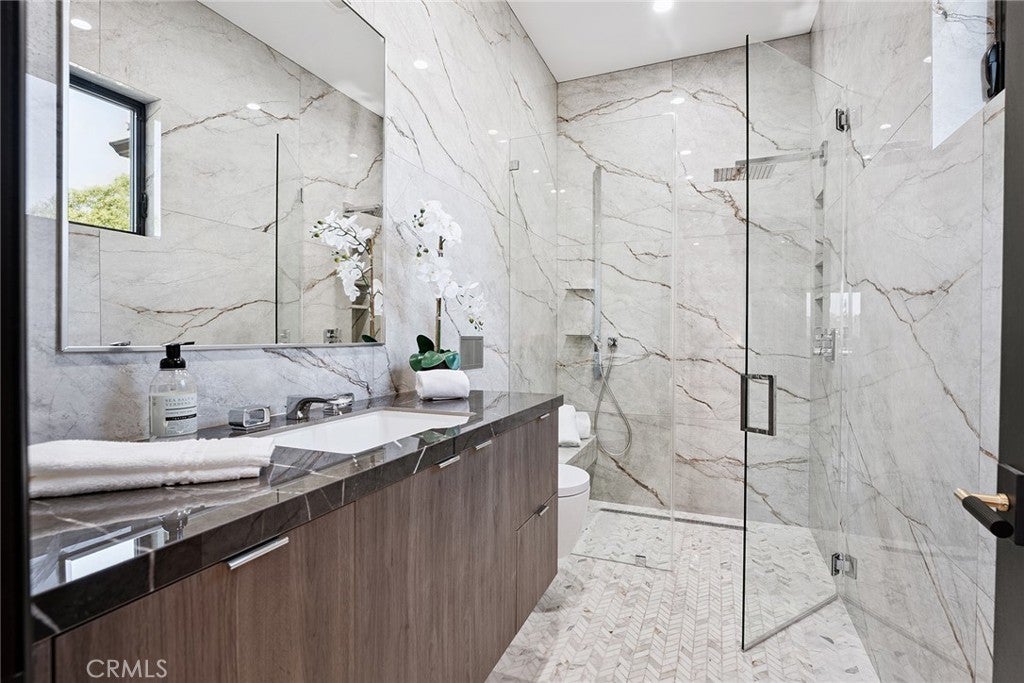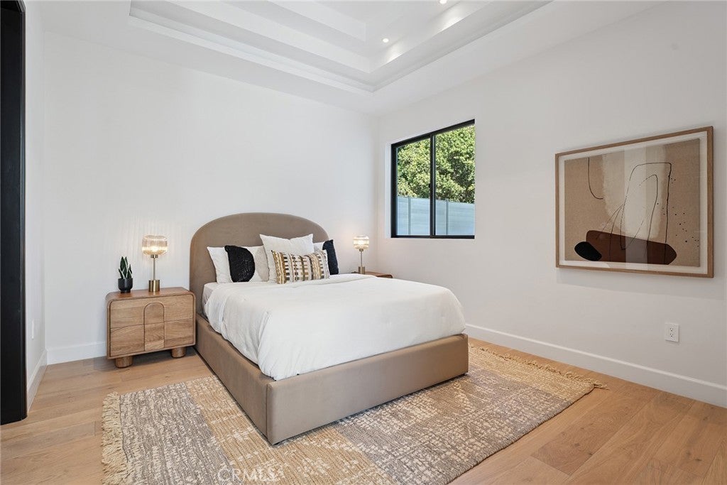 Welcome to this stunning newly constructed estate in the exclusive Weddington Estates enclave of Sherman Oaks. Set behind private gates on a sprawling corner lot, this home blends luxury, comfort, and smart living with effortless style. Featuring 5 spacious bedrooms and 4.5 luxurious bathrooms, the residence showcases white oak flooring, sophisticated smart home technology, and exceptional indoor-outdoor flow—perfect for entertaining. Step through custom arched iron double doors into a light-filled, open-concept layout designed for grand living. The formal living and dining areas unite into a dramatic great room with expansive windows that flood the space with natural light—ideal for both hosting and relaxing. The gourmet chef’s kitchen is equipped with top-of-the-line appliances, a built-in Thermador refrigerator and freezer, full-size wine fridge, and a butler’s pantry. It opens to the inviting family room, complete with a sleek fireplace and oversized Fleetwood pocket sliding doors that lead to your private, resort-style backyard. The main level also includes a media room, custom wet bar with wine fridge, and a versatile guest suite with en-suite bath—perfect for visitors or in-laws. Upstairs, you'll find three generously sized bedrooms, including two en-suites with custom walk-in closets. The primary suite is a luxurious retreat with pocket doors that open to a private balcony, his and hers walk-in closets with built-ins, and a spa-inspired bathroom with dual vanities, an oversized soaking tub, and a double rainfall shower. A conveniently located upstairs laundry room adds functionality. Outdoors, the resort-style backyard is designed for unforgettable gatherings. Enjoy a sparkling pool and spa, two enclosed recreation cabanas, a putting green, and two covered patios—including an oversized space with a fully equipped outdoor kitchen and BBQ area for the ultimate open-air lounge experience. This backyard is a true entertainer’s dream. Smart home automation powered by Control4 provides seamless control of lighting, integrated sound system including sonos, climate, pool, spa, and more—delivering unparalleled comfort, convenience, and modern luxury throughout. This estate also caters to the car enthusiast, featuring a spacious 3-car garage, three separate gated entrances, and an expansive driveway that offers ample parking for multiple vehicles.