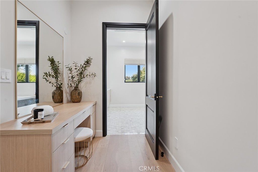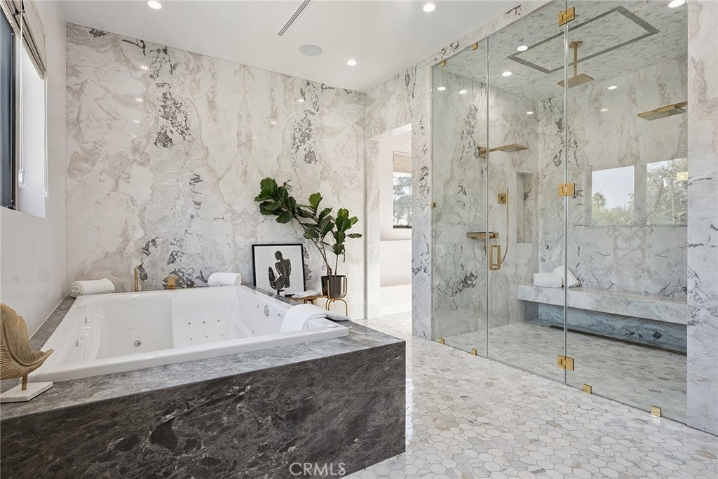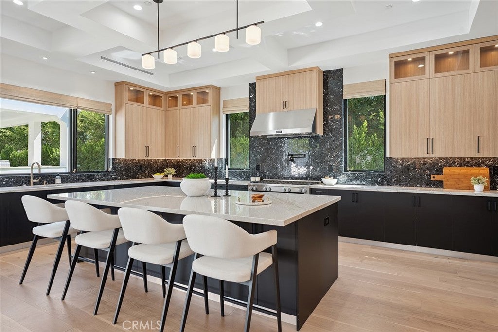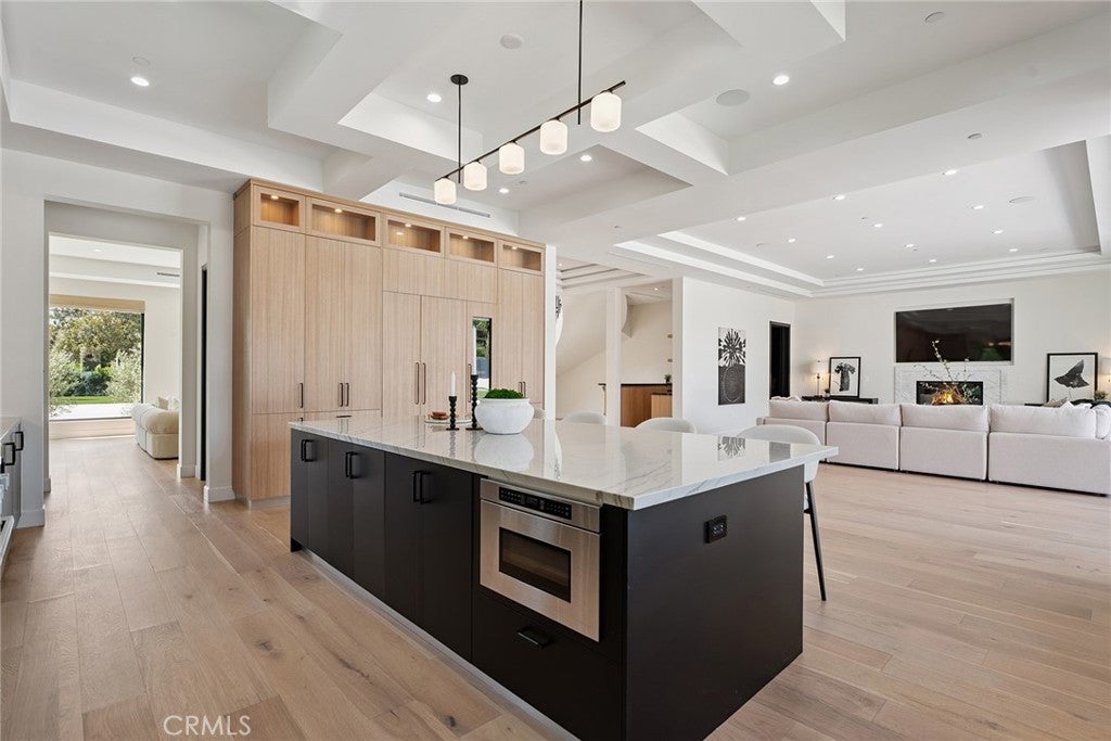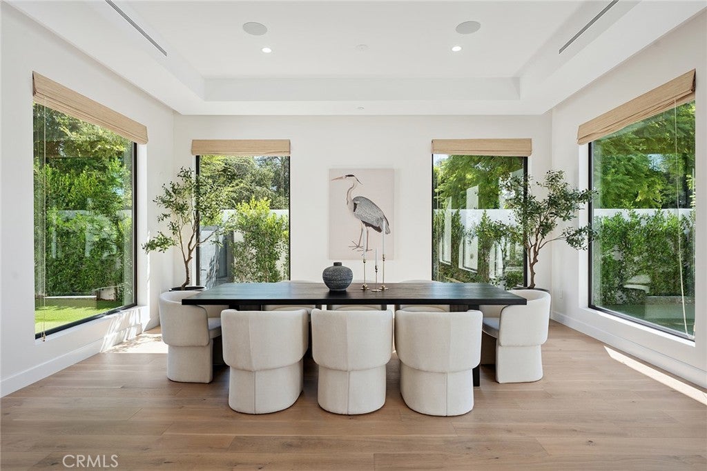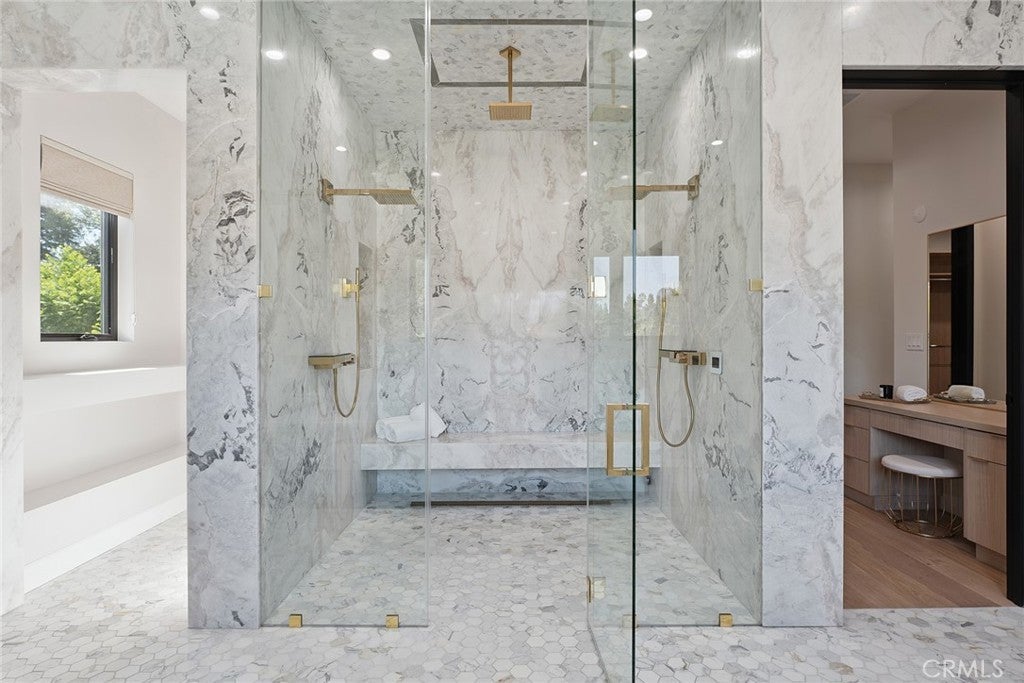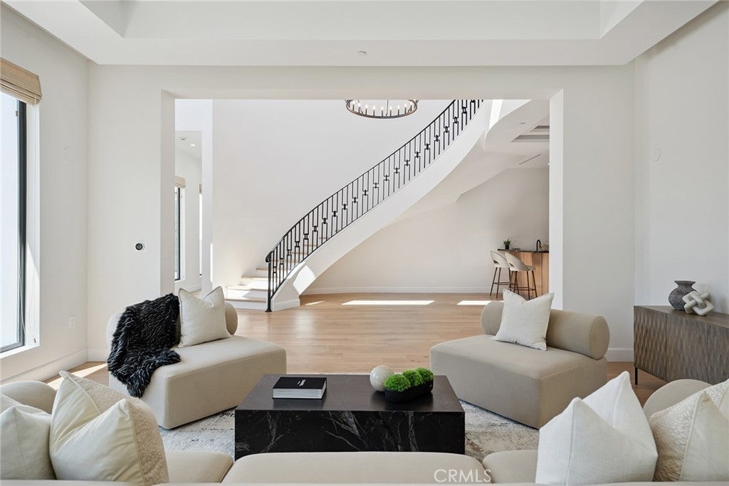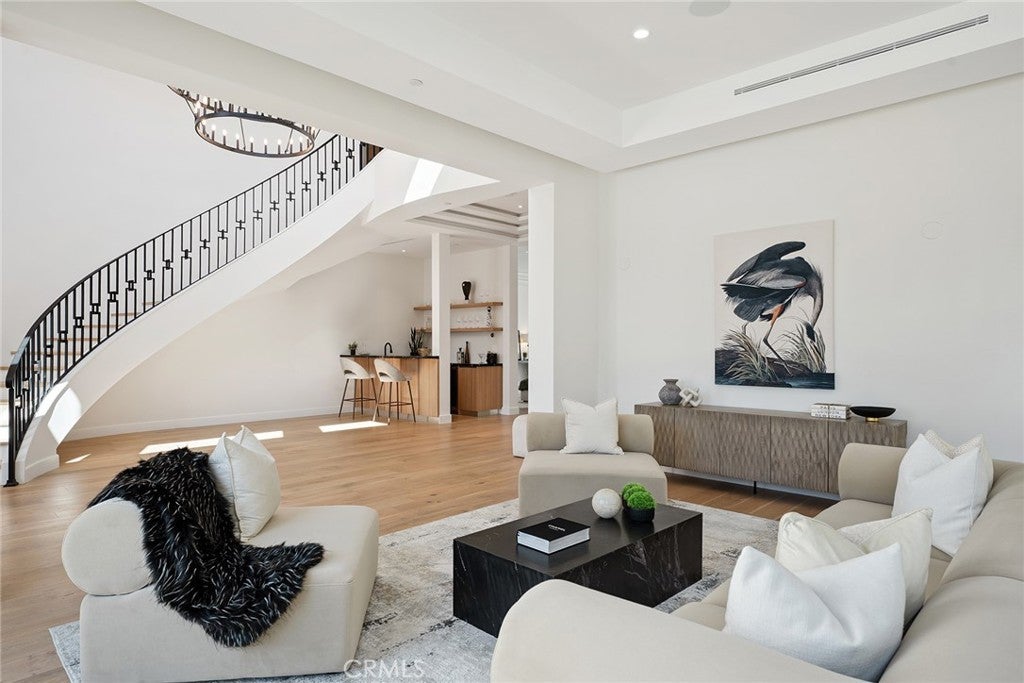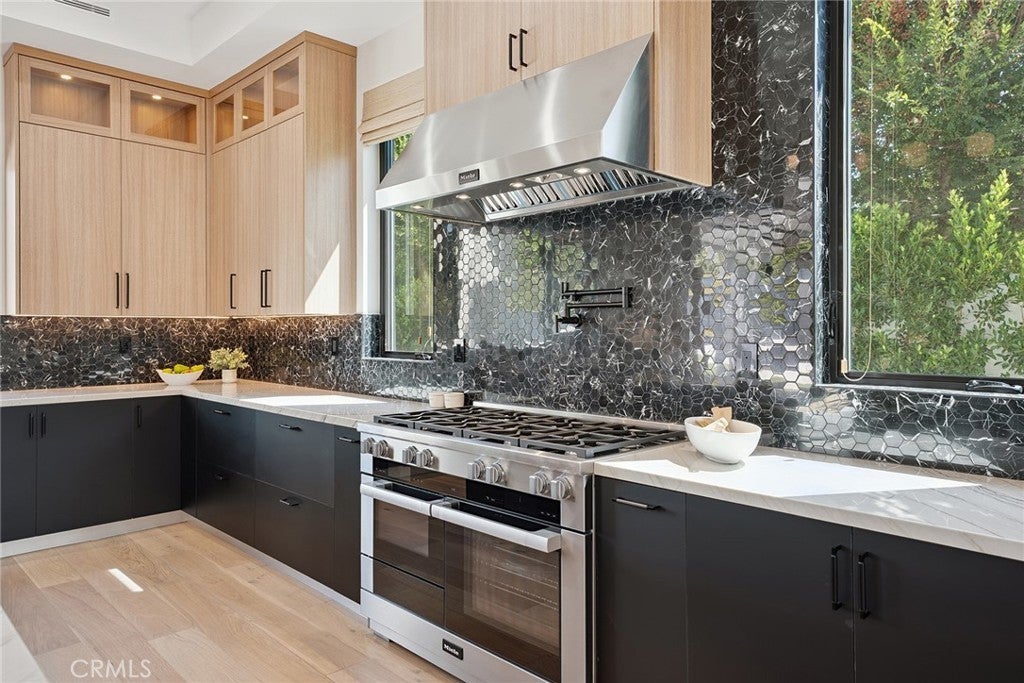 Welcome to this stunning newly constructed estate in the exclusive Weddington Estates enclave of Sherman Oaks. Set behind private gates on a sprawling corner lot, this home blends luxury, comfort, and smart living with effortless style. Featuring 5 spacious bedrooms and 4.5 luxurious bathrooms, the residence showcases white oak flooring, sophisticated smart home technology, and exceptional indoor-outdoor flow—perfect for entertaining. Step through custom arched iron double doors into a light-filled, open-concept layout designed for grand living. The formal living and dining areas unite into a dramatic great room with expansive windows that flood the space with natural light—ideal for both hosting and relaxing. The gourmet chef’s kitchen is equipped with top-of-the-line appliances, a built-in Thermador refrigerator and freezer, full-size wine fridge, and a butler’s pantry. It opens to the inviting family room, complete with a sleek fireplace and oversized Fleetwood pocket sliding doors that lead to your private, resort-style backyard. The main level also includes a media room, custom wet bar with wine fridge, and a versatile guest suite with en-suite bath—perfect for visitors or in-laws. Upstairs, you'll find three generously sized bedrooms, including two en-suites with custom walk-in closets. The primary suite is a luxurious retreat with pocket doors that open to a private balcony, his and hers walk-in closets with built-ins, and a spa-inspired bathroom with dual vanities, an oversized soaking tub, and a double rainfall shower. A conveniently located upstairs laundry room adds functionality. Outdoors, the resort-style backyard is designed for unforgettable gatherings. Enjoy a sparkling pool and spa, two enclosed recreation cabanas, a putting green, and two covered patios—including an oversized space with a fully equipped outdoor kitchen and BBQ area for the ultimate open-air lounge experience. This backyard is a true entertainer’s dream. Smart home automation powered by Control4 provides seamless control of lighting, integrated sound system including sonos, climate, pool, spa, and more—delivering unparalleled comfort, convenience, and modern luxury throughout. This estate also caters to the car enthusiast, featuring a spacious 3-car garage, three separate gated entrances, and an expansive driveway that offers ample parking for multiple vehicles.