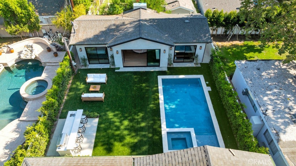 A stunning masterpiece in the heart of Studio City! This newly built contemporary 5,200 square foot estate captures the perfect balance of elegance, comfort, and cutting edge design. Thoughtfully crafted with 6 bedrooms and bespoke finishes throughout, this residence is ideal for both grand entertaining and effortless everyday living. Inside, soaring ceilings, abundant natural light, and an open concept floor plan create a seamless flow from one space to the next. At the heart of the home is a chef’s kitchen featuring custom cabinetry, a dramatic waterfall Taj Mahal quartz island, top of the line appliances, and sleek finishes. An inviting breakfast nook and effortless indoor-outdoor connection complete the space. Additional highlights include a private home theater for cinematic experiences, a sophisticated office, versatile living areas designed to suit the modern lifestyle, and a fully integrated Control smart home system that puts lighting, climate, security, and entertainment at your fingertips. The luxurious primary suite offers a spa inspired bath, oversized walk in closet, and serene views your personal retreat within the home. Adding even more flexibility, the property includes a beautiful one bedroom, one bathroom ADU with a full kitchen and flex room perfect for guests, extended family, or income potential. Step outside to a private oasis with a refreshing pool and spa, outdoor kitchen with built-in BBQ, multiple entertaining areas, and ample space to unwind beneath the California sun. Perfectly located just minutes from Ventura Boulevard’s premier shopping, dining, and entertainment, this residence embodies sophistication, comfort, and lifestyle. More than a home, it’s a statement.
