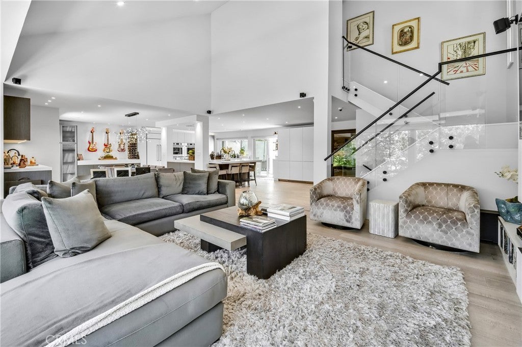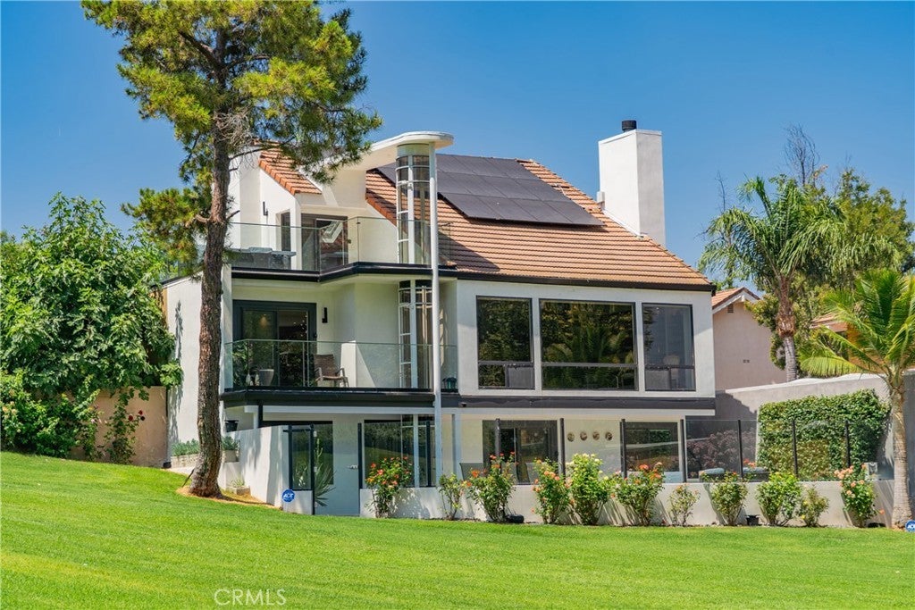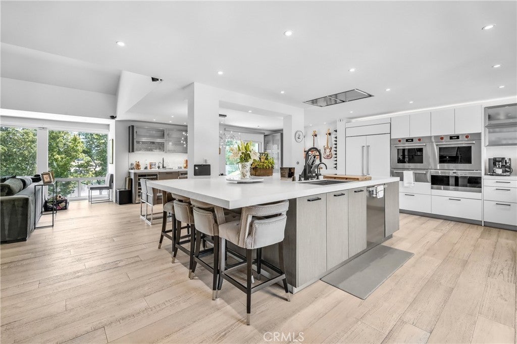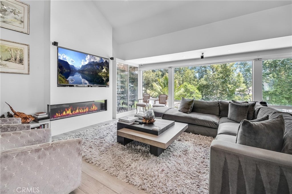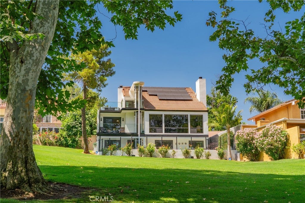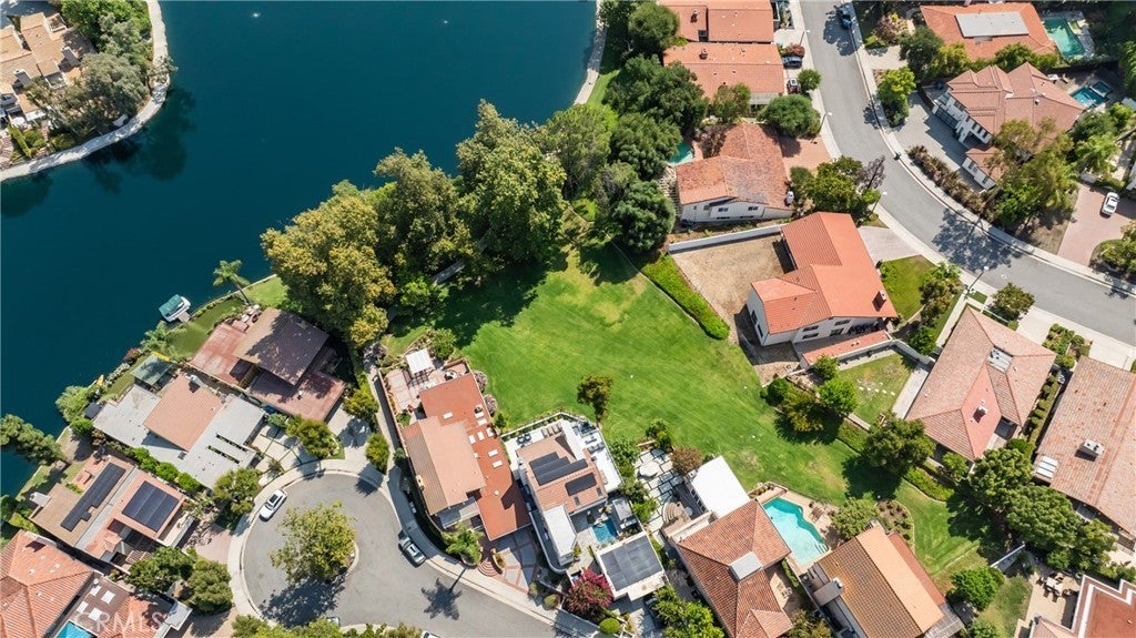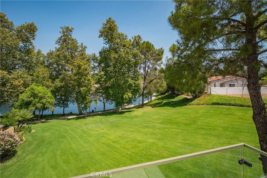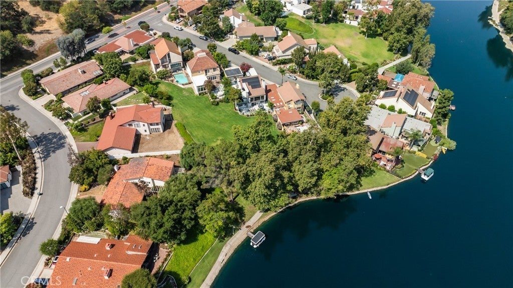 Welcome to this extraordinary lakefront estate tucked away on a quiet cul-de-sac in the coveted Calabasas Lake community. Fully reimagined and thoughtfully curated, this modern residence combines architectural sophistication with natural beauty, offering sweeping views of the lake and adjacent park as the perfect backdrop. Designed for refined living and entertaining, the home features an open floor plan ideal for hosting gatherings, enhanced by premium upgrades including new electrical and plumbing systems, Control4 smart home technology, and an elevator serving all three levels. The Bauformat German gourmet kitchen impresses with a porcelain-topped island, custom European cabinetry, two Miele dishwashers, dual Wolf ovens with induction range, microwave, warming drawer, and full-size Sub-Zero refrigerator and freezer. An elegant dining area with wet bar and dual wine refrigerators flows into the living and family rooms, where modern fireplaces, custom cabinetry, and expansive glass doors frame breathtaking views. The primary suite offers vaulted ceilings, skylights, a spa bath with steam shower, whirlpool tub, dual vanities, walk-in closet, and a terrace overlooking the lake and park. The lower level includes a media room, two bedrooms, full bath, laundry, and elevator access. A detached ADU with bedroom, bath, and separate entrance is perfect for guests, office, or live-in staff. Outdoors, a private walled yard surrounds the heated pool with waterfall, firepit lounge, and full kitchen with sink, warming oven, and refrigerator. Premium upgrades include a paid solar system, Lutron lighting with alarm integration, keyless entry, advanced camera security, modern glass staircases, wide illuminated steps, new wood flooring, Venetian plaster powder room, custom Stereo cabinetry, three-zone HVAC, black glass garage doors, and pivot entry. Multiple balconies and terraces embrace the lakefront lifestyle. Rarely does a home of this caliber, combining modern design, prime location, and flawless execution, come to market. This residence is more than a home, it is a private retreat offering elegance, innovation, and serene luxury in the heart of Calabasas.