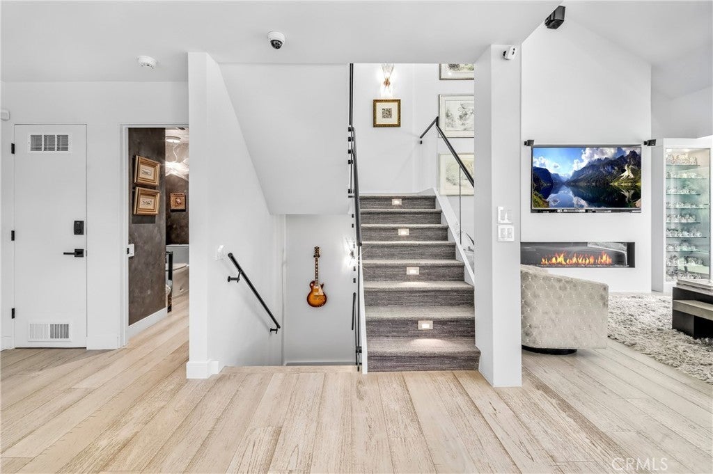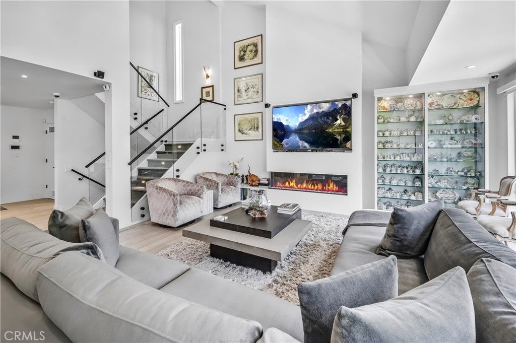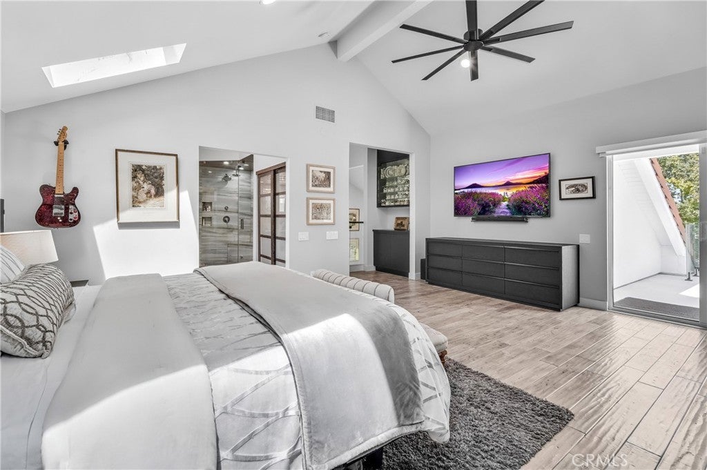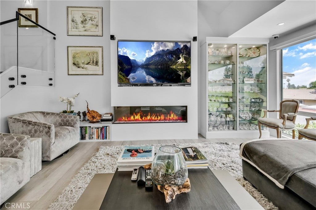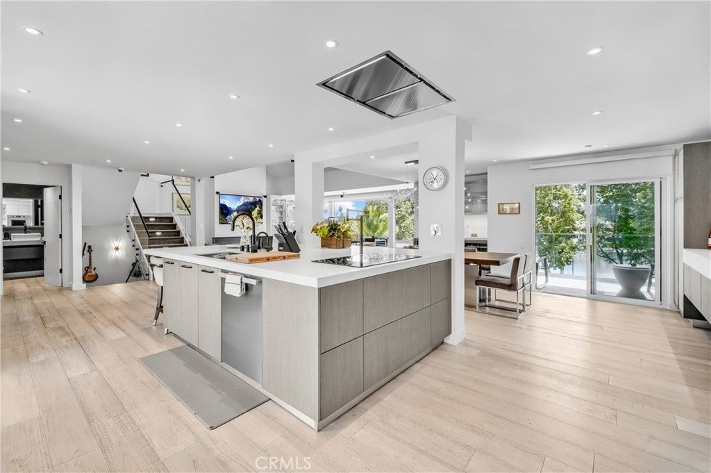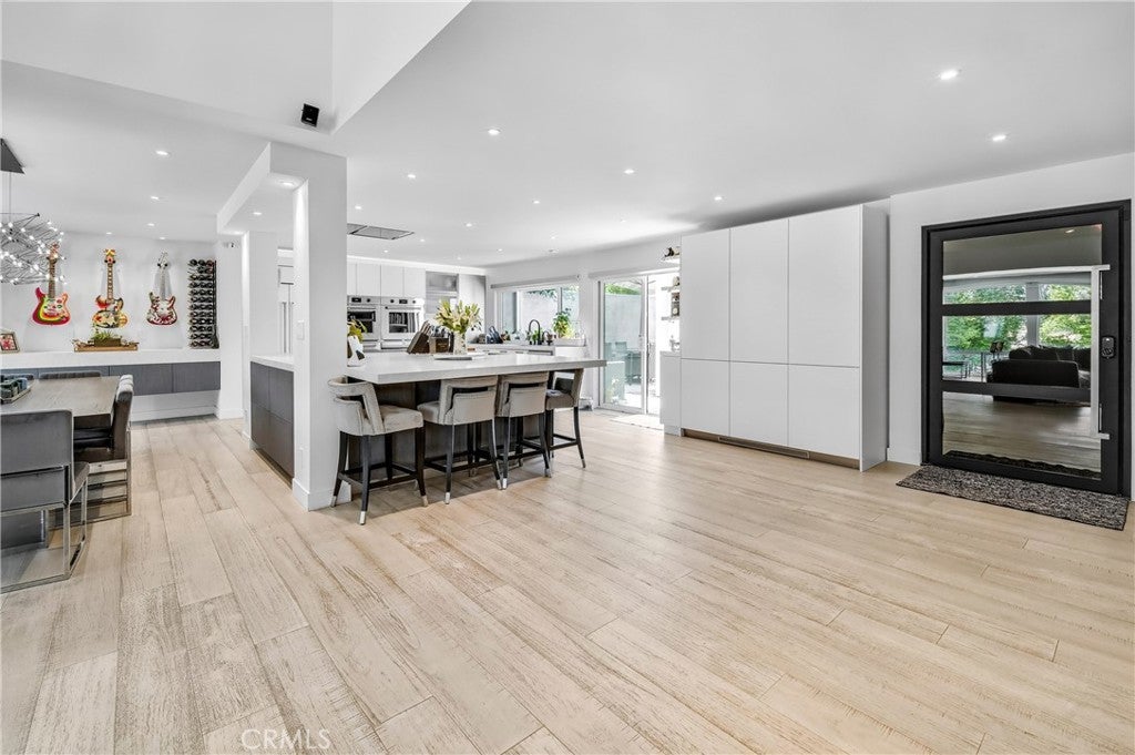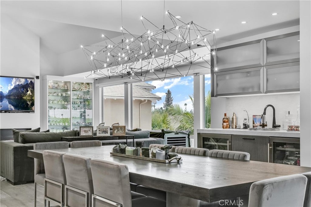 Welcome to this extraordinary lakefront estate tucked away on a quiet cul-de-sac in the coveted Calabasas Lake community. Fully reimagined and thoughtfully curated, this modern residence combines architectural sophistication with natural beauty, offering sweeping views of the lake and adjacent park as the perfect backdrop. Designed for refined living and entertaining, the home features an open floor plan ideal for hosting gatherings, enhanced by premium upgrades including new electrical and plumbing systems, Control4 smart home technology, and an elevator serving all three levels. The Bauformat German gourmet kitchen impresses with a porcelain-topped island, custom European cabinetry, two Miele dishwashers, dual Wolf ovens with induction range, microwave, warming drawer, and full-size Sub-Zero refrigerator and freezer. An elegant dining area with wet bar and dual wine refrigerators flows into the living and family rooms, where modern fireplaces, custom cabinetry, and expansive glass doors frame breathtaking views. The primary suite offers vaulted ceilings, skylights, a spa bath with steam shower, whirlpool tub, dual vanities, walk-in closet, and a terrace overlooking the lake and park. The lower level includes a media room, two bedrooms, full bath, laundry, and elevator access. A detached ADU with bedroom, bath, and separate entrance is perfect for guests, office, or live-in staff. Outdoors, a private walled yard surrounds the heated pool with waterfall, firepit lounge, and full kitchen with sink, warming oven, and refrigerator. Premium upgrades include a paid solar system, Lutron lighting with alarm integration, keyless entry, advanced camera security, modern glass staircases, wide illuminated steps, new wood flooring, Venetian plaster powder room, custom Stereo cabinetry, three-zone HVAC, black glass garage doors, and pivot entry. Multiple balconies and terraces embrace the lakefront lifestyle. Rarely does a home of this caliber, combining modern design, prime location, and flawless execution, come to market. This residence is more than a home, it is a private retreat offering elegance, innovation, and serene luxury in the heart of Calabasas.