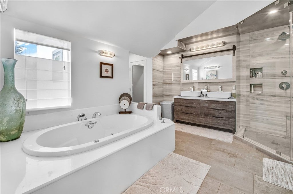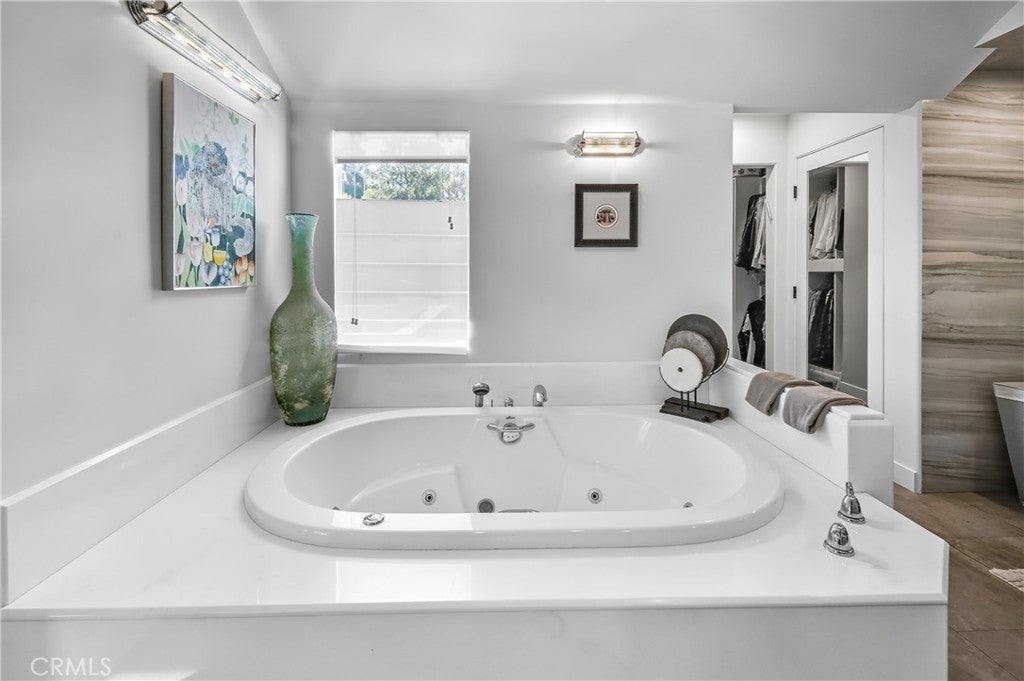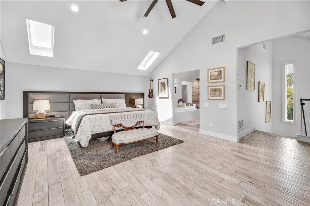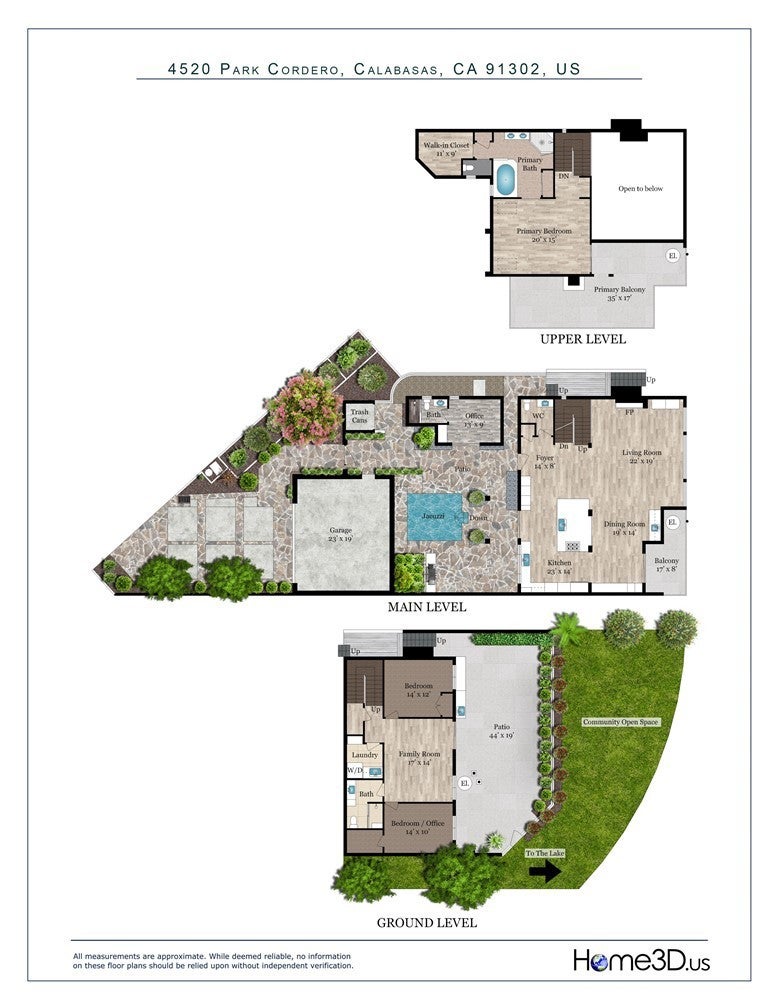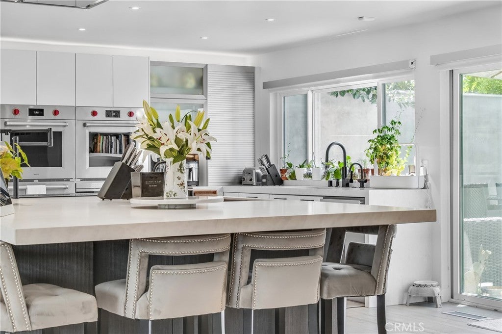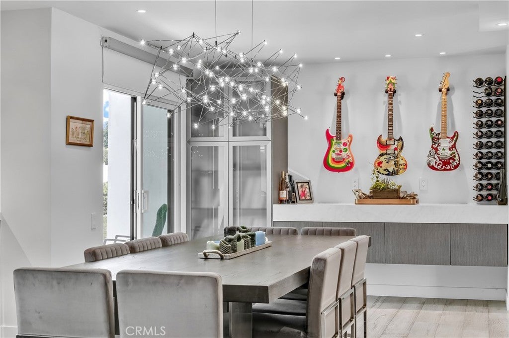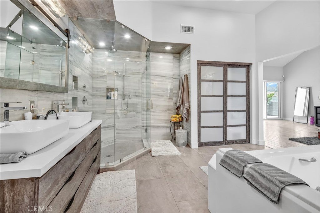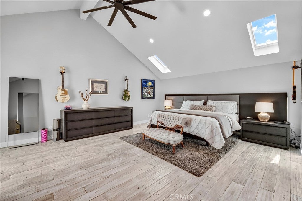 Welcome to this extraordinary lakefront estate tucked away on a quiet cul-de-sac in the coveted Calabasas Lake community. Fully reimagined and thoughtfully curated, this modern residence combines architectural sophistication with natural beauty, offering sweeping views of the lake and adjacent park as the perfect backdrop. Designed for refined living and entertaining, the home features an open floor plan ideal for hosting gatherings, enhanced by premium upgrades including new electrical and plumbing systems, Control4 smart home technology, and an elevator serving all three levels. The Bauformat German gourmet kitchen impresses with a porcelain-topped island, custom European cabinetry, two Miele dishwashers, dual Wolf ovens with induction range, microwave, warming drawer, and full-size Sub-Zero refrigerator and freezer. An elegant dining area with wet bar and dual wine refrigerators flows into the living and family rooms, where modern fireplaces, custom cabinetry, and expansive glass doors frame breathtaking views. The primary suite offers vaulted ceilings, skylights, a spa bath with steam shower, whirlpool tub, dual vanities, walk-in closet, and a terrace overlooking the lake and park. The lower level includes a media room, two bedrooms, full bath, laundry, and elevator access. A detached ADU with bedroom, bath, and separate entrance is perfect for guests, office, or live-in staff. Outdoors, a private walled yard surrounds the heated pool with waterfall, firepit lounge, and full kitchen with sink, warming oven, and refrigerator. Premium upgrades include a paid solar system, Lutron lighting with alarm integration, keyless entry, advanced camera security, modern glass staircases, wide illuminated steps, new wood flooring, Venetian plaster powder room, custom Stereo cabinetry, three-zone HVAC, black glass garage doors, and pivot entry. Multiple balconies and terraces embrace the lakefront lifestyle. Rarely does a home of this caliber, combining modern design, prime location, and flawless execution, come to market. This residence is more than a home, it is a private retreat offering elegance, innovation, and serene luxury in the heart of Calabasas.