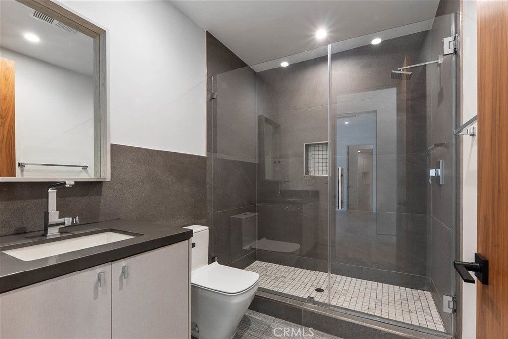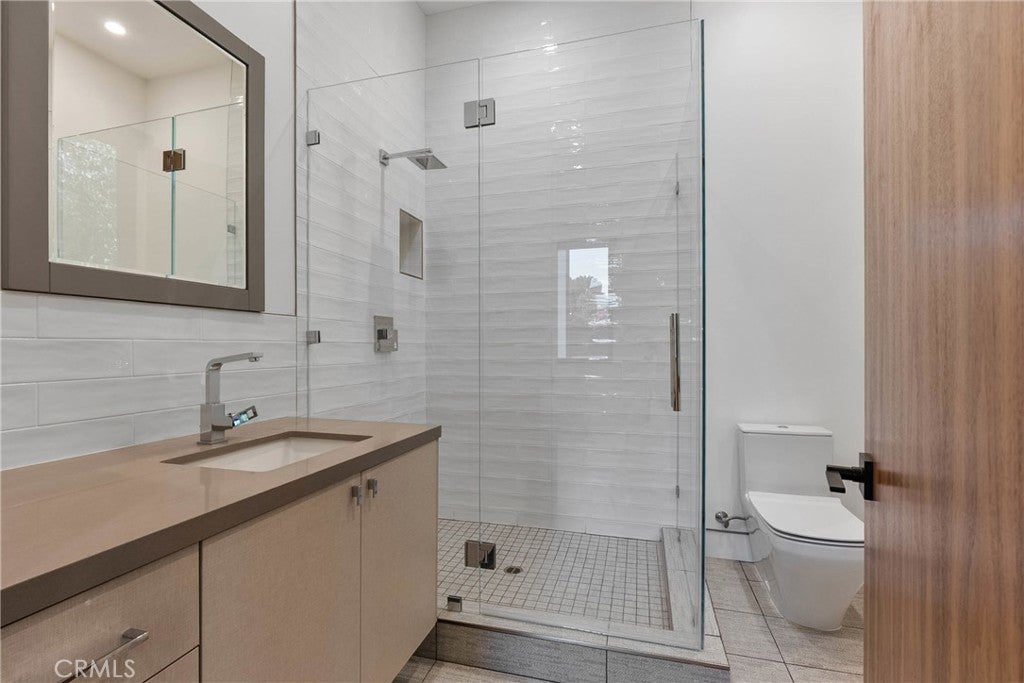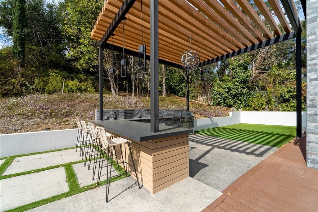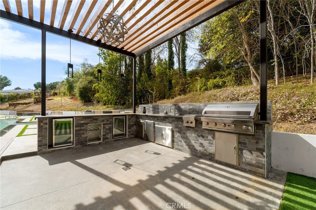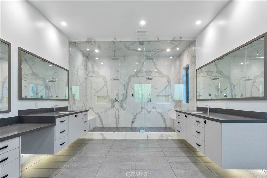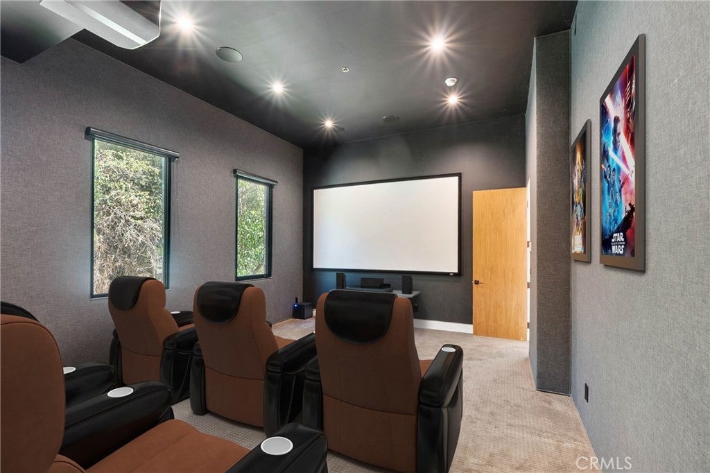 Welcome to your private sanctuary, nestled on a sprawling .68 acre wooded lot. Situated on a flag lot, this estate sits far from the street, ensuring unmatched privacy. A gated entrance and extended driveway lead to a spacious three car garage, with ample additional parking for guests. Step through the breathtaking glass entryway, where soaring 32-foot ceilings, a dramatic chandelier, and striking white oak floating stairs set the stage for this architectural masterpiece. Walls of glass and Fleetwood sliding doors seamlessly blend indoor and outdoor living, flooding the space with natural light and creating an entertainer’s dream. The open concept layout is anchored by stunning oak floors and a sophisticated Italian designed kitchen, featuring a hidden oversized pantry and a wine fridge, perfectly positioned beside an elegant formal dining area. The lower level boasts two ensuite bedrooms, a private office, and a state-of-the-art theater, ensuring ultimate comfort and convenience. Upstairs, the primary suite is a true retreat, complete with a cozy fireplace, a custom walk-in closet, and a spa inspired bath. A private sitting area and relaxation patio offer a peaceful escape. Above the garage, a versatile space awaits, ideal for a gym, studio, or guest quarters, opening onto a spacious outdoor terrace. Step outside into an entertainer’s paradise, featuring a zero edge saltwater pool and spa, a sleek cabana, a fully equipped pool house, and a basketball court. Multiple outdoor patios provide the perfect setting for dining and relaxation, while paid-for solar panels add a modern touch of efficiency. Experience the pinnacle of luxury living, where privacy, elegance, and resort style amenities come together in perfect harmony.
