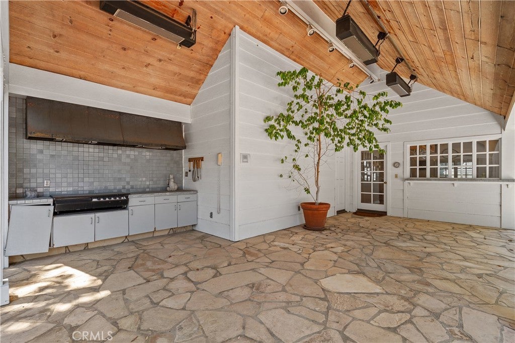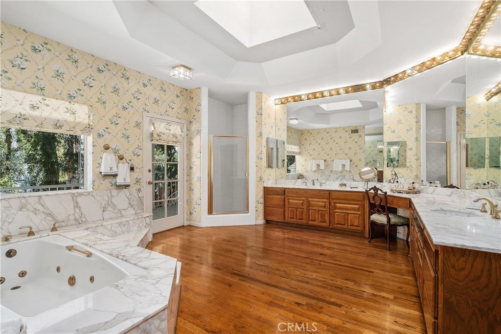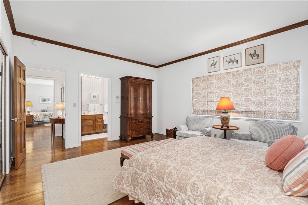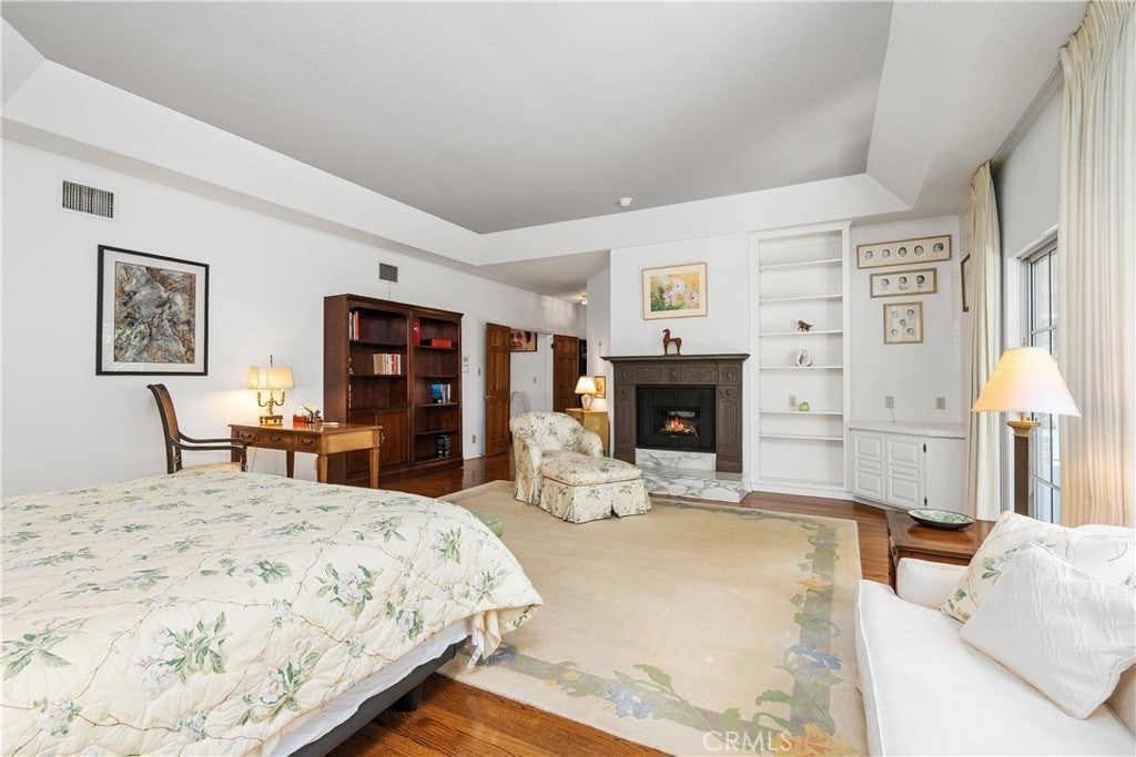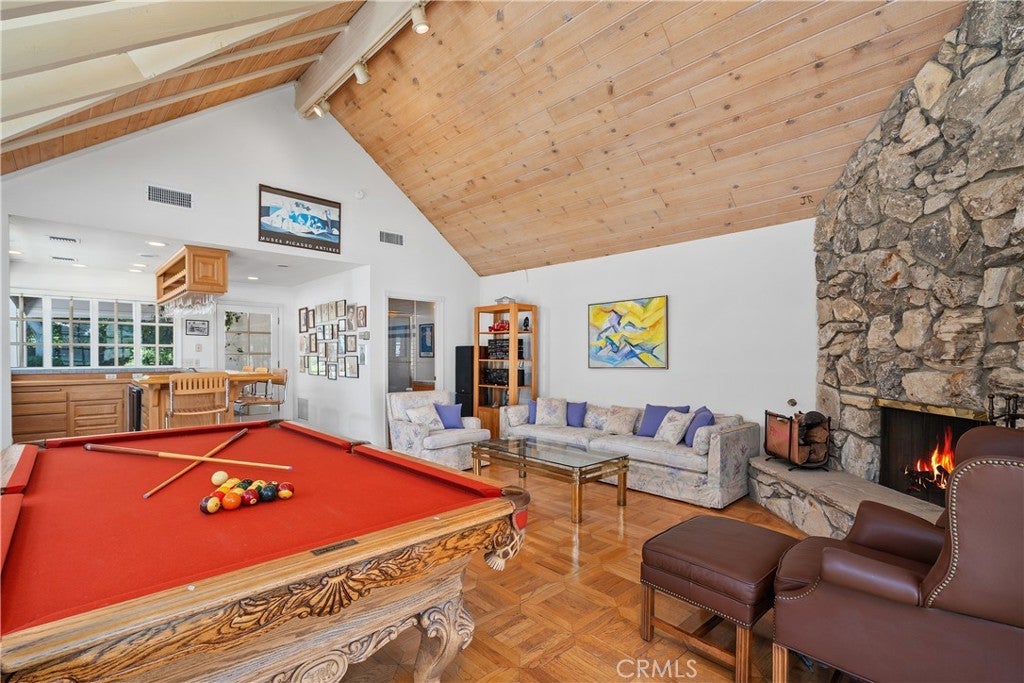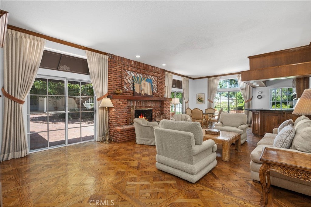 Welcome to the prestigious guard-gated community of Westchester County Estates in Woodland Hills! Set on a mostly flat, approx. 36,000 square foot double lot, this property offers Multi-generational living. The main residence is approx. 6,100 sq. ft. with a 4 car garage. Additionally, there is an approx. 1,700 sq. ft. studio & workshop with bathroom PLUS an approx. 760 sq. ft. pool house with bath, both of which can be used as a guest house or an ADU providing for Multi-Family living. But wait, there is more! An expansive driveway accessed at Wells Drive leads to an additional approx. 1,100 sq. ft 2-story garage with a loft, a Car Collectors dream with potential to store 8+ cars (with lifts added.) On the market for the first time, this 5-bedroom, 7-bath home is filled with architectural character, timeless craftsmanship and a fantastic floor-plan. A double-door entry opens to a soaring two-story foyer with oak parquet floors. The elegant living room features a marble fireplace and bay window, while the formal dining room impresses with French doors to a patio, crown moulding, and a butler’s pantry. The chef’s kitchen includes a butcher block island with sink, extensive cabinetry, and a breakfast area beneath wood-beamed ceilings. The spacious family room is highlighted by a massive brick fireplace and granite wet bar. The richly appointed office is finished with oak-paneled walls, built-in shelves, and a stone fireplace. The luxurious primary suite offers a fireplace, sitting area, gym, sauna, oversized walk-in closet, and a private balcony with direct access to the grounds. With a thoughtful floor plan, generous room sizes, and oak floors throughout much of the home, comfort meets elegance at every turn. The outdoor spaces are truly extraordinary. A free-form pool and spa are surrounded by expansive lawns, brick patios and fruit trees—an entertainer’s paradise unlike any other. The pool house has cathedral wood ceilings, a bathroom, a custom bar, a stone fireplace and covered patio with a built-in BBQ! The octagon shaped studio is light and bright with skylights and sliding glass doors that let natural light flow! This home has it all!