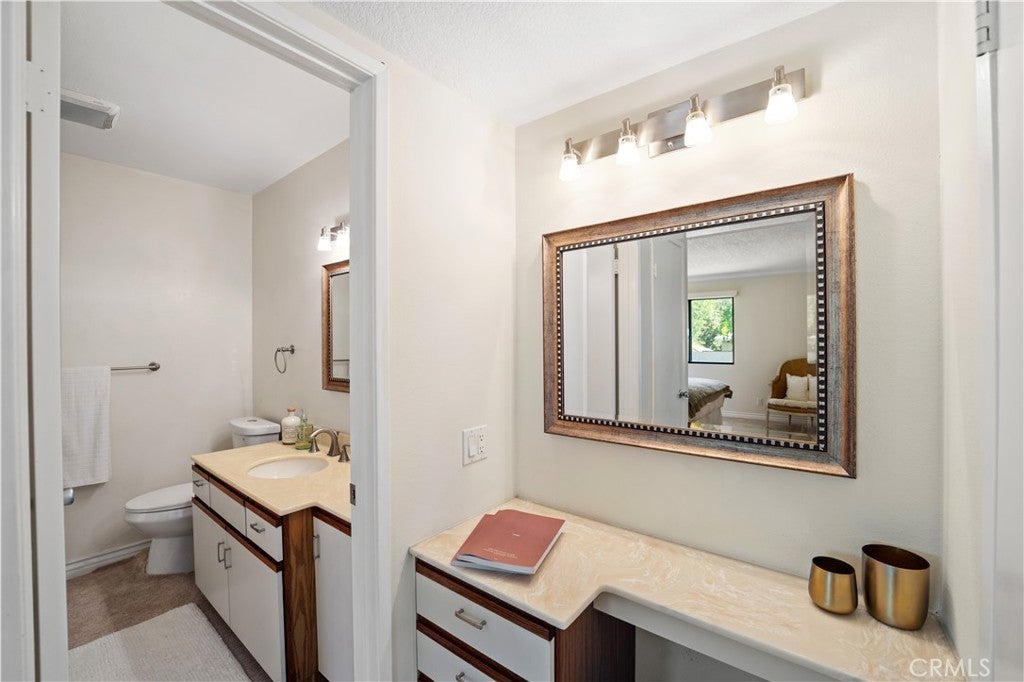Welcome to this beautifully updated Meadow Ridge Home, a 2-bedroom, 2-bathroom condo offering 1,233 square feet of comfortable living in the heart of Agoura Hills. Freshly enhanced with new carpet, fresh paint, and modern window treatments, this home is move-in ready and radiates a bright, welcoming feel. The open-concept living and dining area features a cozy fireplace and sliding glass doors that invite natural light and flow seamlessly to a private balcony perfect for morning coffee or evening relaxation. The spacious kitchen provides ample cabinetry and countertop space, ideal for both everyday living and entertaining. Both bedrooms are generously sized, including a primary suite with a walk-in closet and en-suite bath for added privacy. The second bedroom and bath offer flexibility for guests, a home office, or personal retreat. Additional highlights include a private two-car garage, in-unit laundry, and central air/heat. The home is part of a well-maintained community with amenities such as a sparkling pool, spa, and lush greenbelts, offering both convenience and comfort. Ideally located near top-rated schools, shopping, dining, and easy freeway access, this condo combines style, updates, and location for an incredible opportunity to own in Agoura Hills.