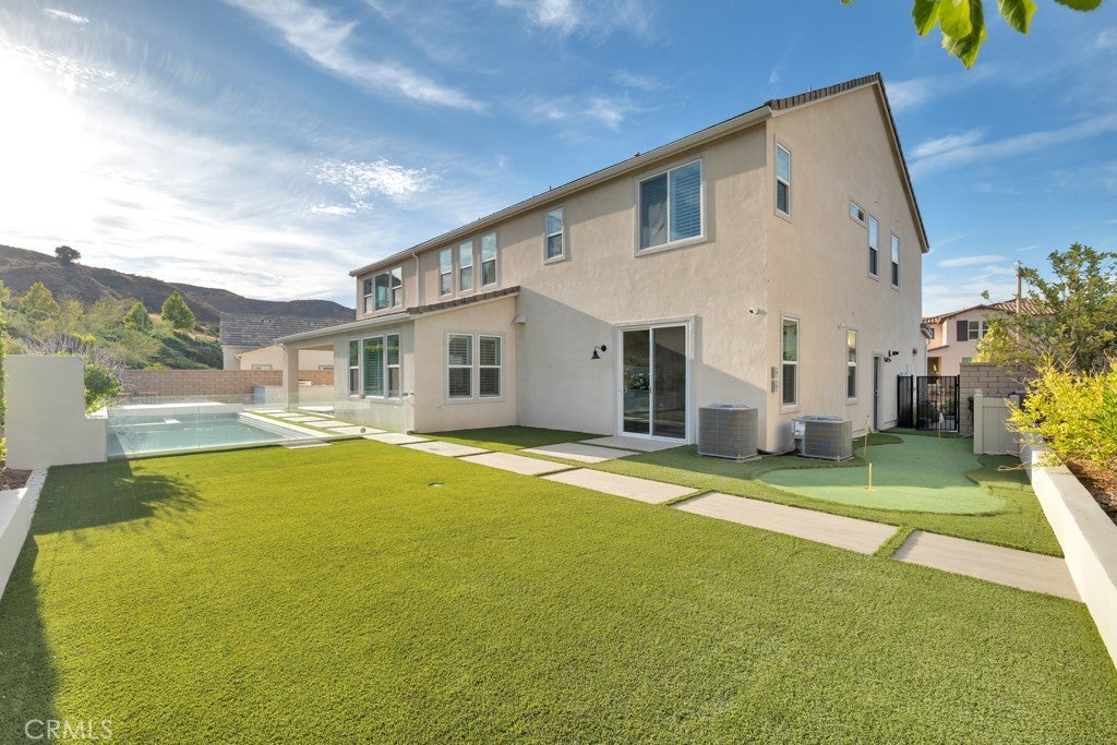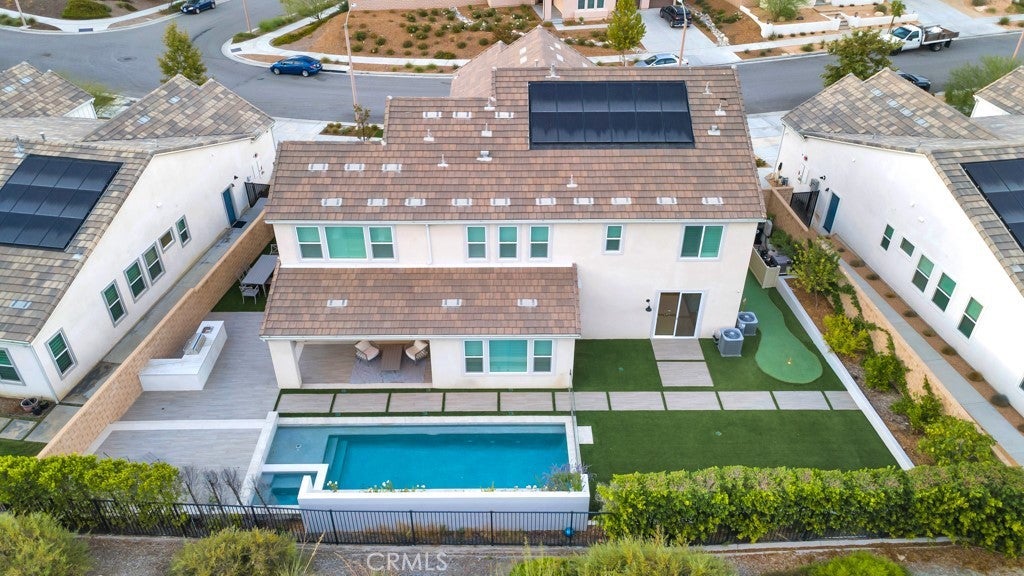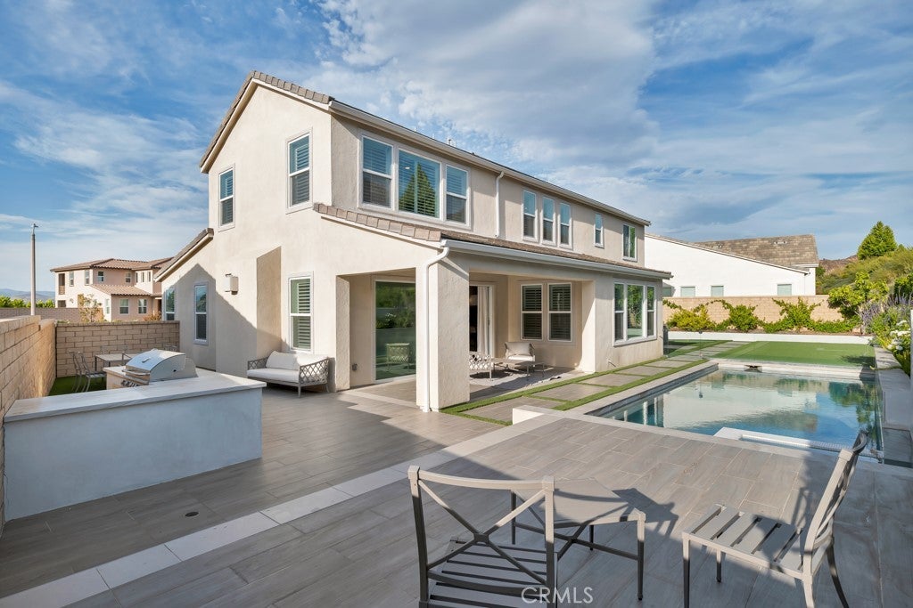 NEW PRICE!!!ASSUMABLE LOAN AT 4.625%!!!!!!!!!!!Absolutely stunning home located on a charming street within the highly desirable, gated Aliento community in Canyon Country. This expansive 4,023 sq ft residence sits on a large lot and offers 5 bedrooms and 4.5 bathrooms. Recently, the owner invested over $300,000 in a stunning new pool and surrounding hardscape, creating a true backyard oasis. Brand new engineered wood floors were also installed throughout the home, both upgrades completed in 2025. The chef’s kitchen is a dream come true, featuring upgraded stainless steel appliances, a massive quartz island, and a spacious walk-in pantry — ideal for all your culinary endeavors. The first floor offers flexible living options, including a bedroom with an en-suite bathroom perfect for guests or multi-generational living, plus a dedicated office and a guest powder room. Upstairs, the luxurious primary suite boasts breathtaking mountain views, a generous walk-in closet with custom built-ins, and a spa-inspired bathroom complete with a soaking tub, frameless glass shower, and dual quartz vanities. The second floor also includes three additional bedrooms, a shared hallway bathroom, and a convenient laundry room. Additional highlights include a 220V outlet in the garage for electric vehicle charging and fully owned solar panels. Residents of Aliento enjoy resort-style amenities including a pool, hot tub, splash pad, BBQ area, wading pool, gym, clubhouse, bocce ball courts, cabana area, and green spaces — all with panoramic valley views. The community also features a dog park and scenic walking trails, with easy access to the 14 freeway, shops, and restaurants!