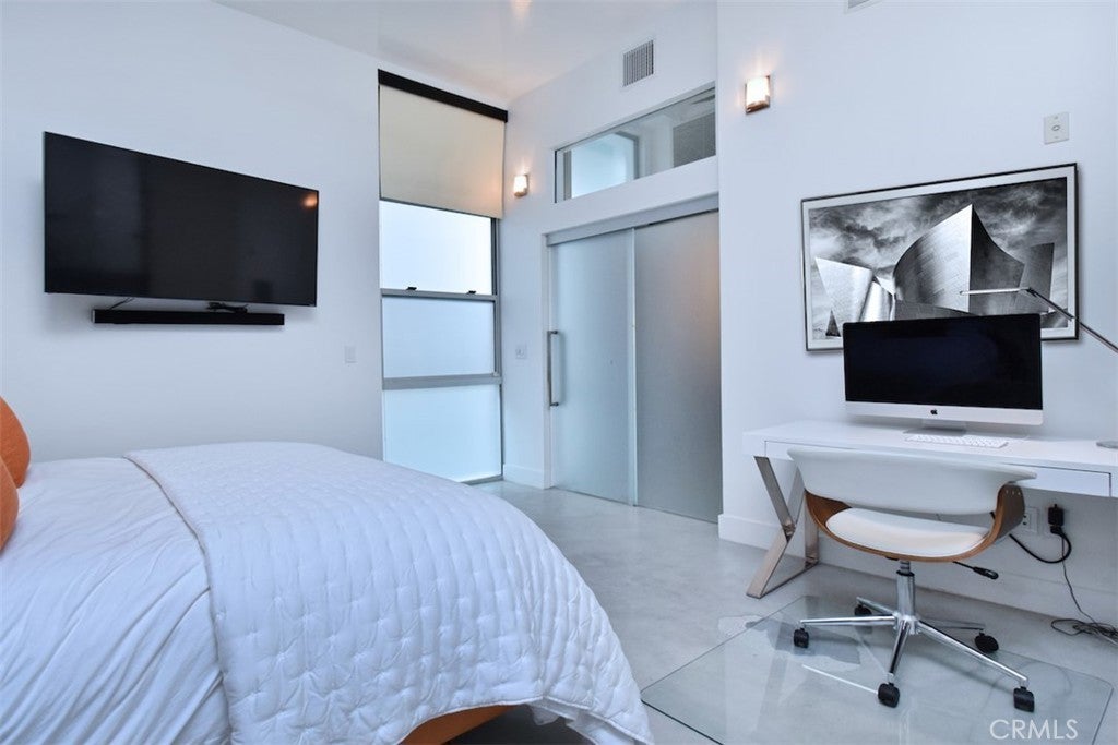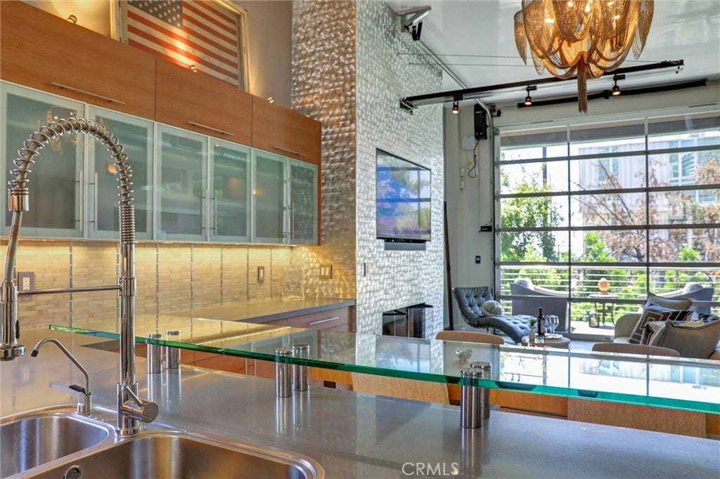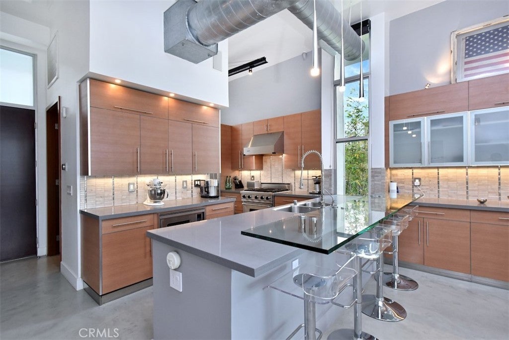 This impressive loft-style condominium features 2 bedrooms and 2½ bathrooms, situated in a prime location in West Hollywood. The interior has been tastefully renovated using the highest quality materials. The open floor plan includes a spacious living area with a gas fireplace, a dining area, an eat-at bar, and a high-end kitchen equipped with Viking appliances. Notable features comprise two generous en-suite bedrooms with custom storage solutions, a spa-like bathroom with a separate tub and shower, polished concrete flooring, 15-foot ceilings, expansive glass walls throughout, and a 10-foot roll-up door that seamlessly connects the indoor space with the outdoor area, leading to a south-facing balcony that offers city views. Also included are in-unit laundry facilities and two secure garage spaces. Conveniently located within walking distance to the renowned Sunset Blvd. and Santa Monica Blvd., and just a short drive to Beverly Hills, Hollywood, and Studio City. Experience the pinnacle of indoor/outdoor living!