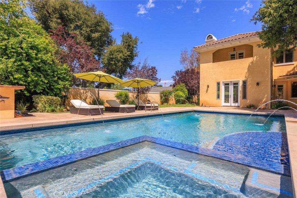 Stunning Custom Estate in Placerita Canyon Swimming Pool, Spa, 3 car garage plus 2 car detached garage (potential ADU or Pool home) and RV Parking with access road!! 5 luxurious bedrooms, 4 full bathrooms and 2 convenient powder bathrooms and bursting with top notch designer finishes! This regal custom estate is nestled in the highly desirable Placerita Canyon community adjacent to Masters College, open space preserve hiking and equestrian trails! The elegant entry is unforgettable with iron adorned glass door, winding staircase, and unforgettable stone tourette which opens first to the stunning home office complete with 2 story ceilings and overlooks the gas fireplace and treelike neighborhood! MAIN FLOOR FULL BEDROOM AND BATHROOM, incredibly thoughtful design and luxurious finishes! At the heart of the home, the chef’s kitchen boasts extra thick beveled granite countertops, stainless steel appliances—including cooktop, ovens, and dishwasher, Jenn-Air Subzero refrigerator/freezer! Complete with glass accented see through cabinetry, butler's pantry, wet bar, walk in pantry, designer lighting, reverse osmosis filtered water, pot filler at the range and pool views... The kitchen seamlessly opens to the living area, creating a perfect space for large gatherings and cozy, everyday living! Upstairs, you will find tines hardwood flooring across the loft and hallways leading to spacious secondary bedrooms with a Jack-and-Jill bathroom plus a convenient half hall bath and home gym/ 4th upstairs bedroom! The grand primary suite emanates a resort style vibe featuring private balcony overlooking the serene oak trees, pool and hillside views! Enormous walk in closet with built in organizers, separate tub and walk in shower make this a place you'll never want to leave! Outside you will find the sparkling pool (built in 2014) and ample space for relaxing and entertaining! The second detached garage (in addition to the attached 3 car garage) offers additional storage and the potential for a pool house or ADU and connected to an RV access road to park your toys and truck to of sign from the main residence! This remarkable estate perfectly blends sophistication, comfort, and opportunity—all within one of Placerita Canyon’s most sought-after locations with no required HOA and no Mello Roos! Plus a private gated access road to reach the 14 FWY for homeowners use only! This is a lifestyle opportunity you will cherish for years to come!