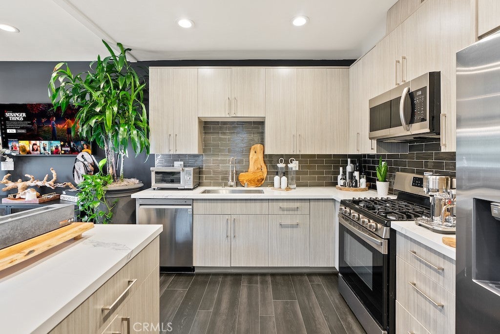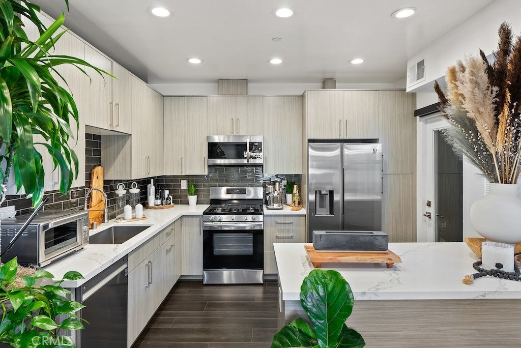 Welcome to your fully reimagined, move-in-ready Smart Home in the heart of Woodland Hills, South of the Boulevard. Seller purchased this home as a brand new build in 2021. With a brand new build comes new sewer, new HVAC, new roof, new electrical, new plumbing - all the items that can fail in an older home. This meticulously updated residence combines style, functionality, and modern luxury, offering seamless indoor-outdoor living in one of the area’s most desirable neighborhoods. Inside, you’ll find a spacious lounge with a dedicated office nook, perfect for today’s work-from-home lifestyle. The expanded Primary Suite offers a spa-inspired en-suite bath, a cozy sitting area, and direct access to a private upper deck retreat. Designed with entertaining in mind, the deck is ideal for gatherings, outdoor movie nights, or quiet evenings under the stars. Additional design upgrades include striking Ebony wood flooring throughout, plush double-padded carpet on the stairs for added comfort and sound reduction, and covered exterior decks with elegant wood pergolas. This home is fully enhanced with Smart Home technology, including Cat 6 WiFi cabling for seamless connectivity, a voice-activated smart system, smart lighting and blinds, and smart locks for added security. The garage is equipped with an EV charging station and finished with carpeting, offering flexibility as a home gym or bonus space. Outside, new professional landscaping enhances curb appeal with drought-resistant plants and lush greenery, creating a low-maintenance yet inviting environment. Conveniently located near local cafés, boutiques, The Village, the LA Rams Training Center, and with easy freeway access, this home offers both luxury and lifestyle. Don’t miss the opportunity to make this beautifully reimagined Woodland Hills Smart Home your own.