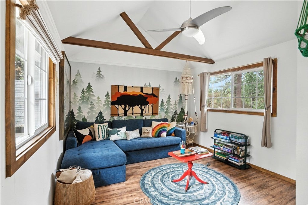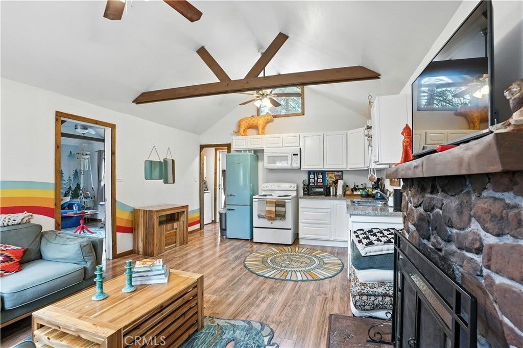 24990 Marion Ridge Drive, Idyllwild — Rare 2nd ADU Opportunity. A rare Idyllwild property featuring a fully detached second ADU, ideal for rental income, guest quarters, or multigenerational living. Situated on a nearly half-acre corner lot with peekaboo mountain views and surrounded by mature pine, oak, and cedar trees. The main home offers 2 bedrooms and 1 bathroom with classic mountain charm, including wood-beamed ceilings, a stone fireplace, natural light, and laminate flooring. Major updates completed in 2022 include a new septic system, upgraded electrical panel, partial roof replacement, and interior updates. The exterior was freshly painted in July 2025. Short-term rental use (including Airbnb) may be an option; the community’s rental lottery remains open with spaces available. Bonus: The detached ADU will be delivered fully furnished. Located approximately 6,000 feet above sea level, Idyllwild is a beloved mountain community known for its towering trees, fresh air, hiking trails, and charming downtown filled with restaurants, shops, and local favorites. Plenty of parking, easy access from a county-maintained road, and just 3 scenic miles from downtown Idyllwild.